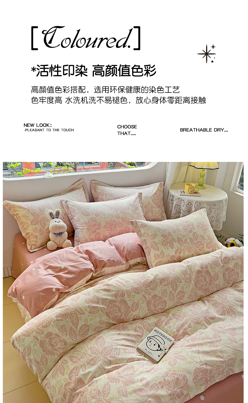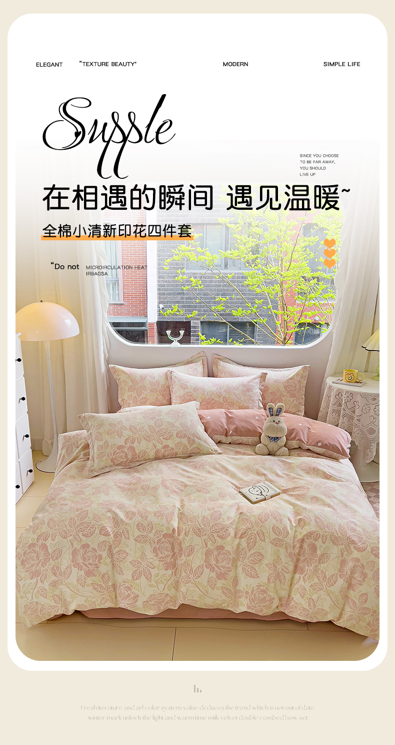 暖芯优选 204新款直播爆款全棉-ins印花系列四件套纯棉三件套床单床笠 生机