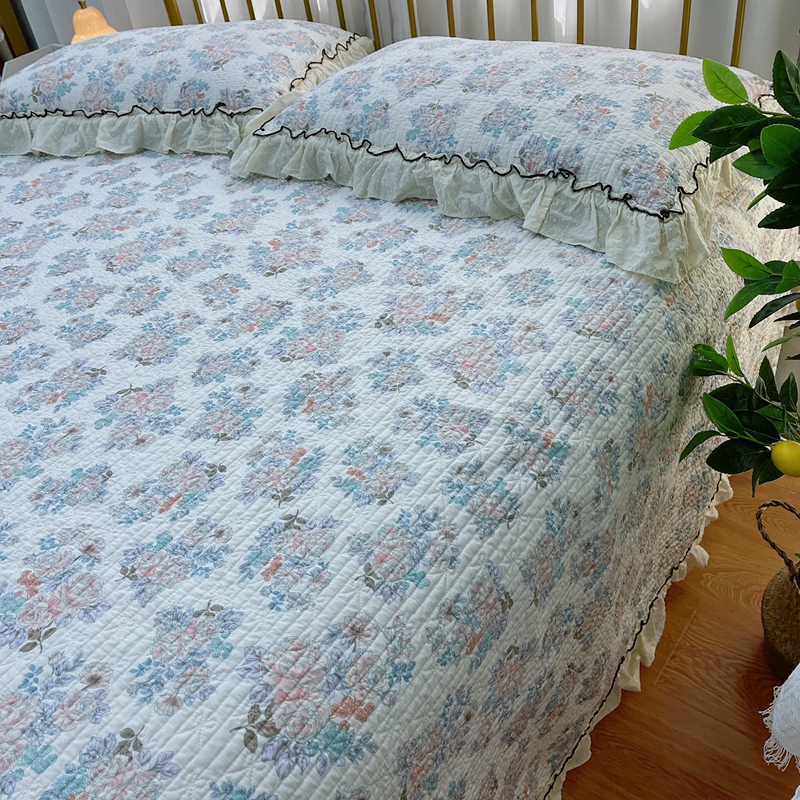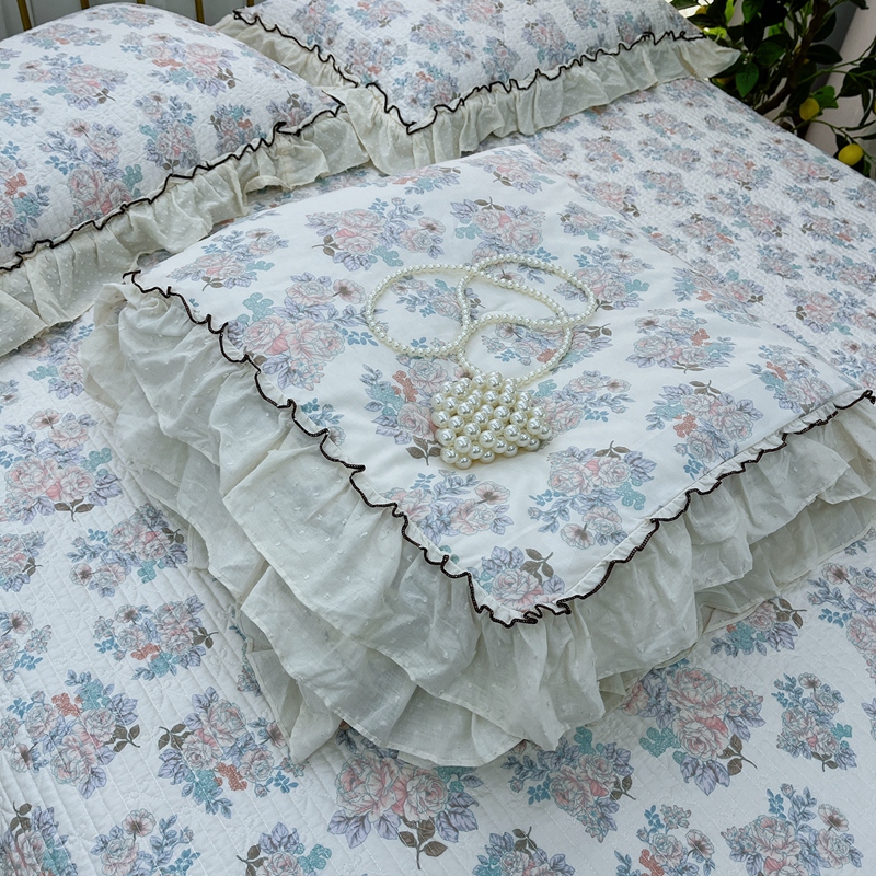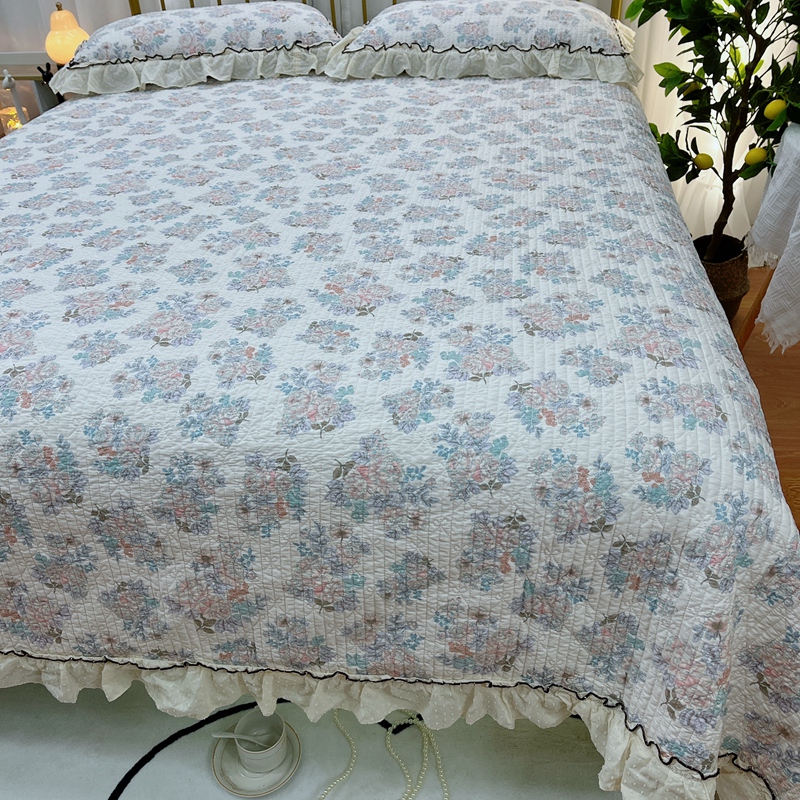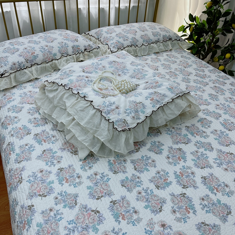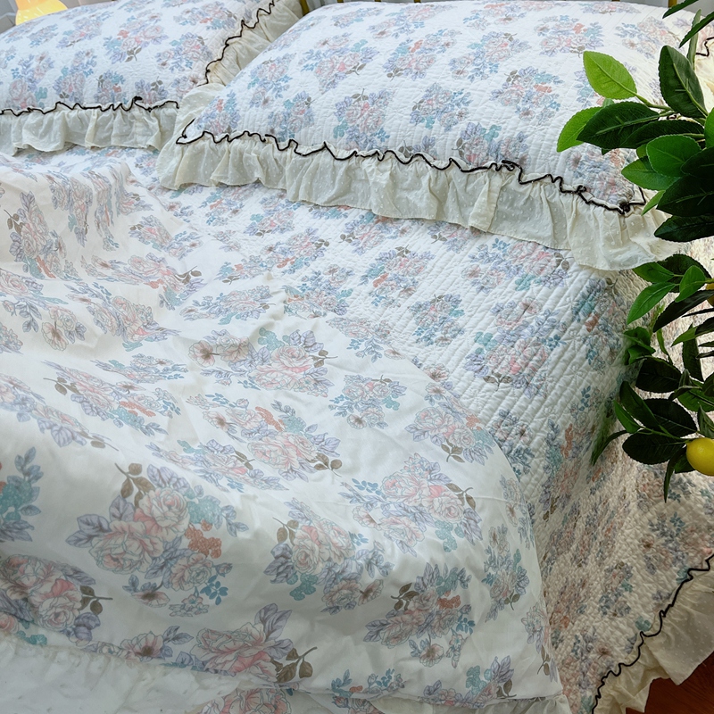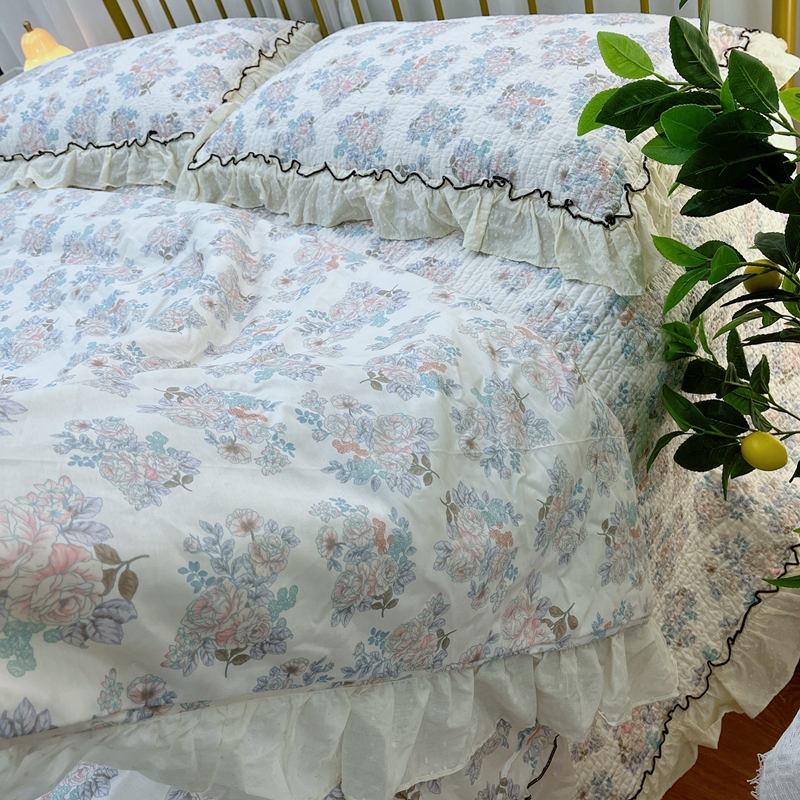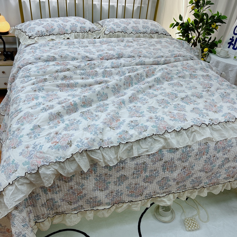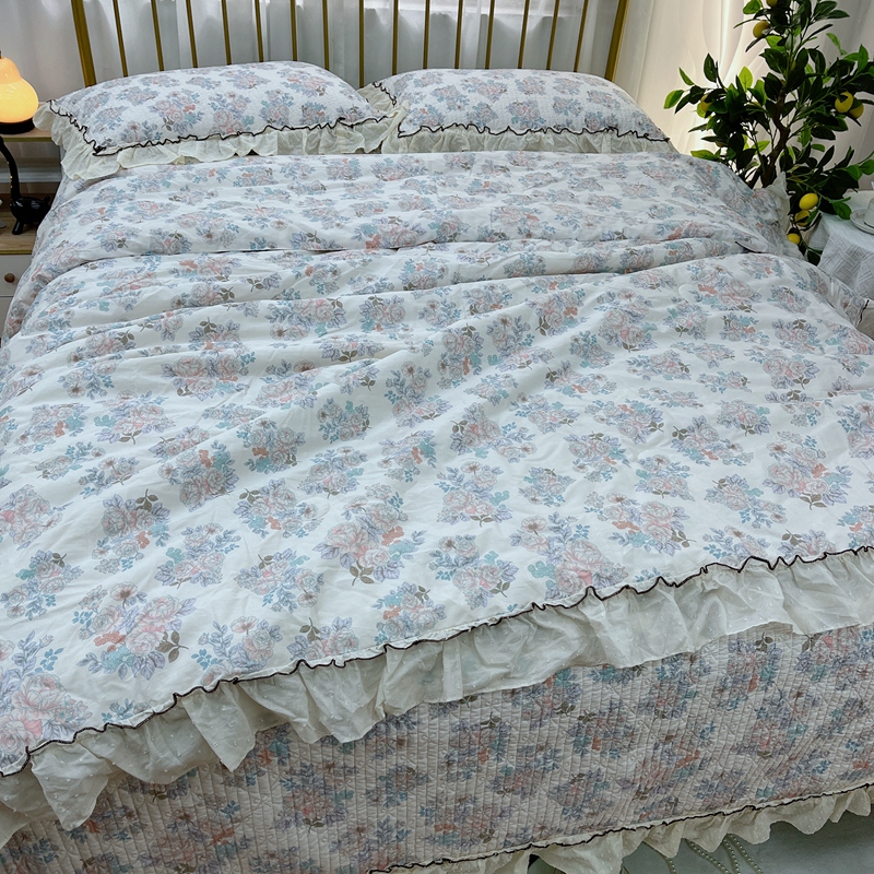 暖居 2024新款韩系大花边夏被床盖四件套可机洗+同款纯棉被套 酣春