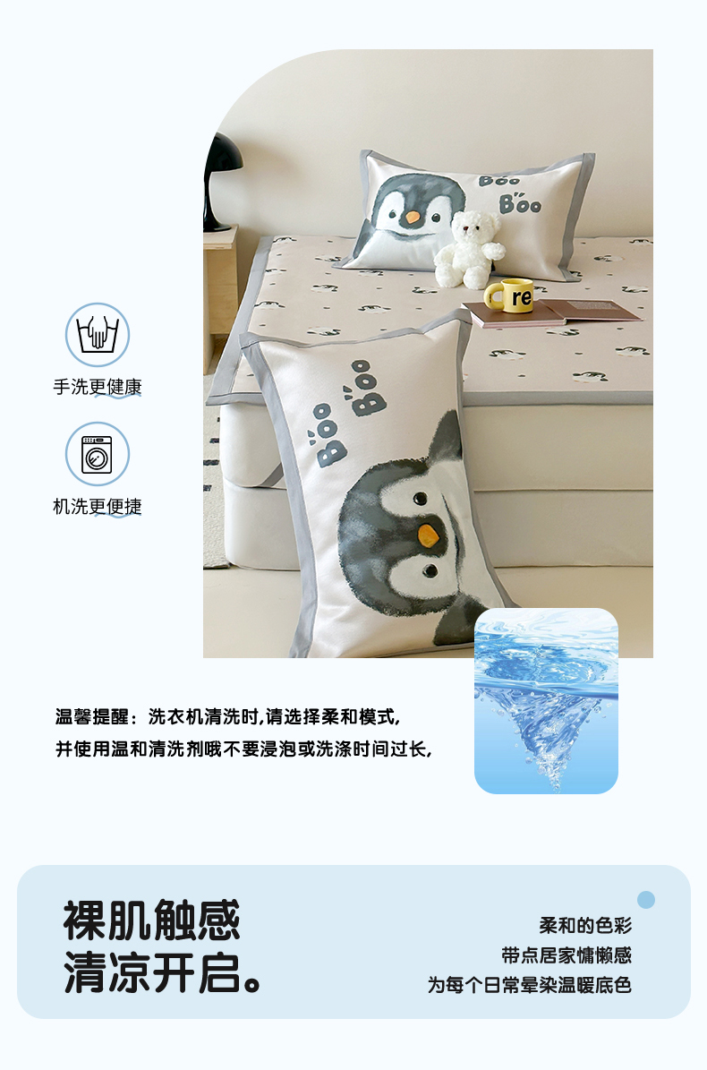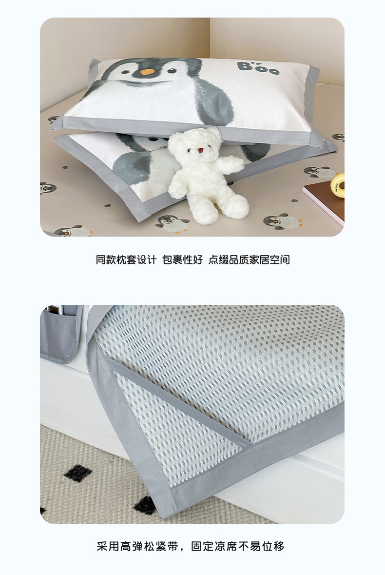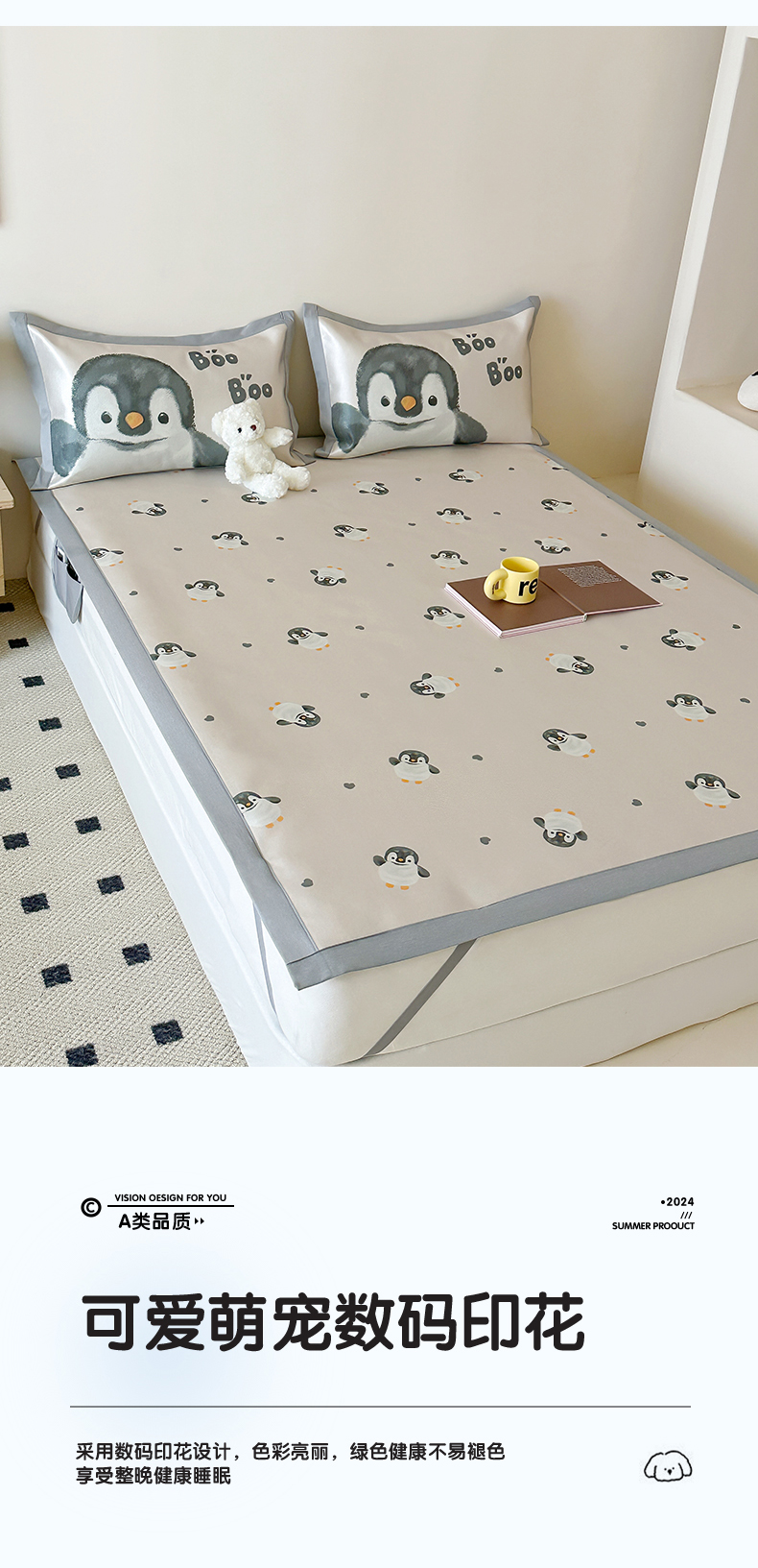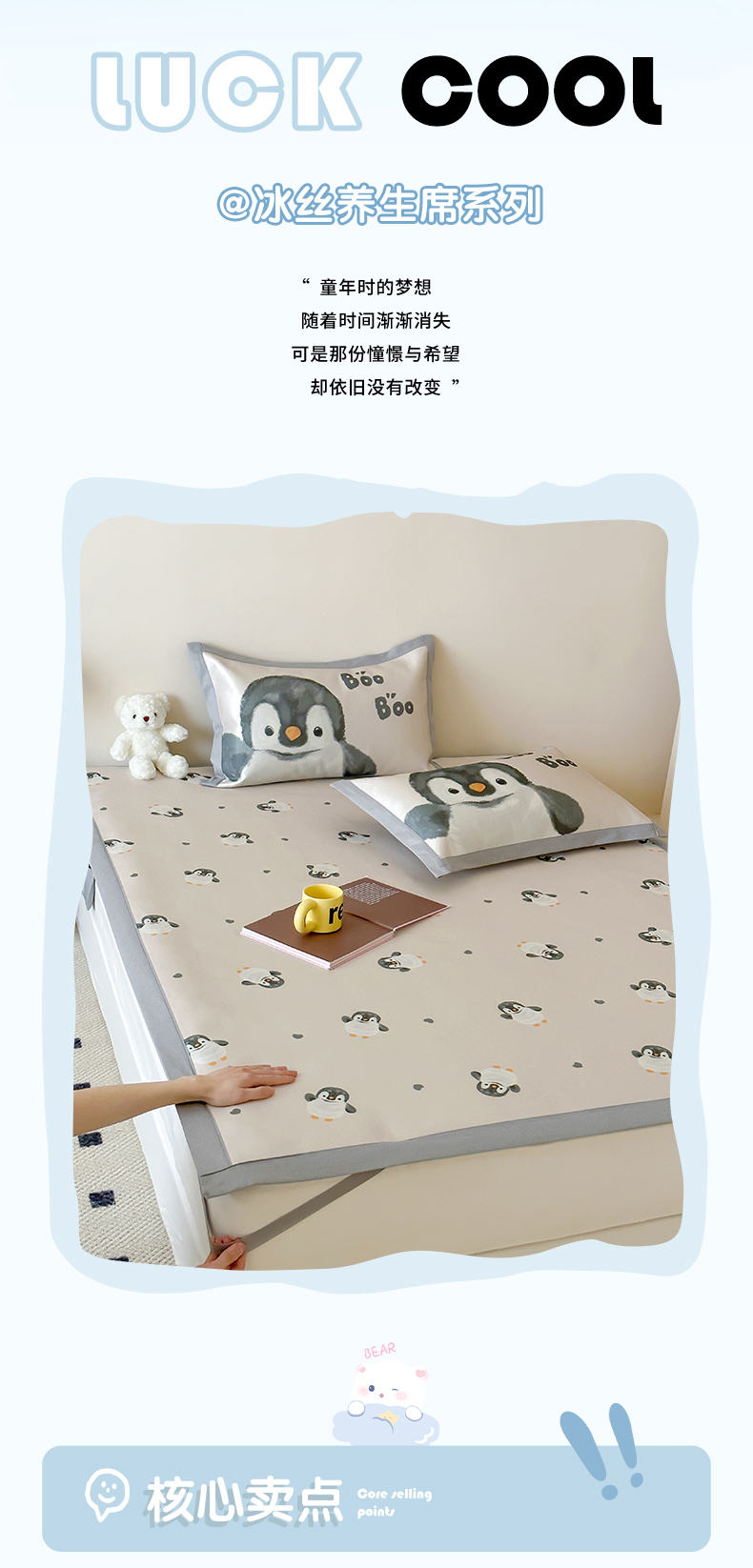 商品名称:圆岛 2024新款A类900D萌宠系列冰丝养生席 企鹅咕咕