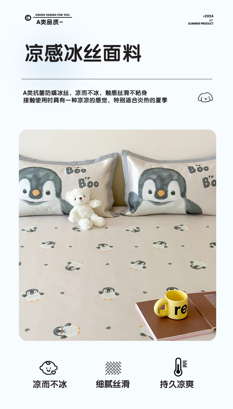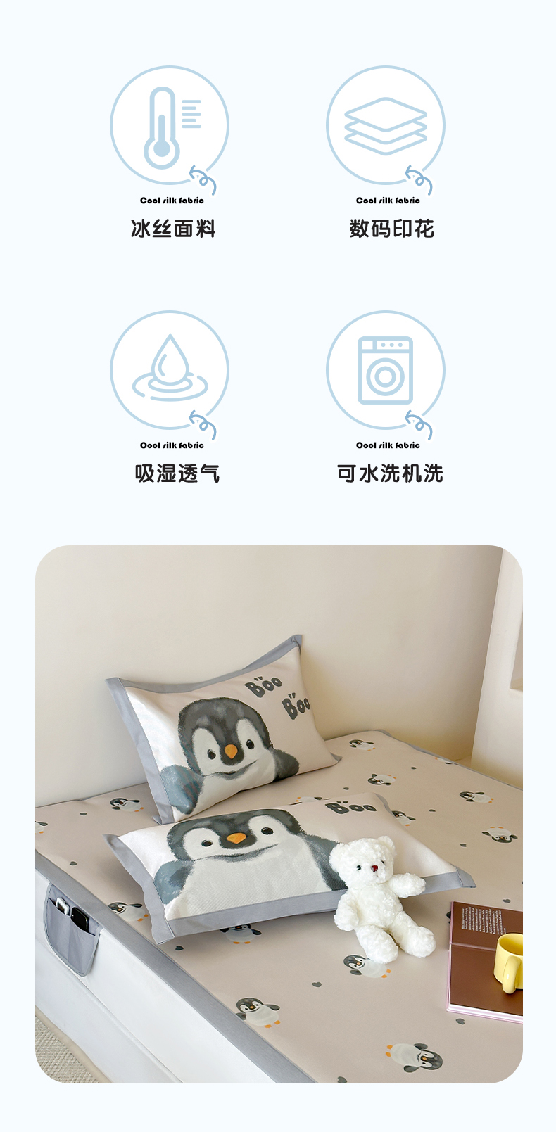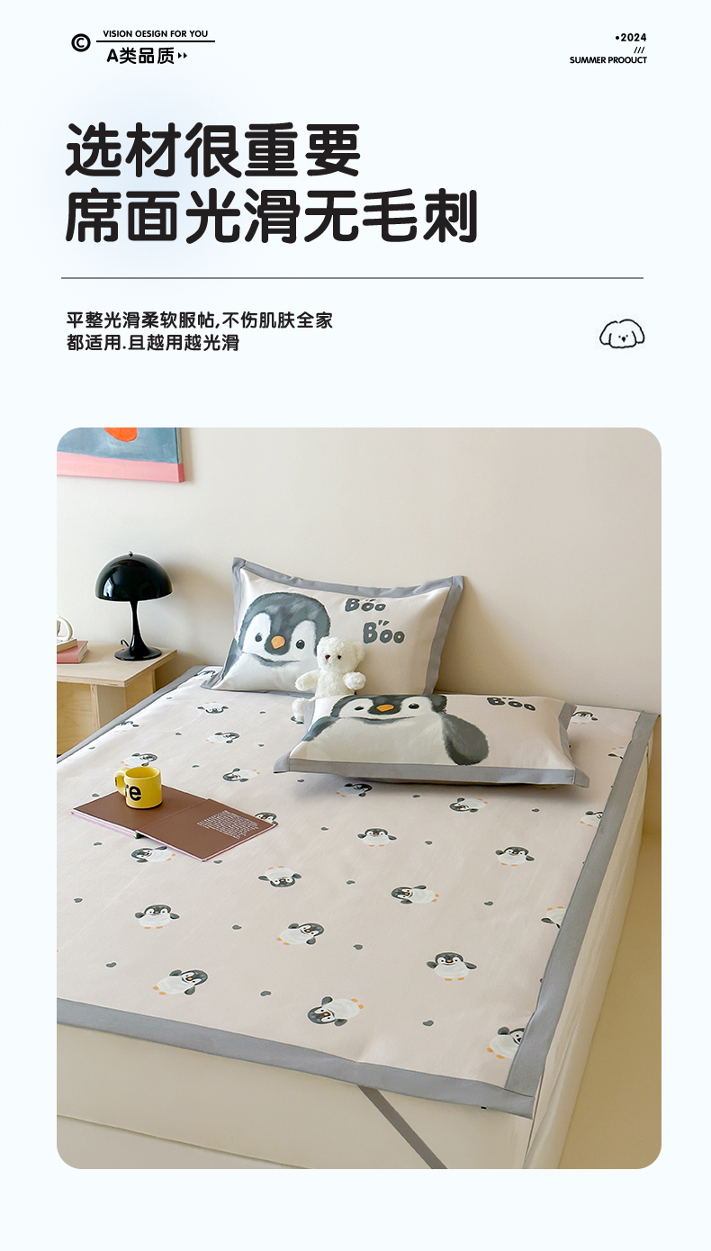 商品名称:圆岛 2024新款A类900D萌宠系列冰丝养生席 企鹅咕咕
