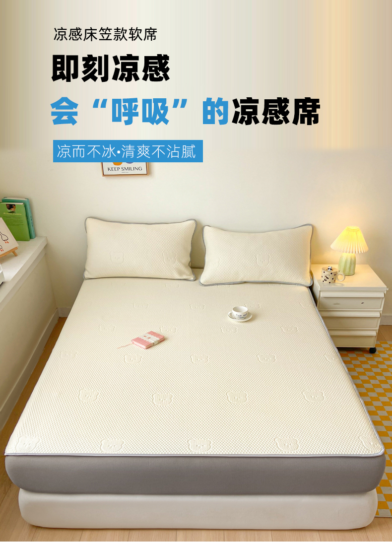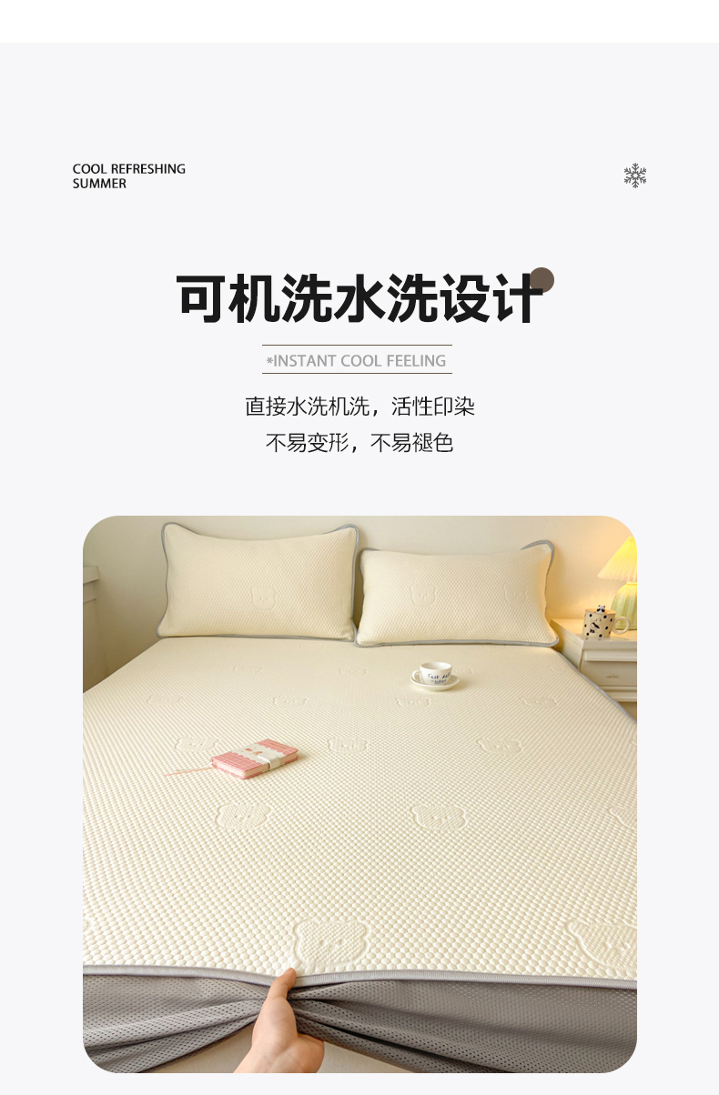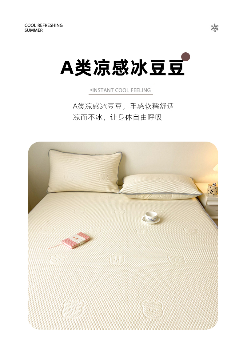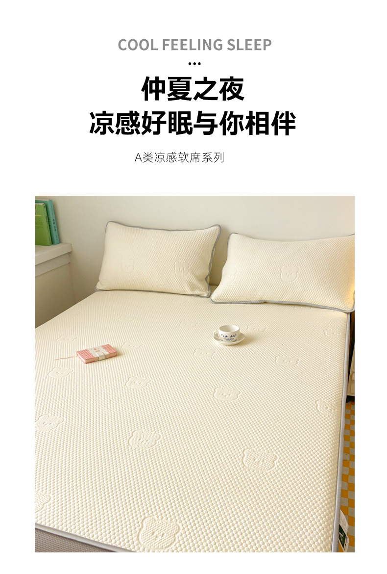 吉象家纺 2024新款凉豆豆凉感软席凉席 小熊象牙白