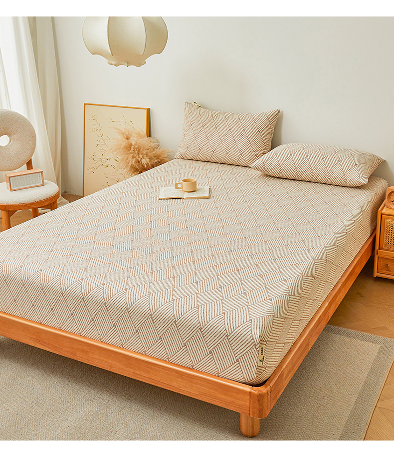 居眠 2024新款A类全棉老粗布印花单品床笠 阡陌菱格 卡其
