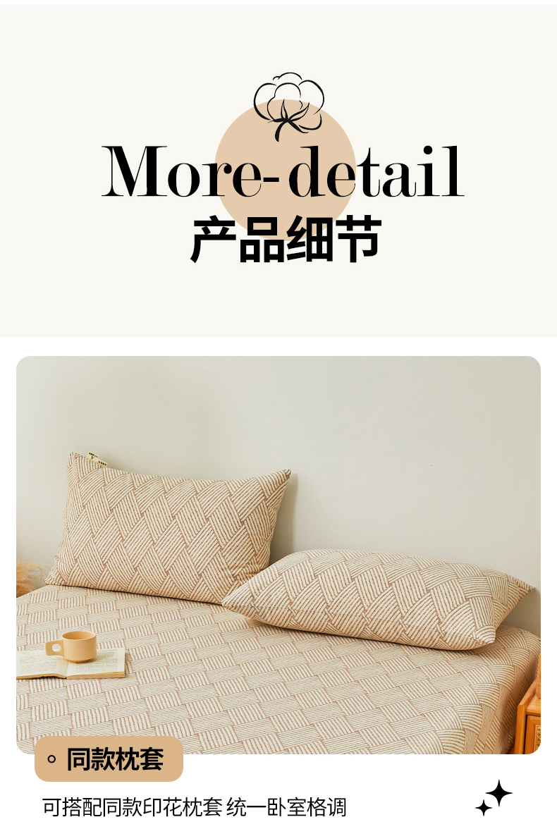 商品名称:居眠 2024新款A类全棉老粗布印花单品床笠 阡陌菱格 卡其