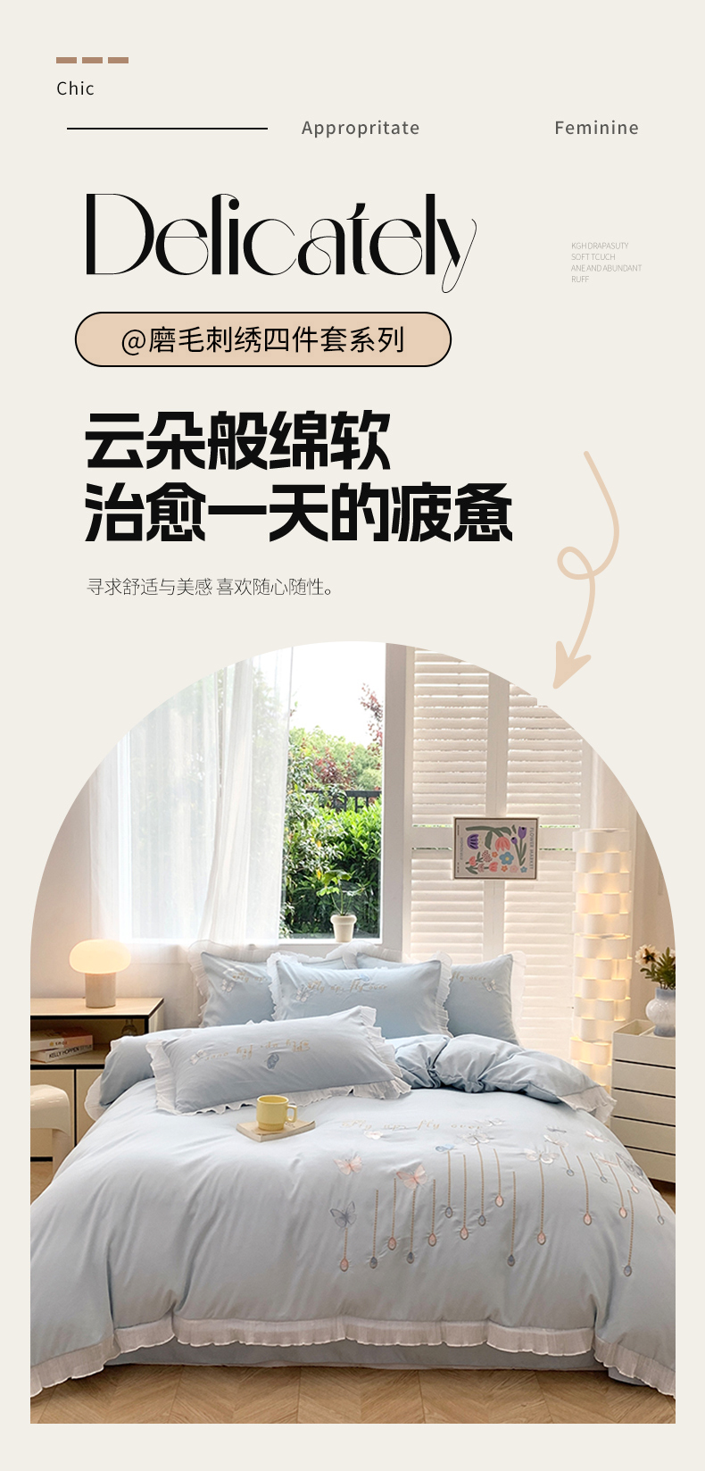 (总)凯艾玲 2024新款简约轻奢磨毛细斜纹四件套-手捧告白,豆沙粉,米白粉,天空蓝
