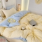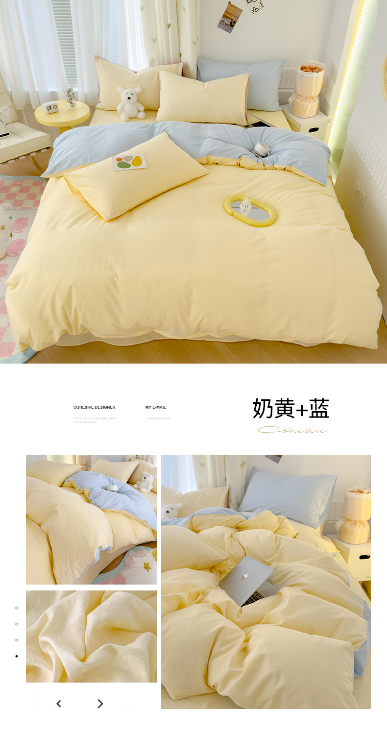 当前位置: 91家纺网 > 商品网购 > 床品套件 > 四件套 > 水洗棉四件套 > 颜选 2024新款简约纯色水洗棉双拼四件套 奶黄+蓝