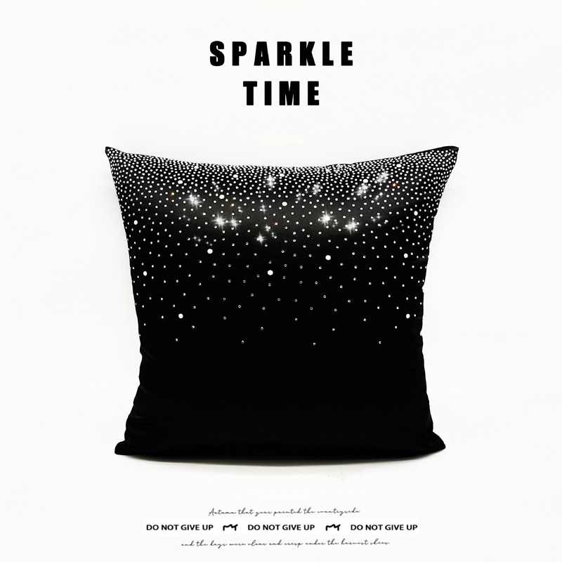 露函家居 2024款禅丝高精密渐变满钻小抱枕头枕芯腰靠枕 黑色方枕