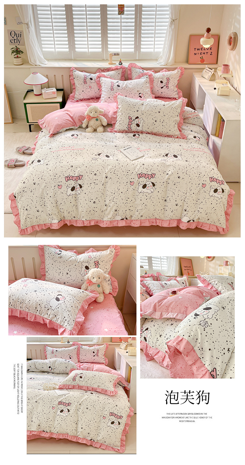 当前位置: 91家纺网 > 商品网购 > 床品套件 > 四件套 > 上尚居 2024直播爆款卡通小清新韩版花边公主风水洗棉磨毛四件套 小南瓜