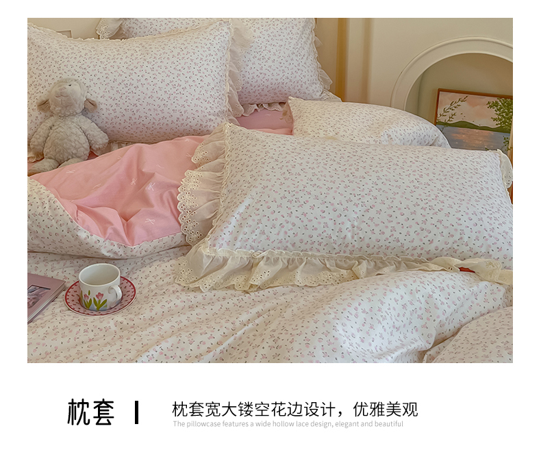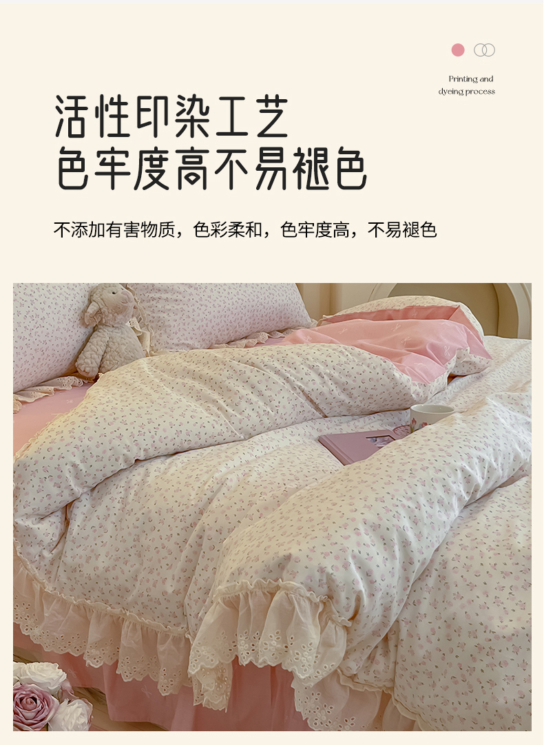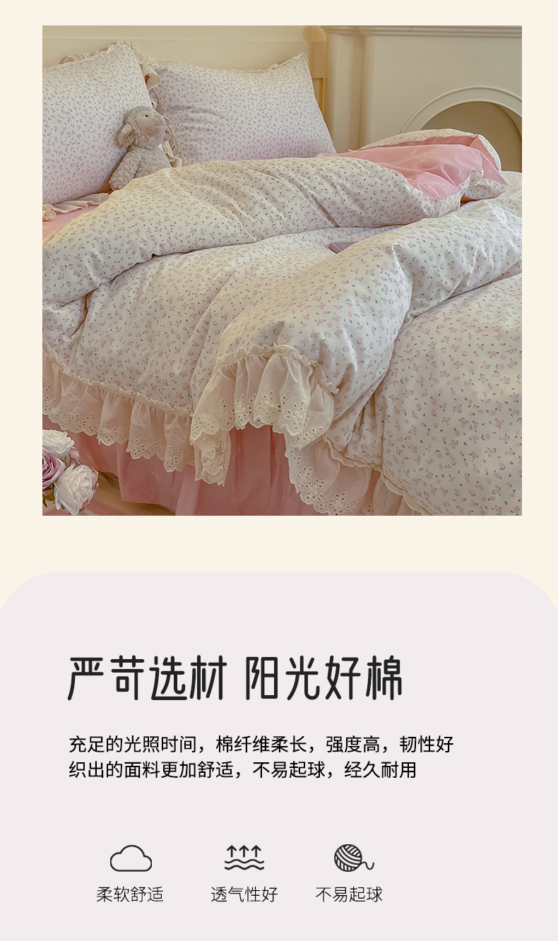 商品名称:金丝鸟家纺 2024新款韩式全棉镂空大花边公主风花卉系列四件套 花恋