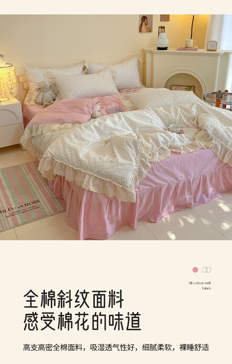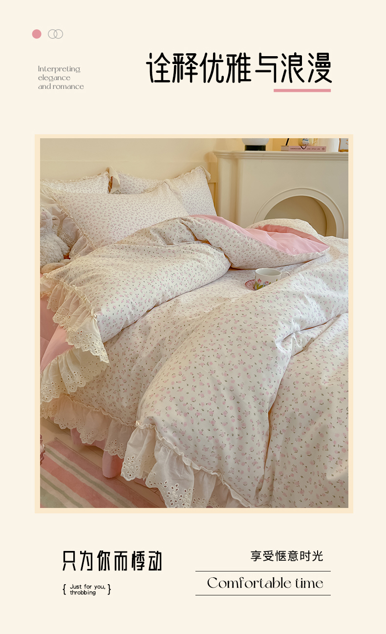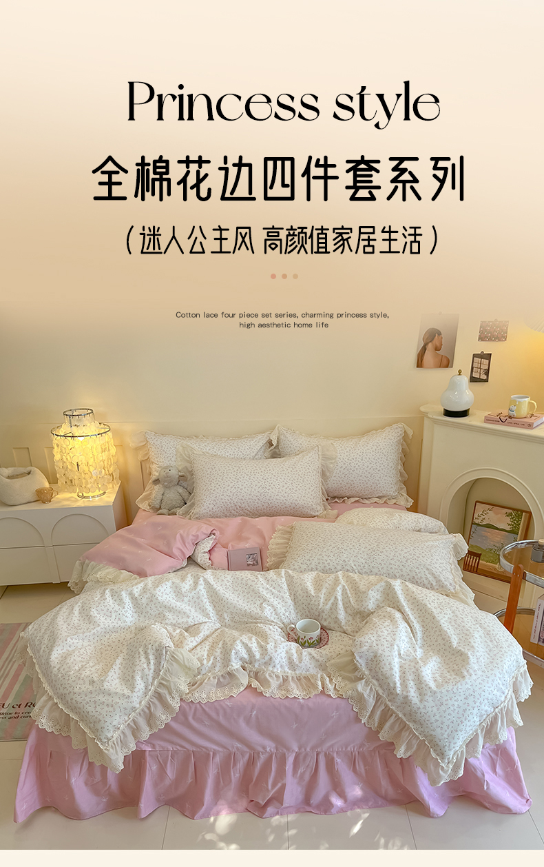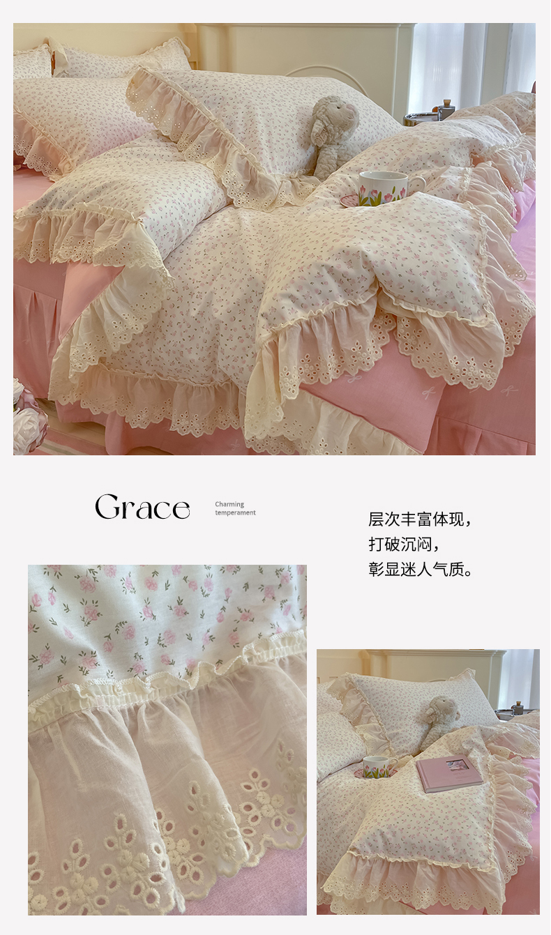 金丝鸟家纺 2024新款韩式全棉镂空大花边公主风花卉系列四件套 花恋