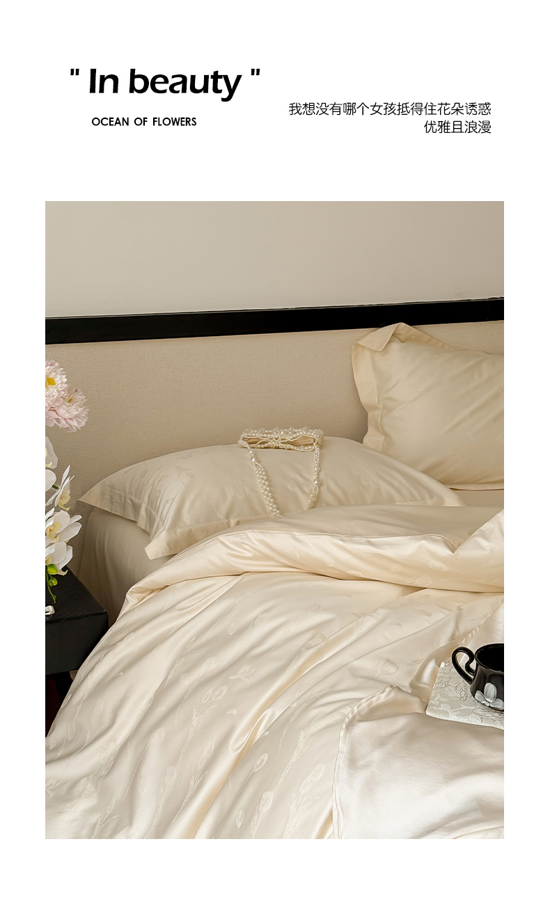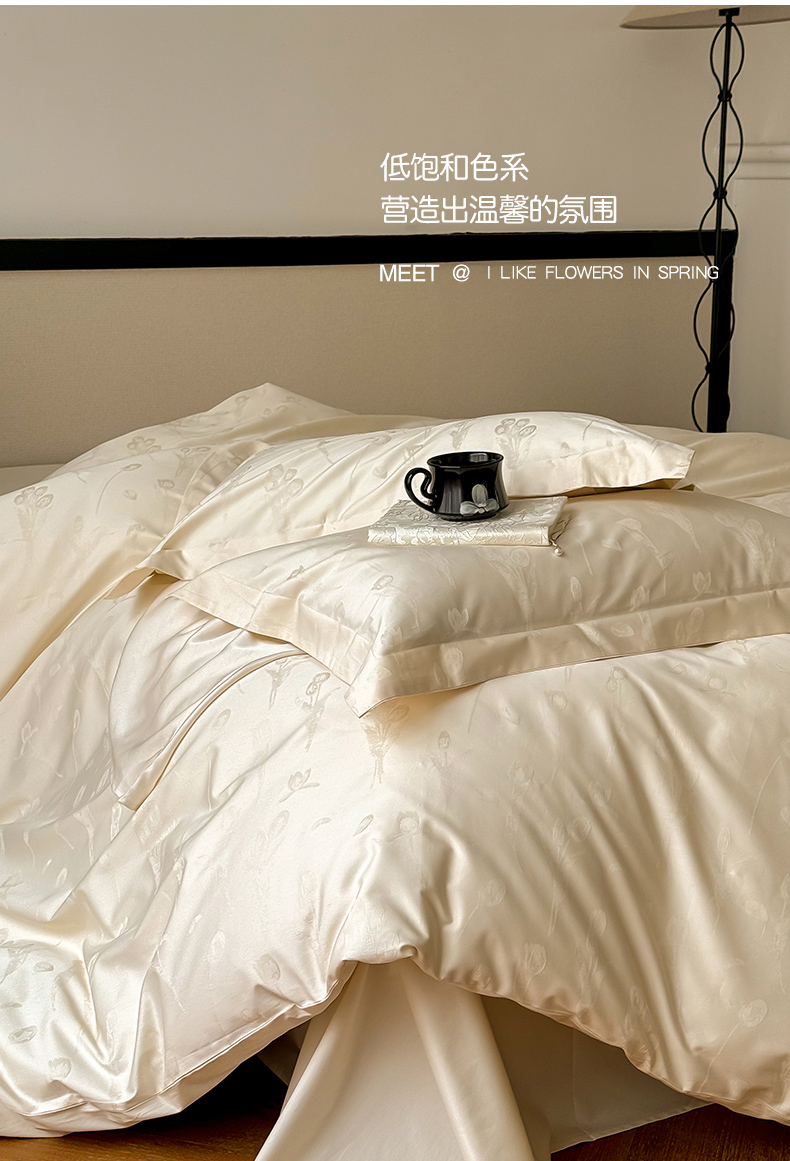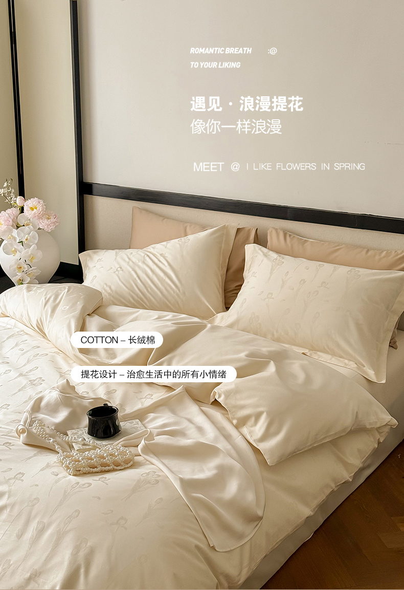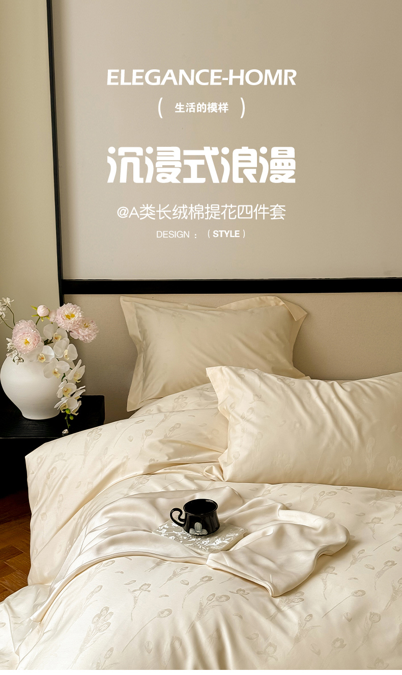 商品名称:云栖家居 2024全棉提花A类四件套 馥郁芬芳-香槟