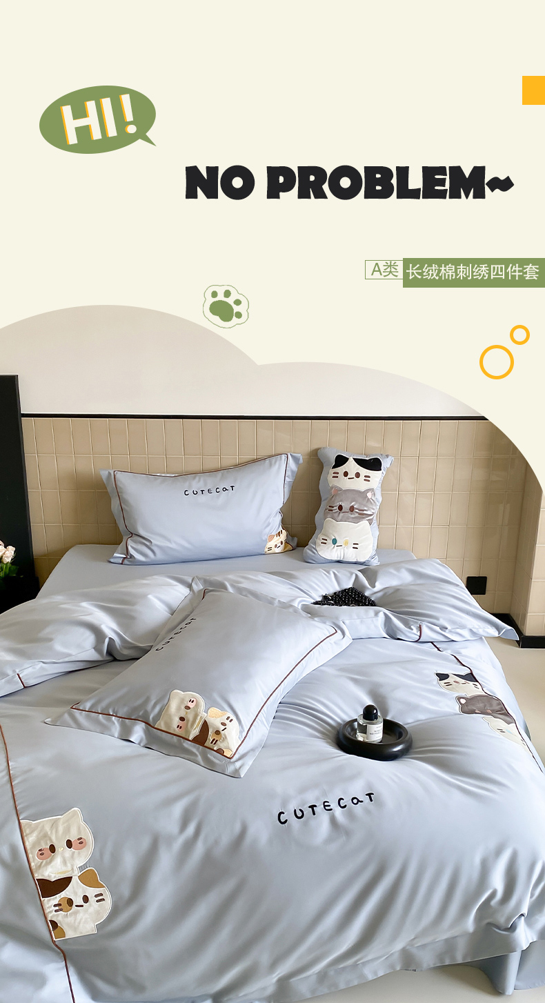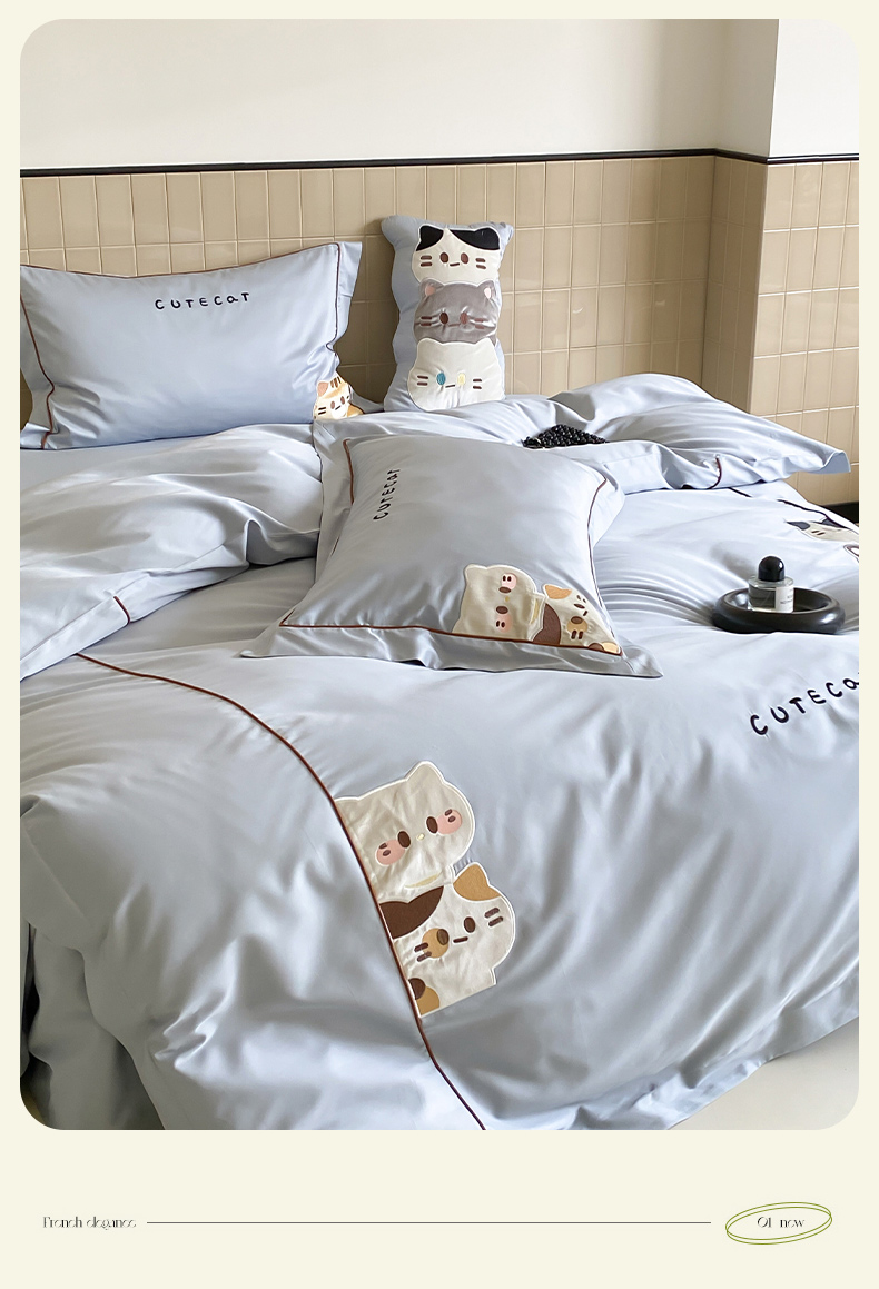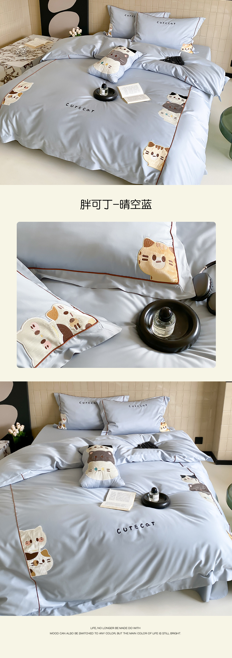 云栖家居 2024全棉刺绣系列四件套-胖可丁 胖可丁-晴空蓝