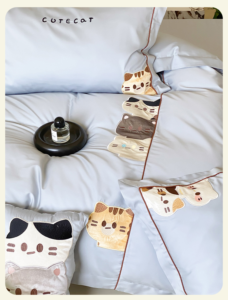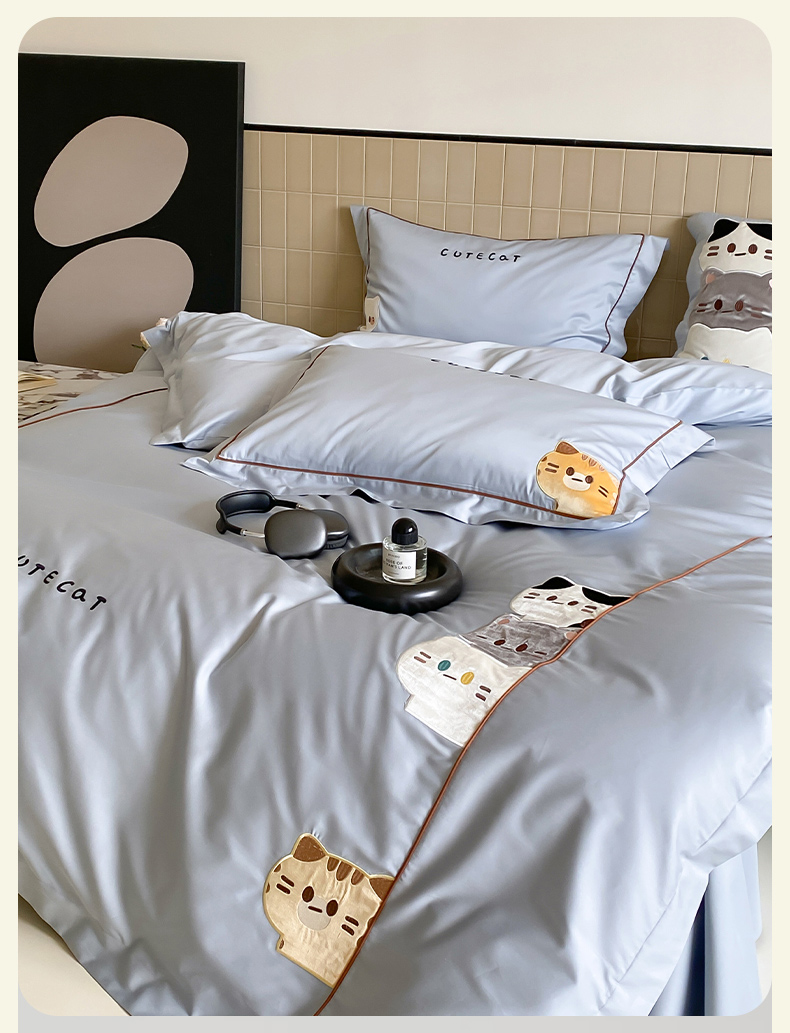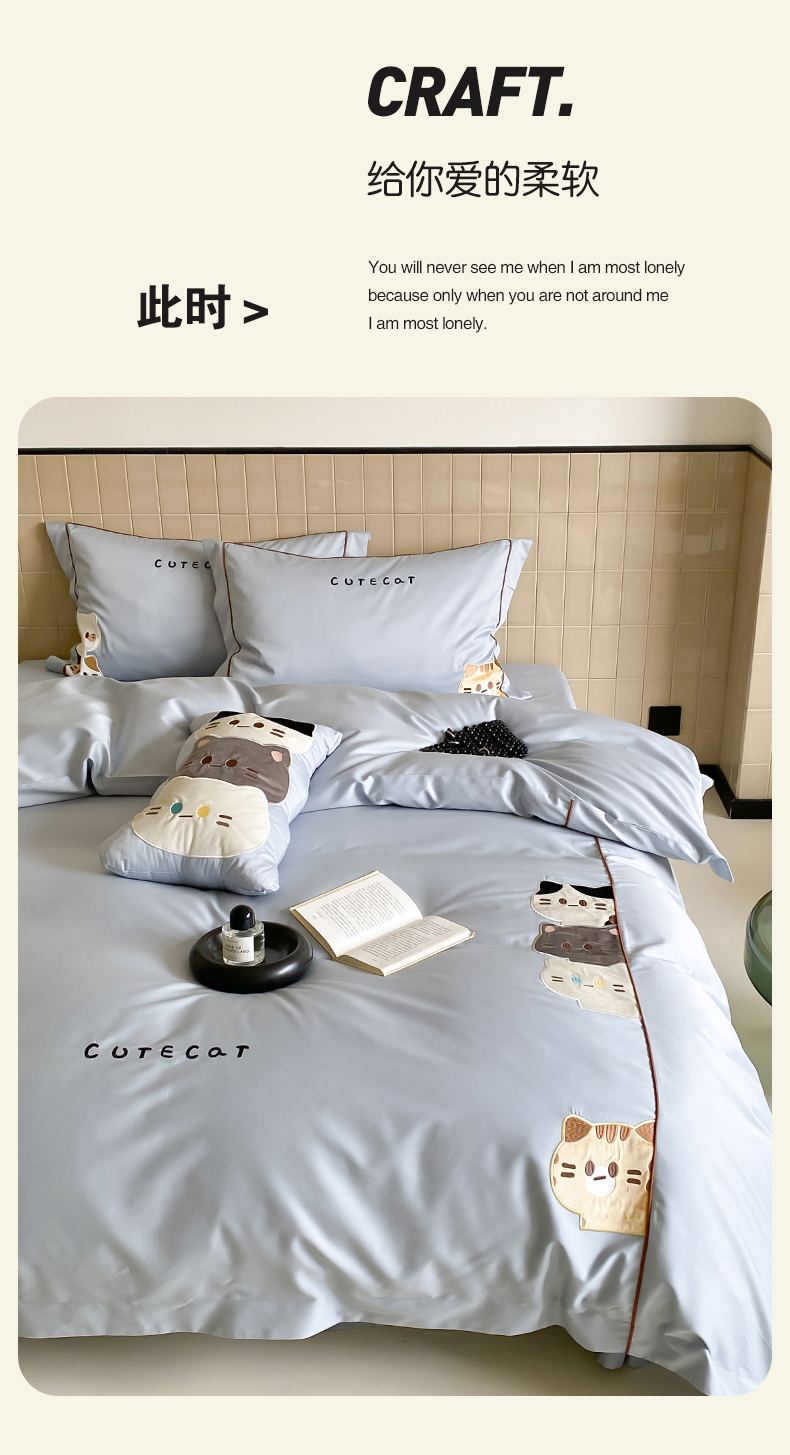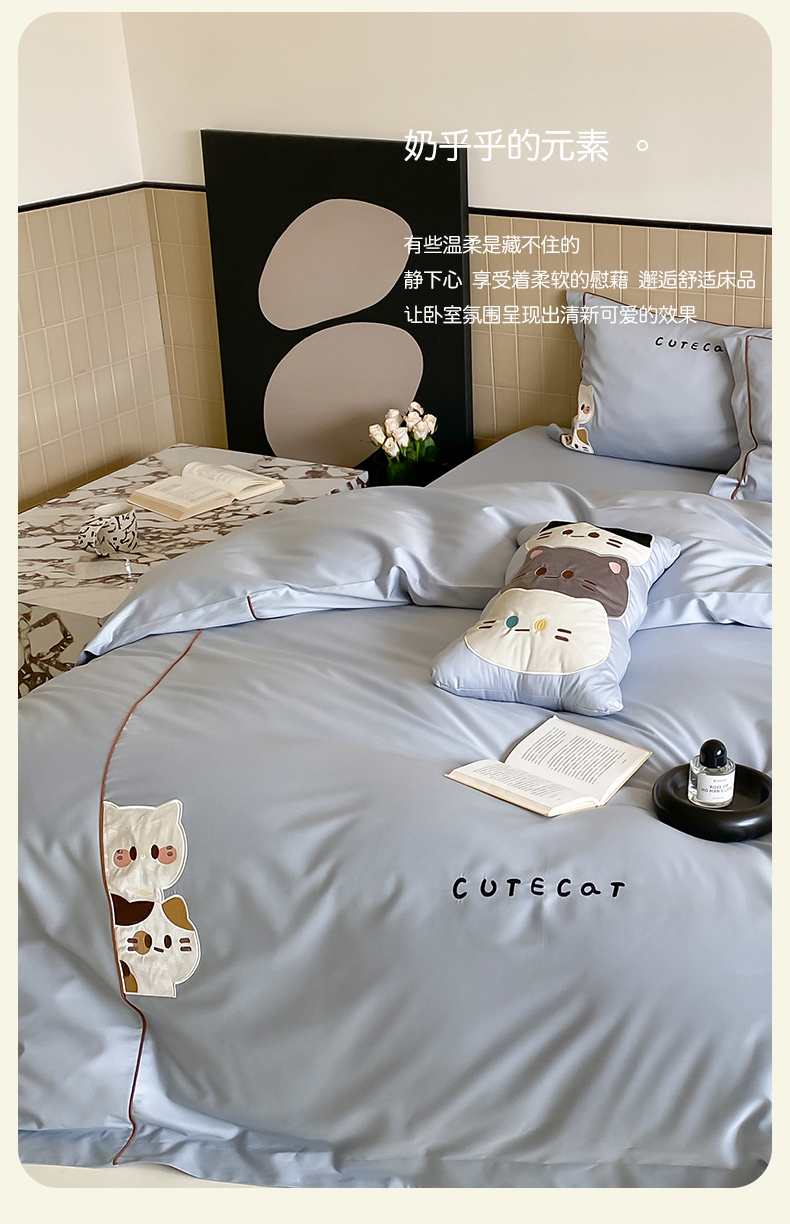 云栖家居 2024全棉刺绣系列四件套-胖可丁 胖可丁-晴空蓝