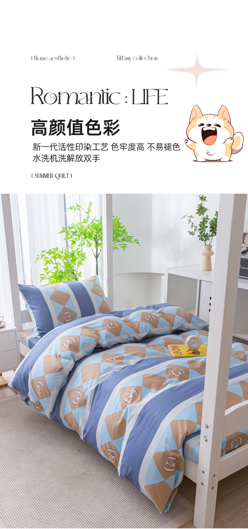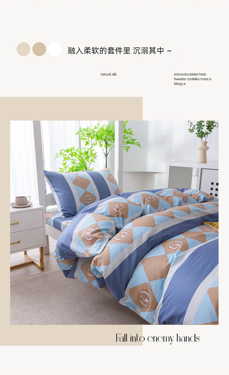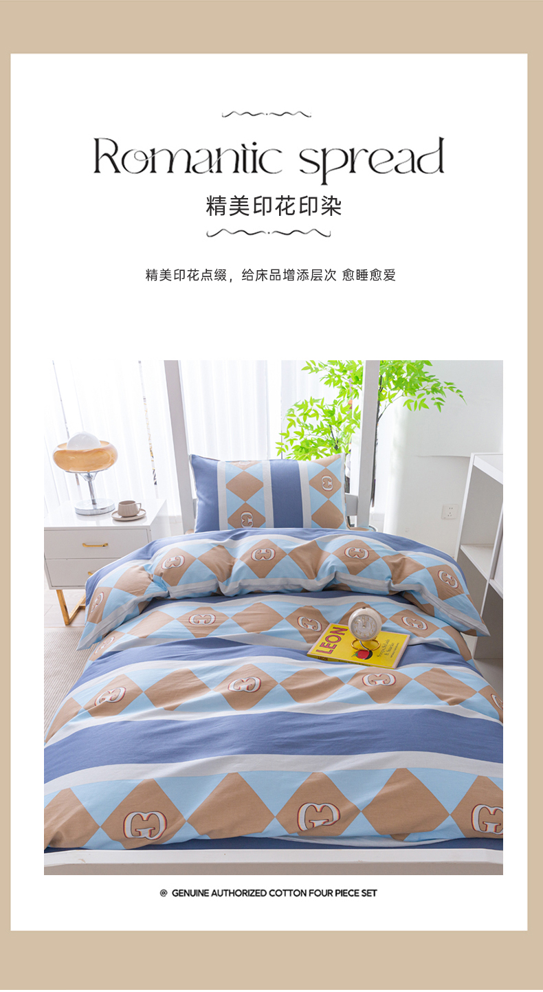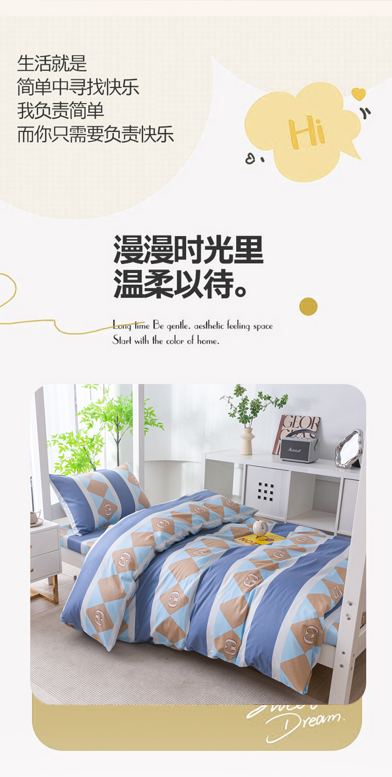 当前位置: 91家纺网 > 商品网购 > 床品套件 > 四件套 > 全棉普通四件套 > 简冠家纺 2025新款全棉学生宿舍三四件套 莱卡之约-兰