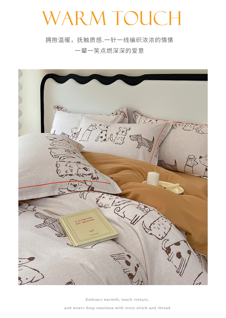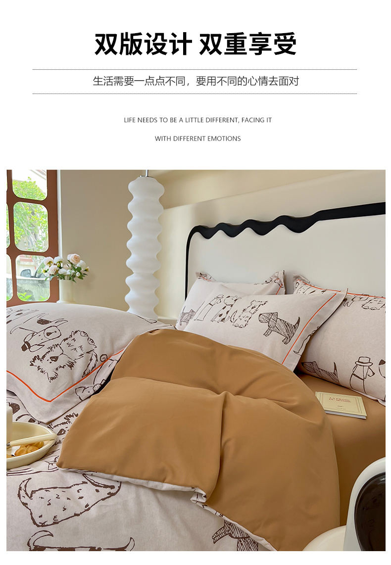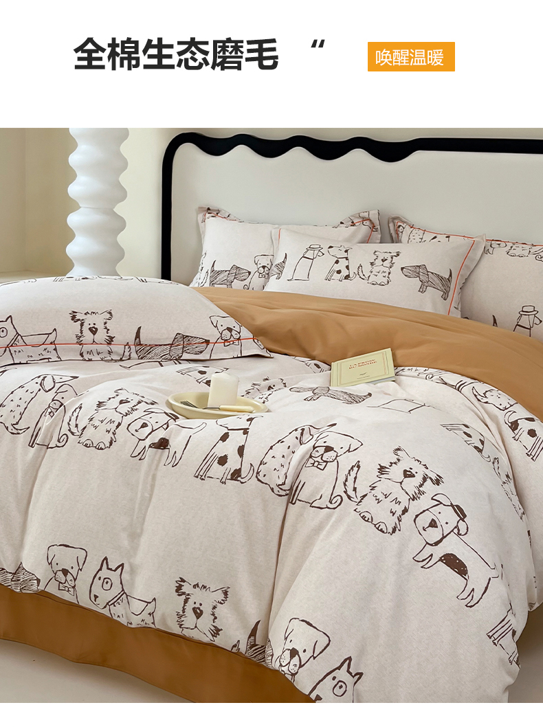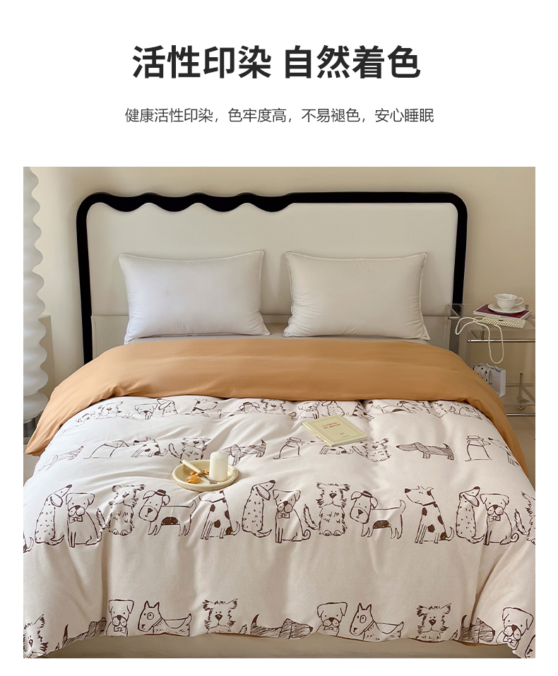 当前位置: 91家纺网 > 商品网购 > 床上用品 > 被套 > 艾迪尚家纺 2025新款生态全棉磨毛印花四件套--单被套 旺仔派
