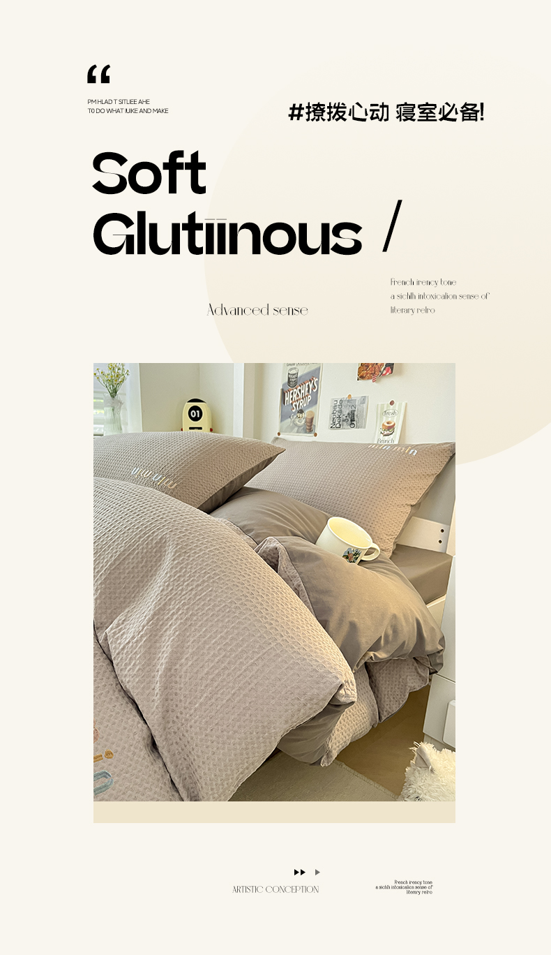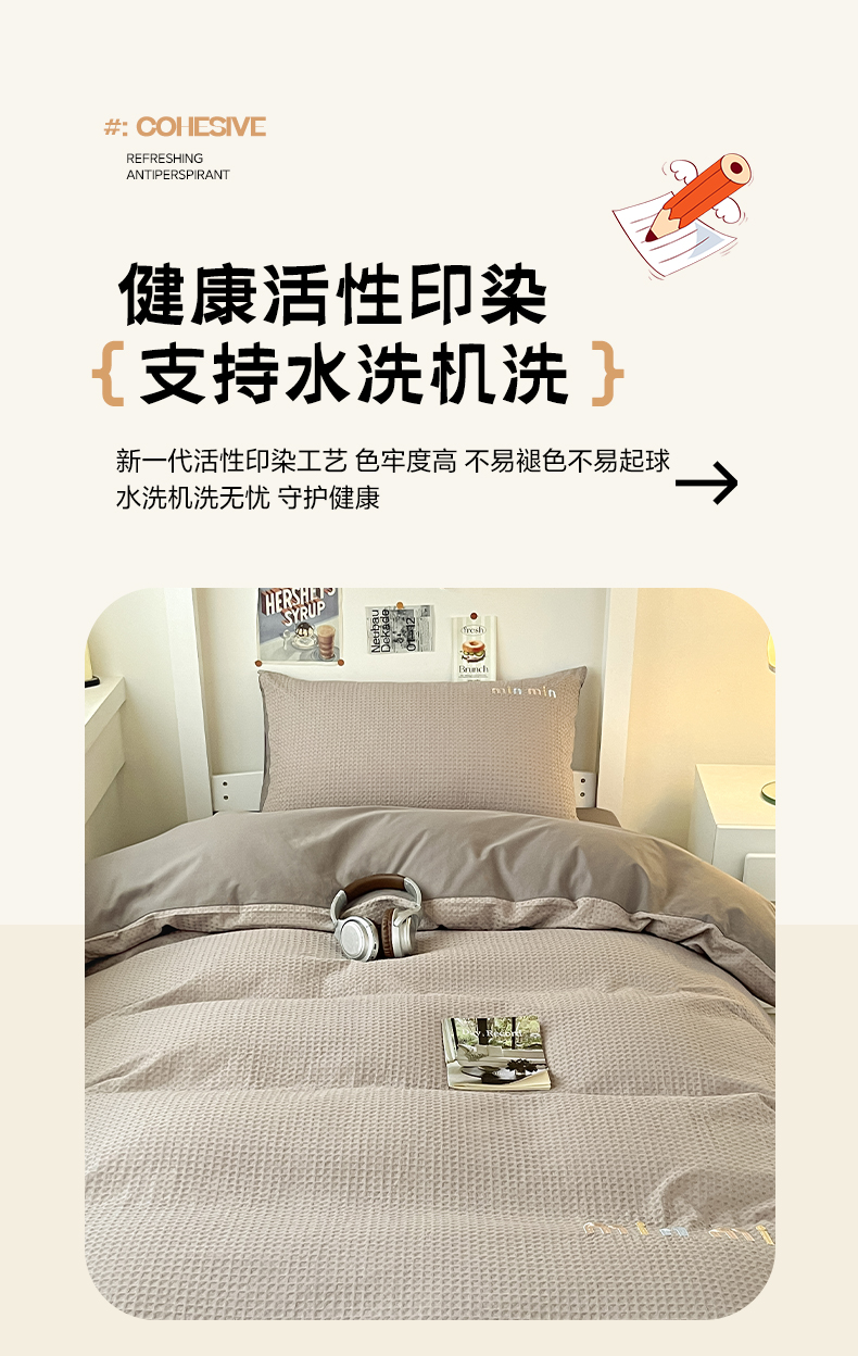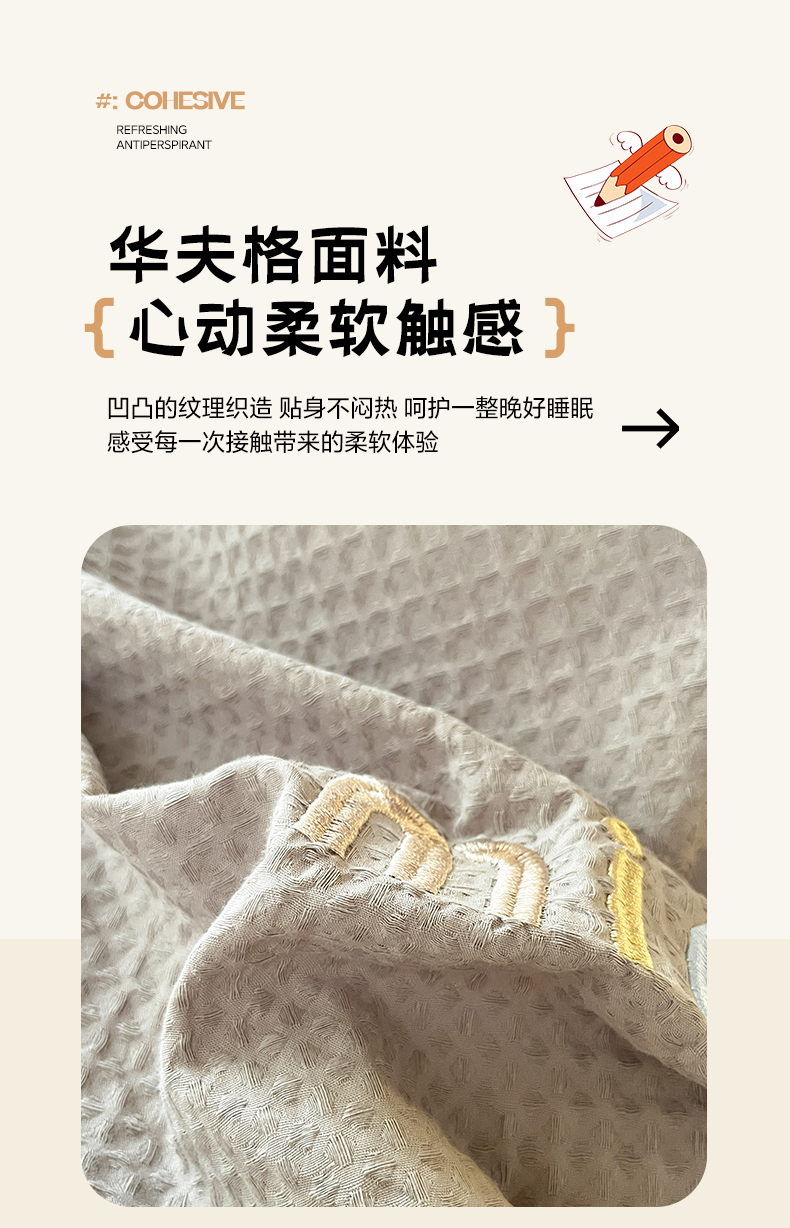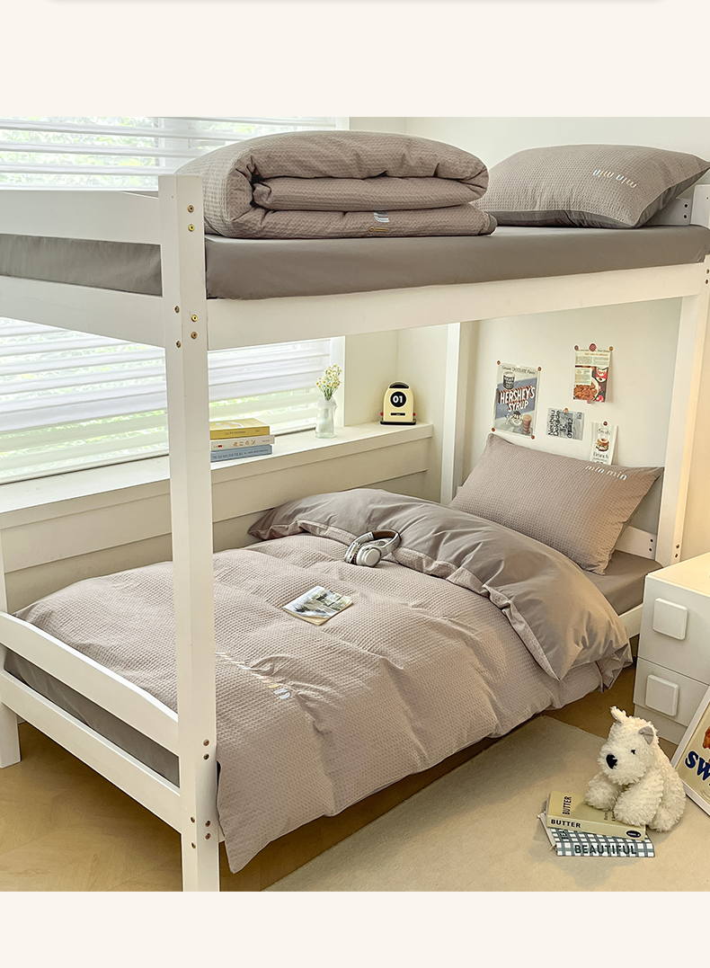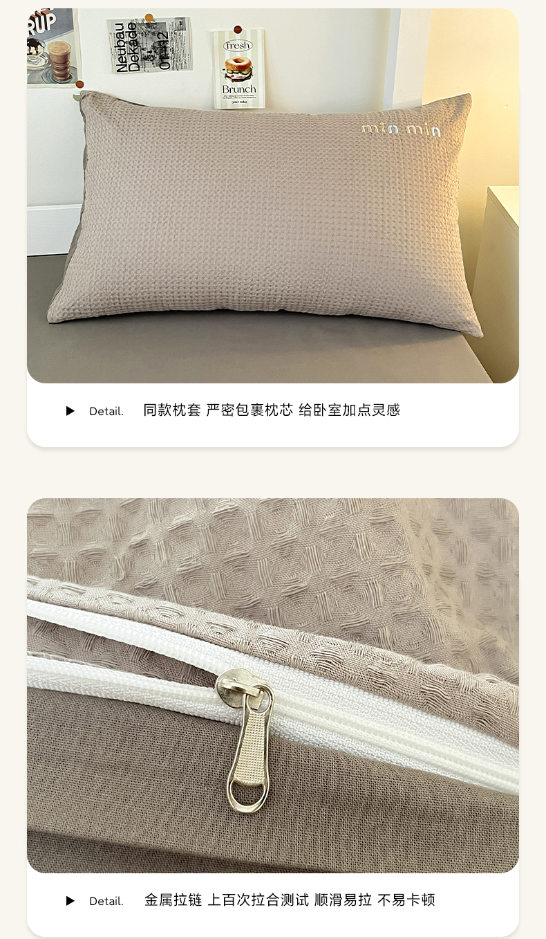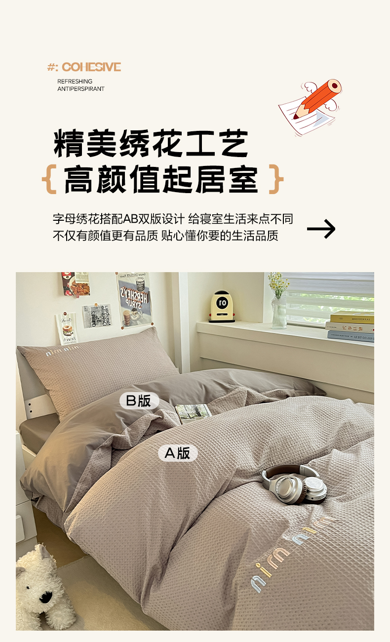 当前位置: 91家纺网 > 商品网购 > 床品套件 > 四件套 > 全棉普通四件套 > 雅居纺家纺 2024新款开学季全棉A类华夫格绣花四件套-Min Min-浅灰