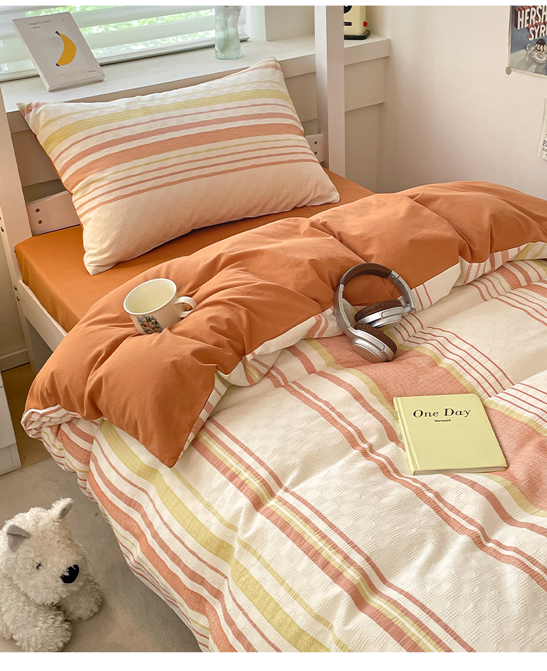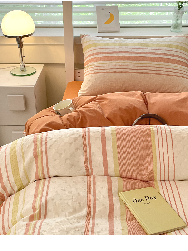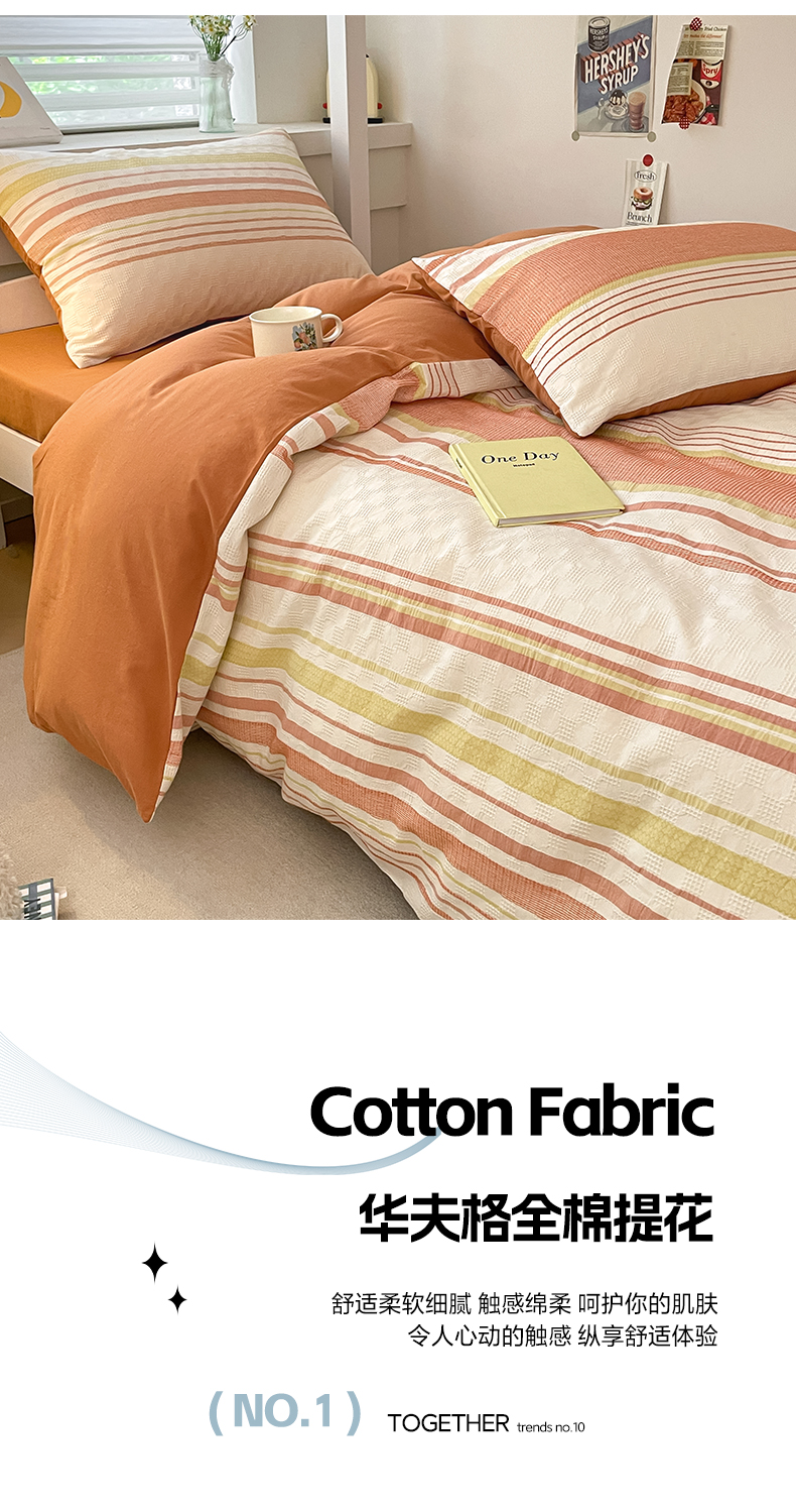 当前位置: 91家纺网 > 商品网购 > 床品套件 > 四件套 > 全棉普通四件套 > 雅居纺家纺 2024新款开学季全棉提花华夫格四件套-简希 简希-焦糖