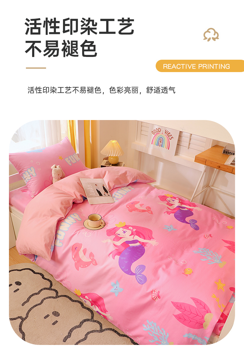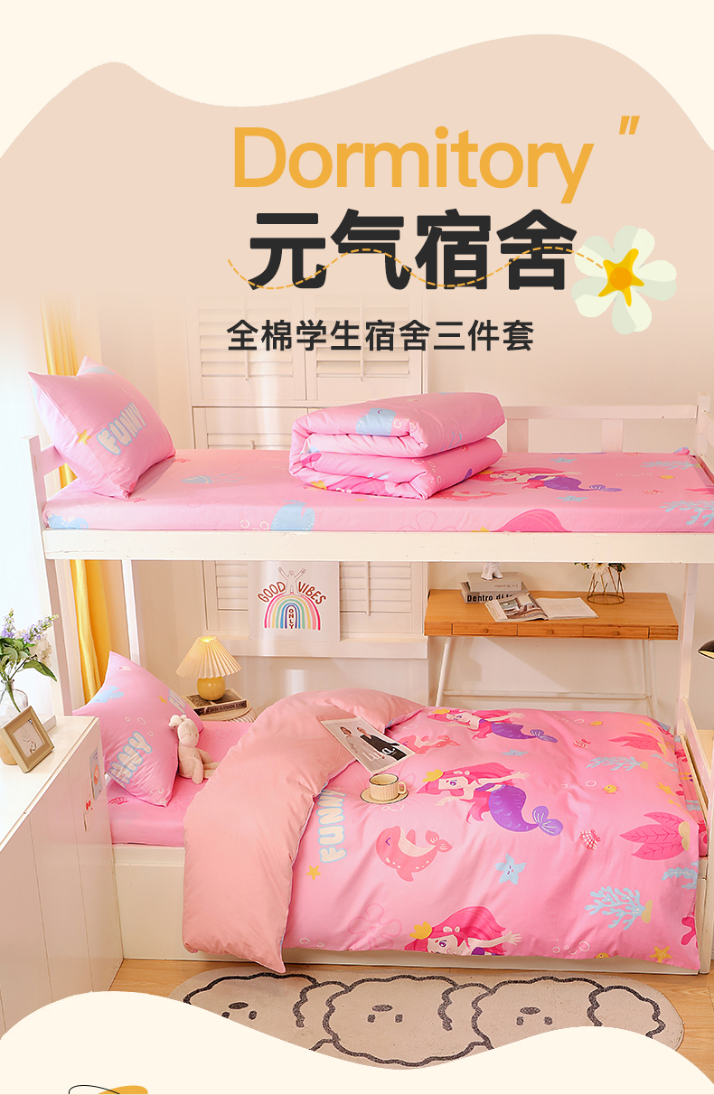 当前位置: 91家纺网 > 商品网购 > 床品套件 > 三件套 > 金鑫汇家纺 2024新款全棉宿舍印花三件套第三批 小美人鱼