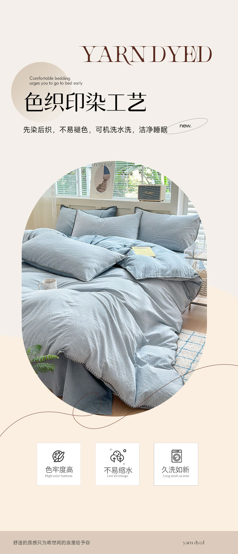 当前位置: 91家纺网 > 商品网购 > 床品套件 > 四件套 > 全棉普通四件套 > 宜家坊 2024新款A类全棉色织水洗棉贝壳边绣三角针工艺四件套可定制 时光-浅蓝