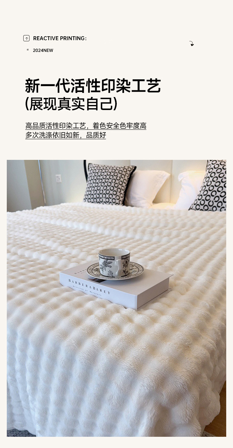 兜米家居 2024新款纯色仿兔毛泡泡毛毯牛奶绒毛毯午睡毯 纯净白