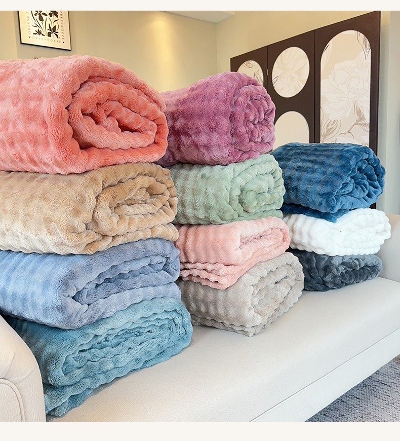 商品名称:兜米家居 2024新款纯色仿兔毛泡泡毛毯牛奶绒毛毯午睡毯 纯净白