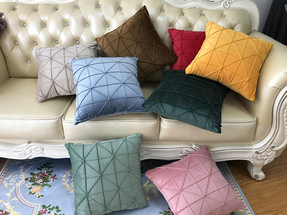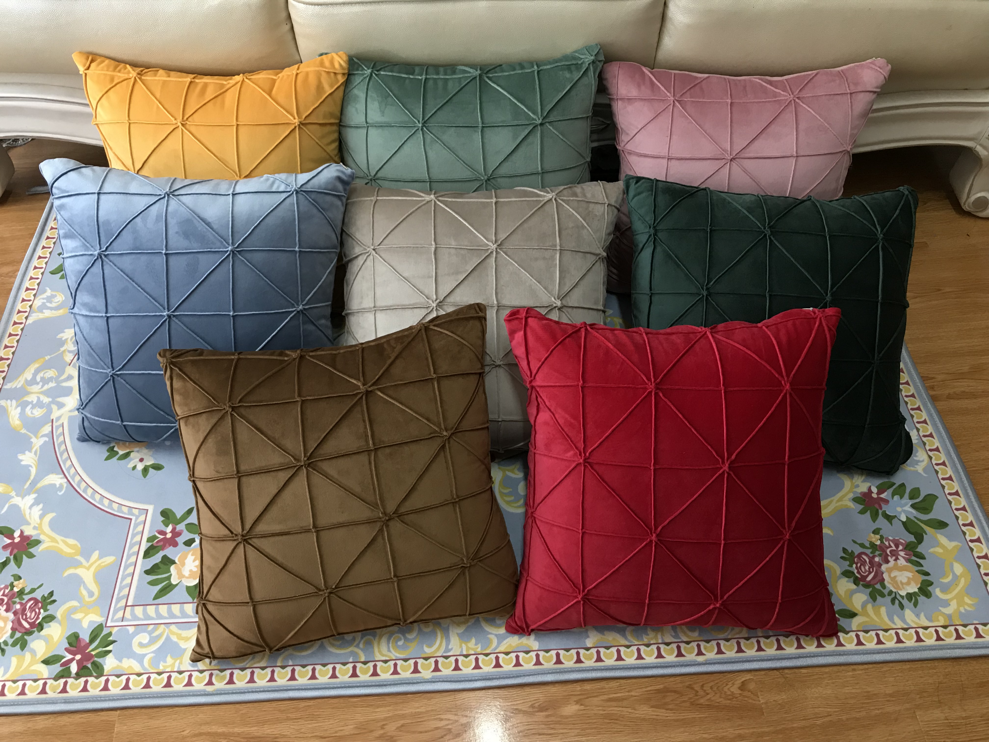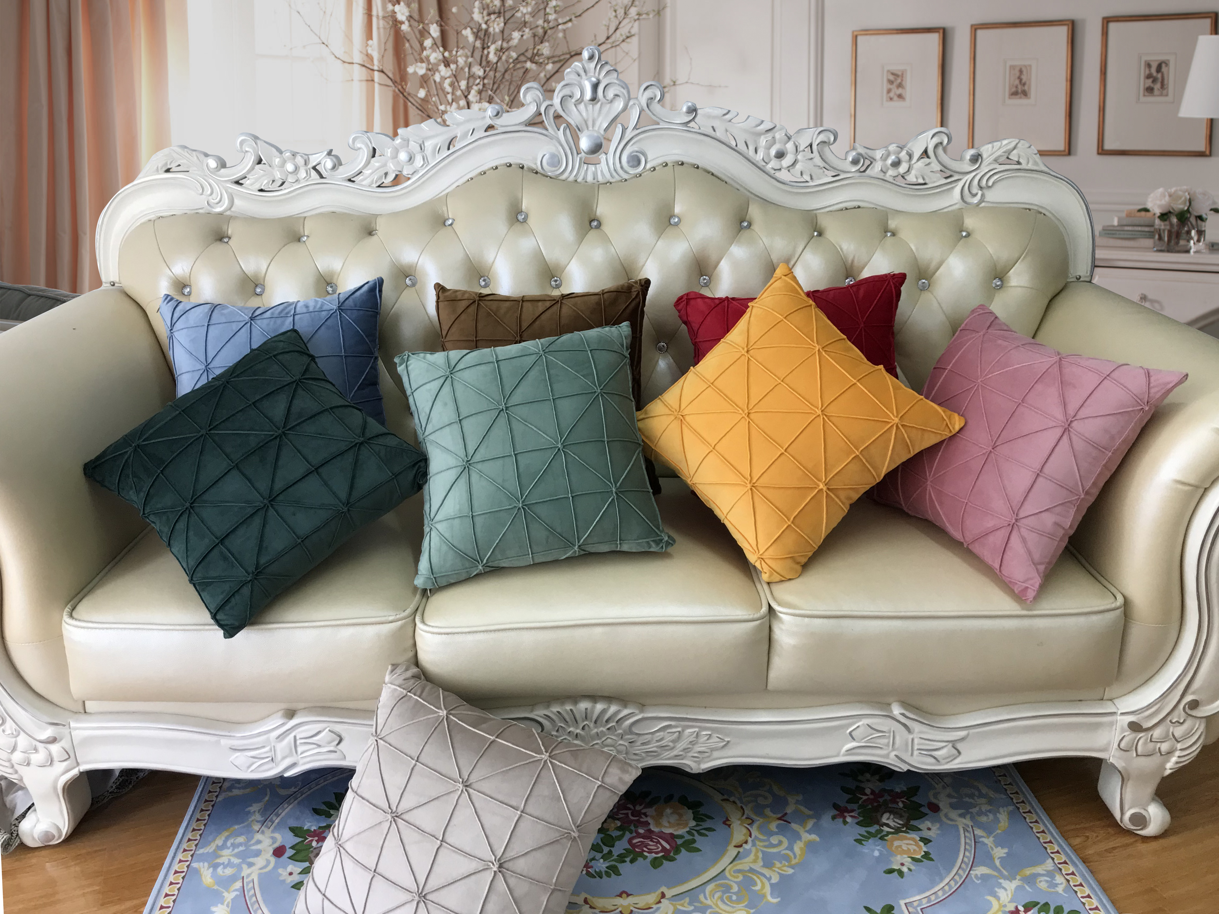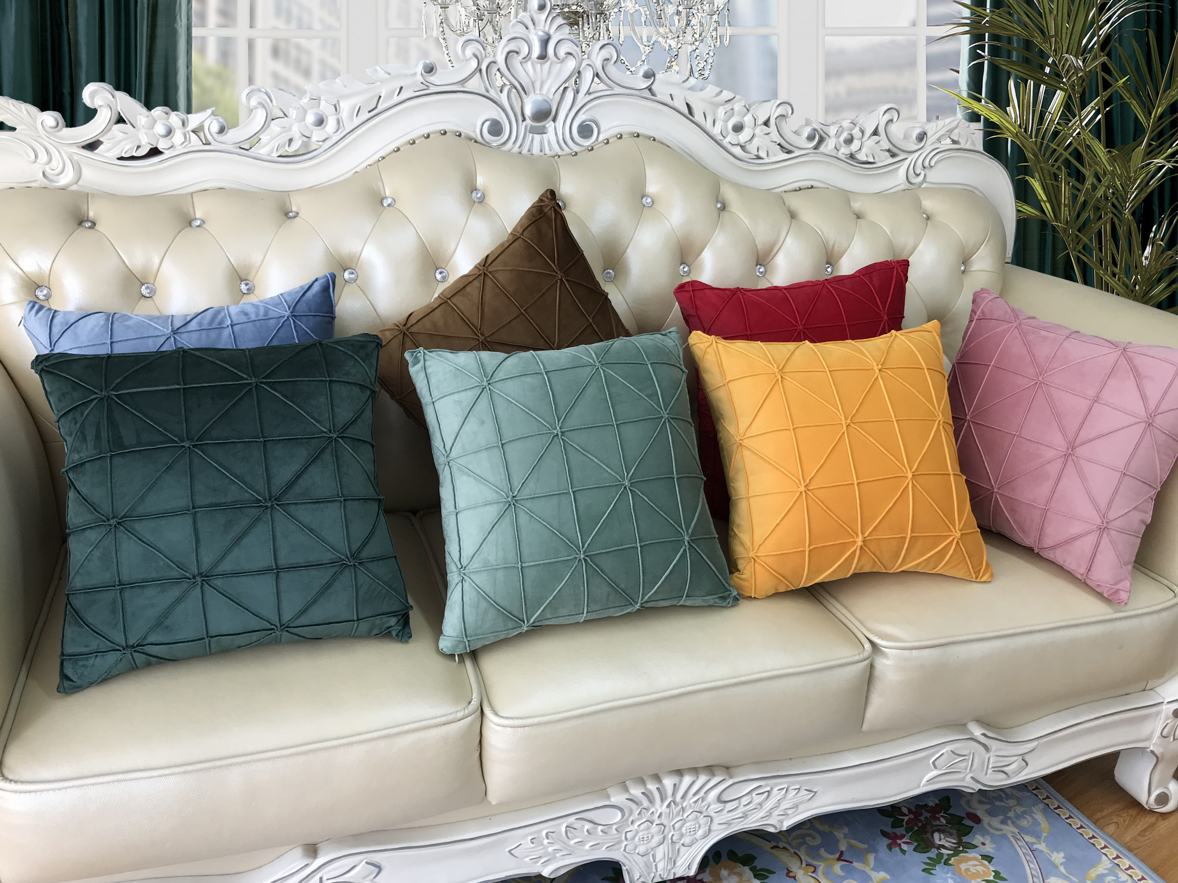 (总)爱家居 2025新款荷兰绒纯色手工褶皱米字格抱枕