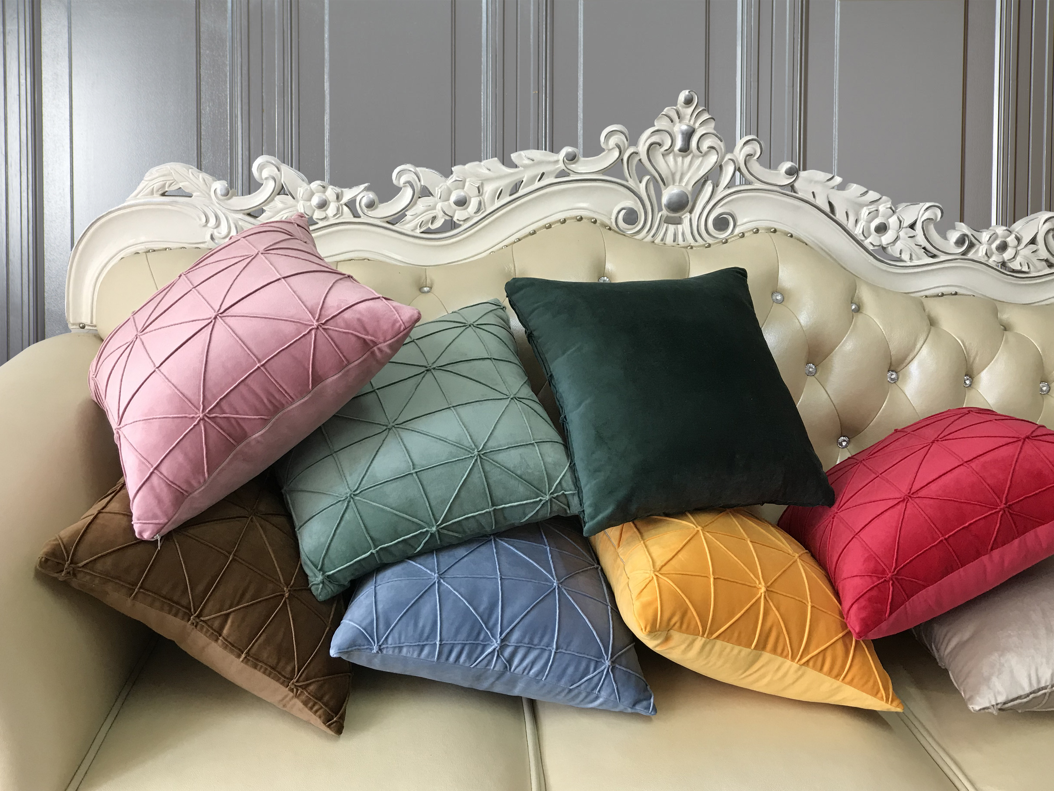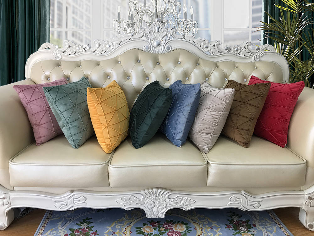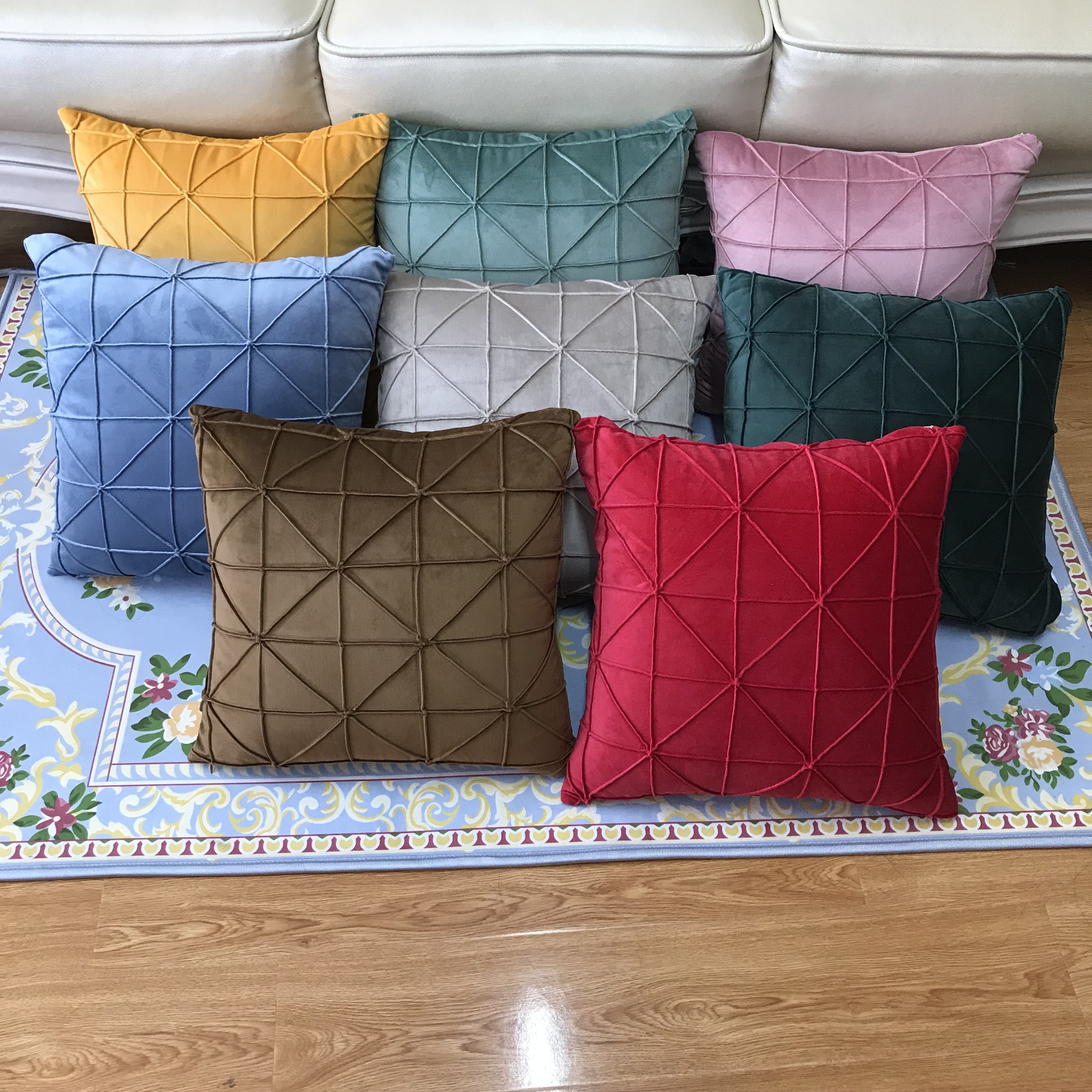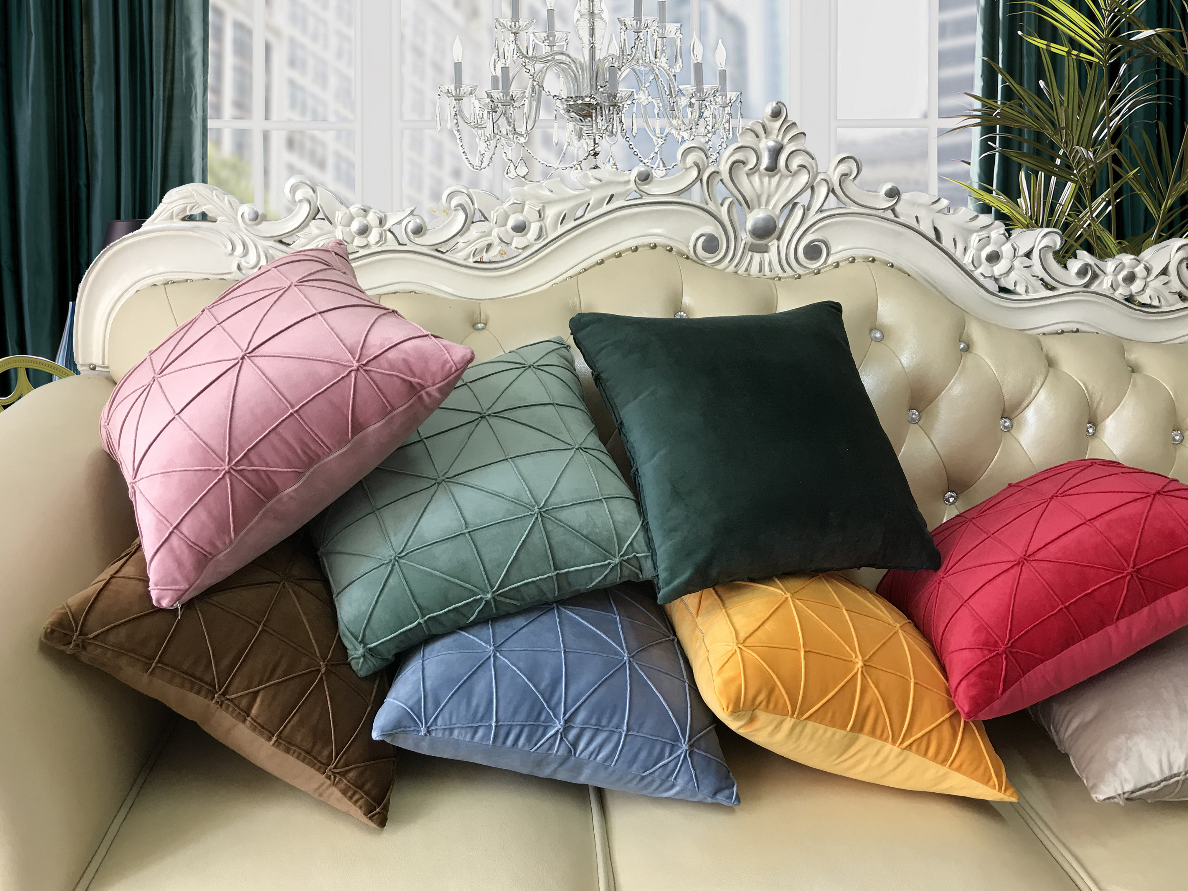 (总)爱家居 2025新款荷兰绒纯色手工褶皱米字格抱枕