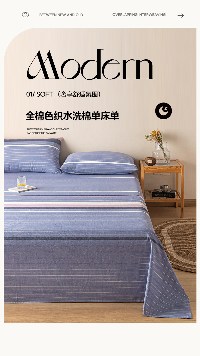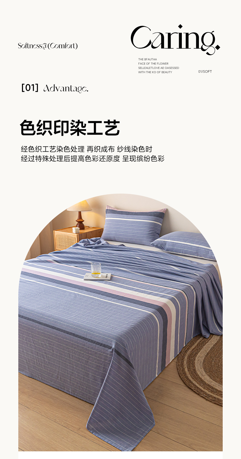 商品名称:卡伦家纺 2025新款全棉色织水洗棉床单学生宿舍单人双人床单系列格林兰