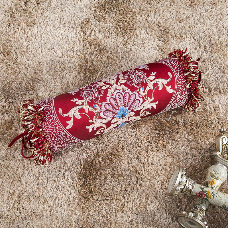 (总)爱家居 2024新款高精密提花平纹糖果枕,酒红平纹,咖啡平纹,米色平纹,驼色平纹