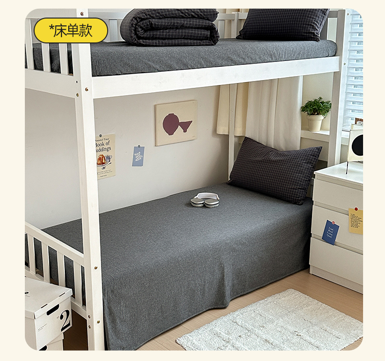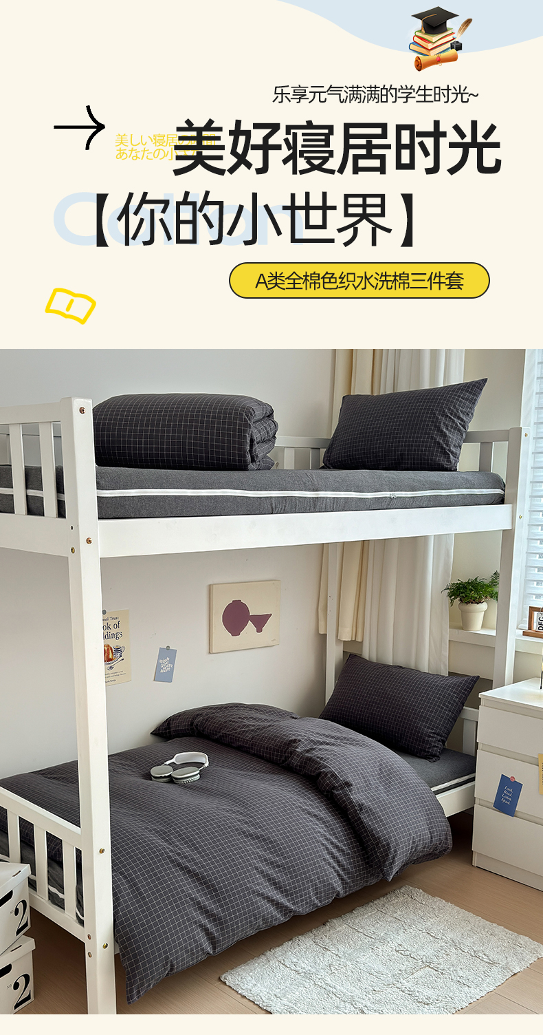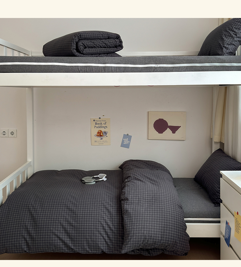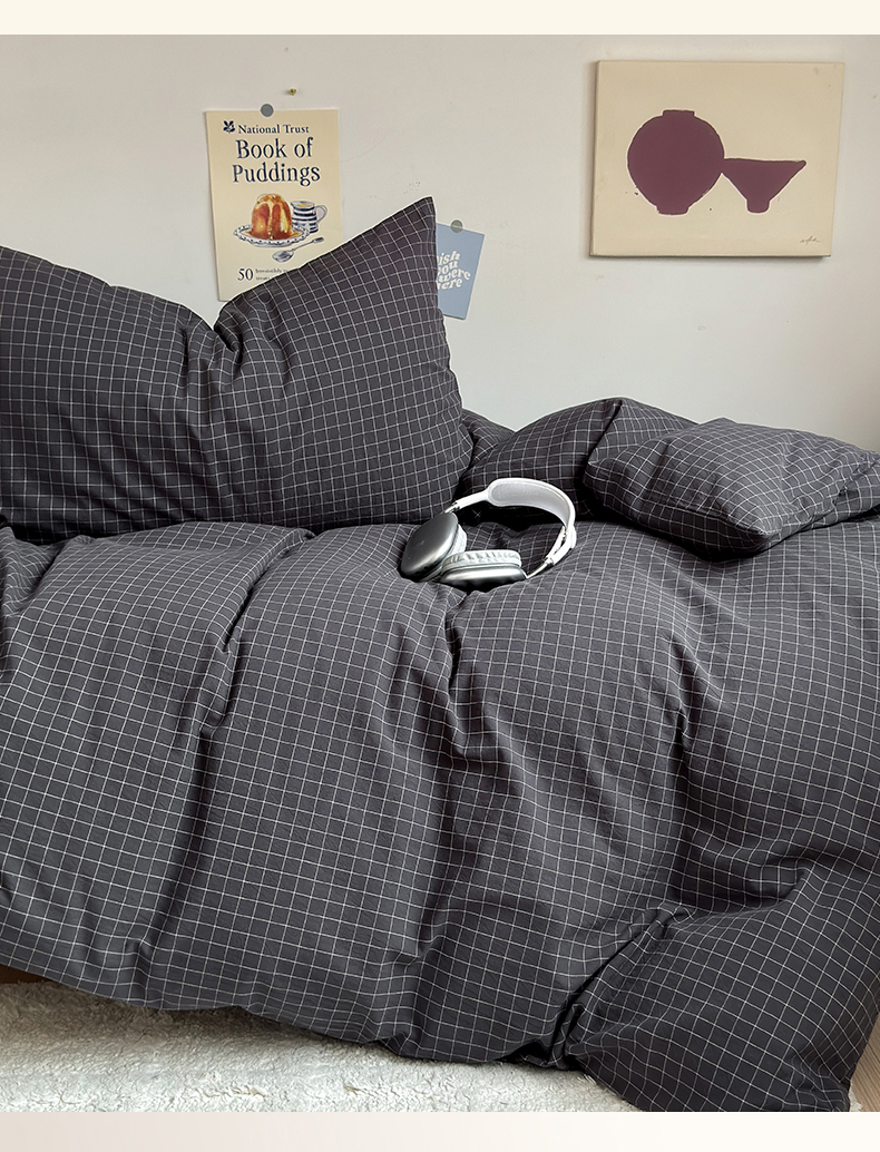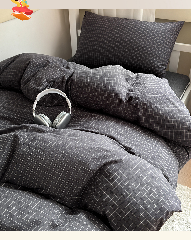 当前位置: 91家纺网 > 商品网购 > 床品套件 > 三件套 > 北欧良品 2024新款A类全棉色织水洗棉学生三件套 深灰小格