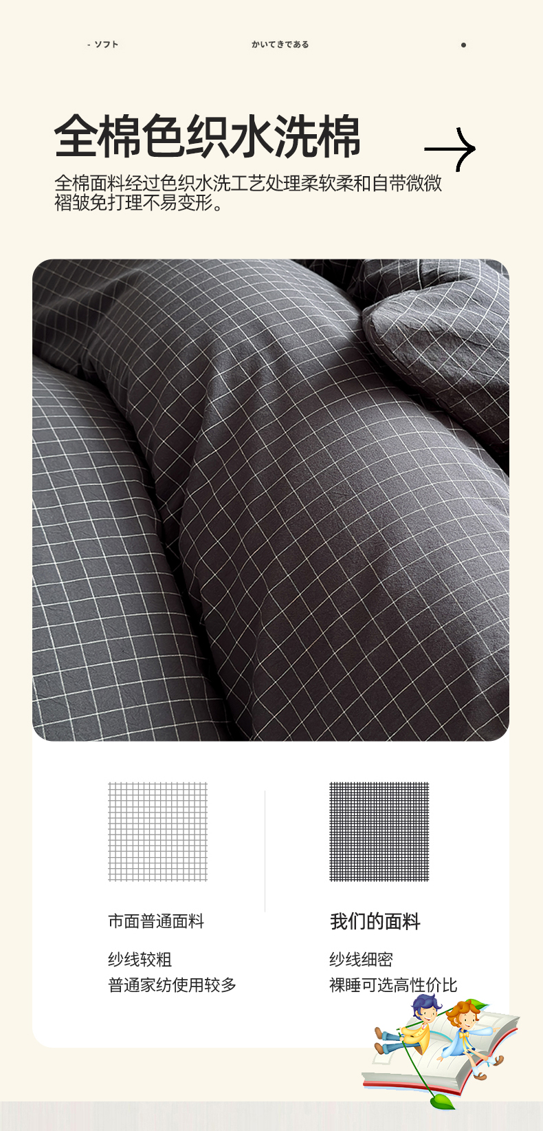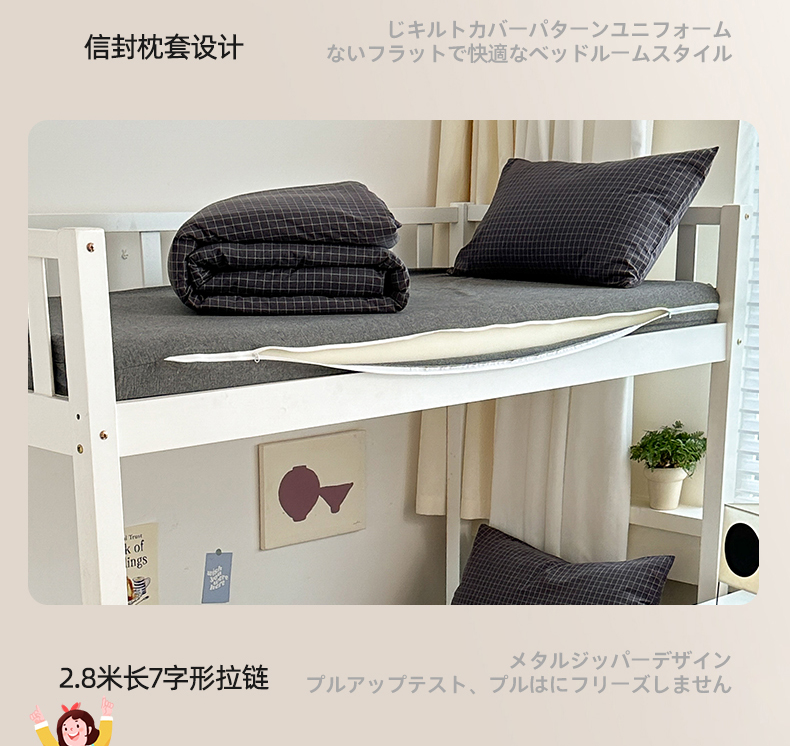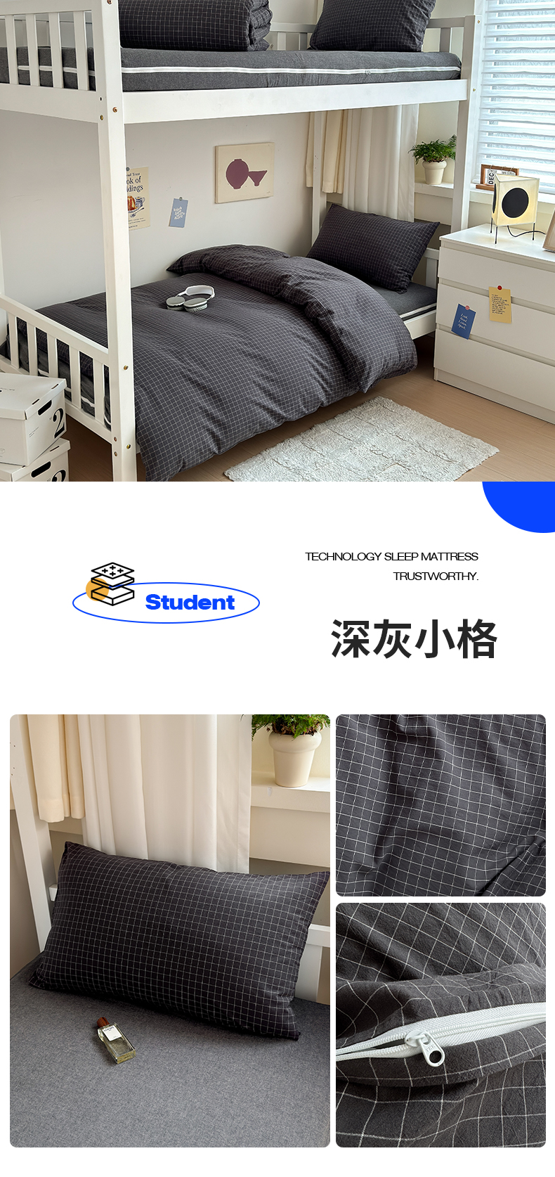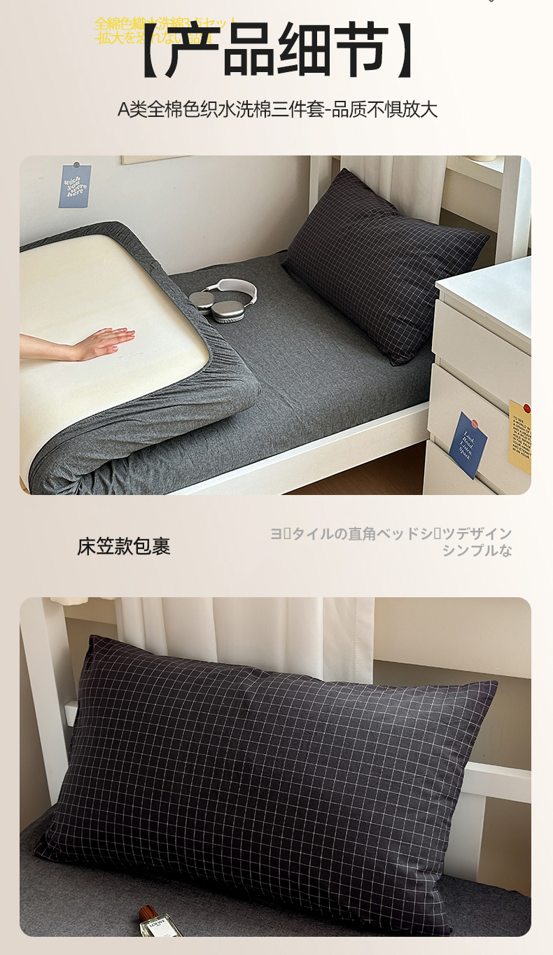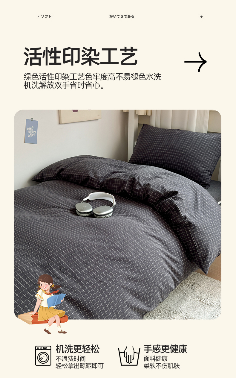 当前位置: 91家纺网 > 商品网购 > 床品套件 > 三件套 > 北欧良品 2024新款A类全棉色织水洗棉学生三件套 深灰小格