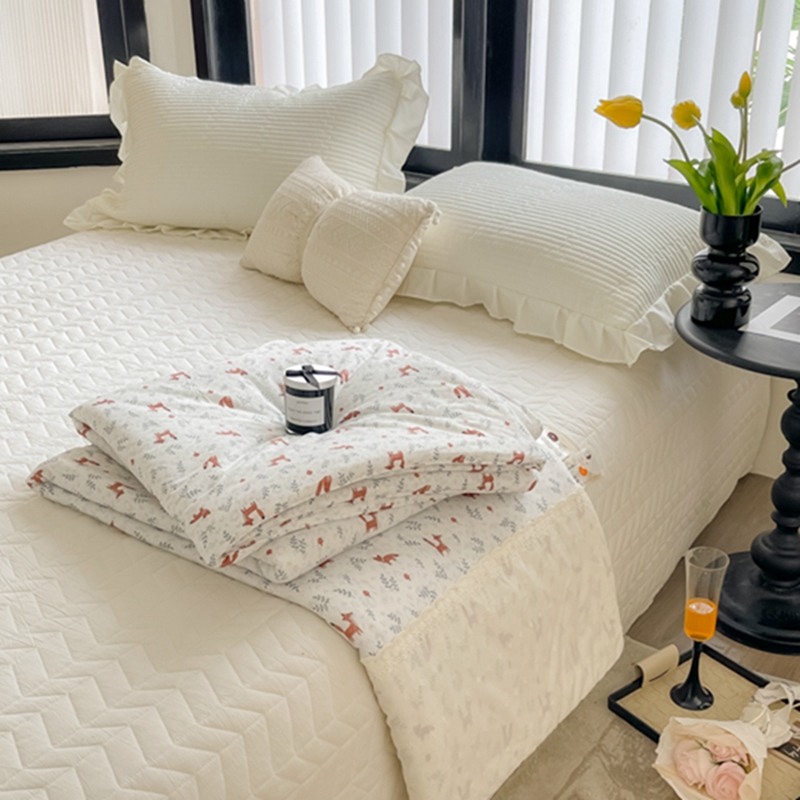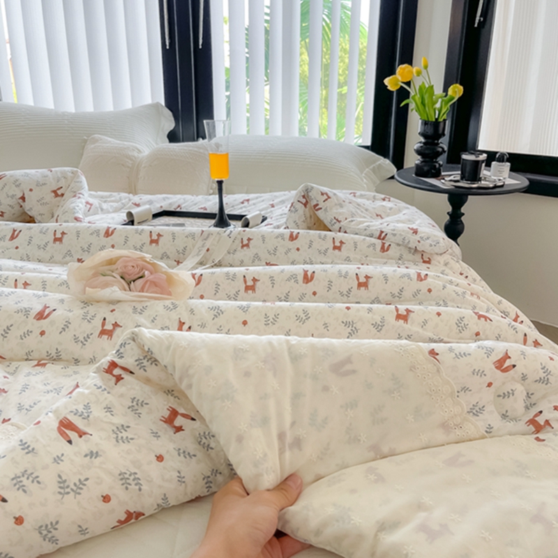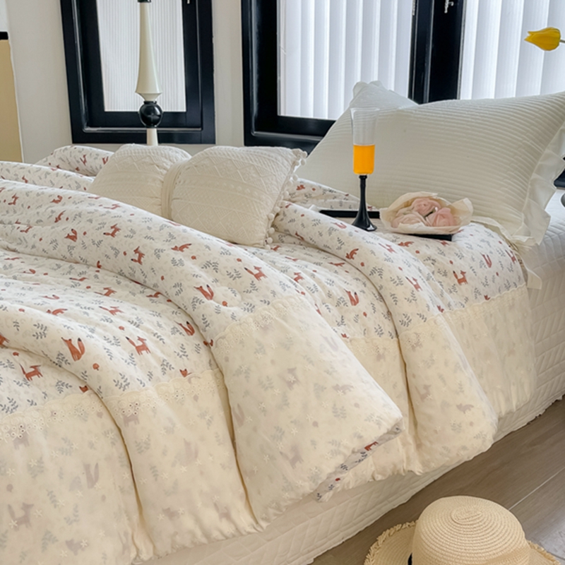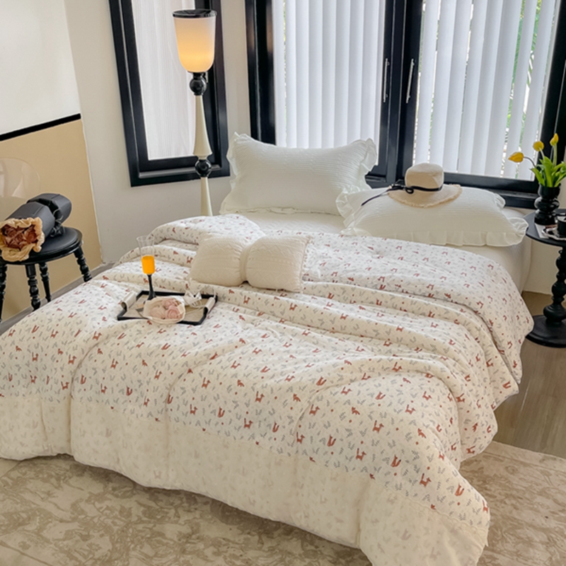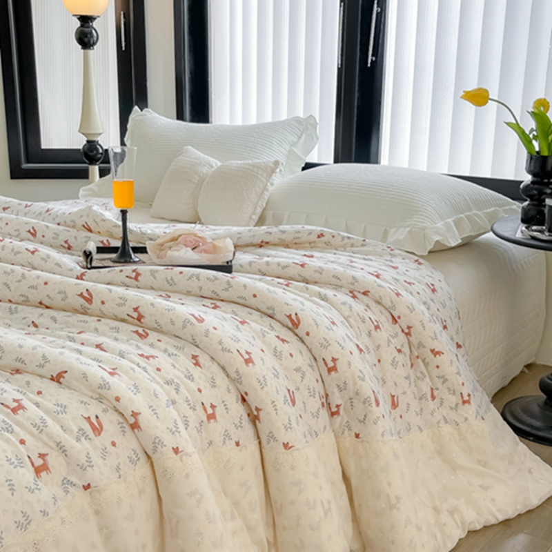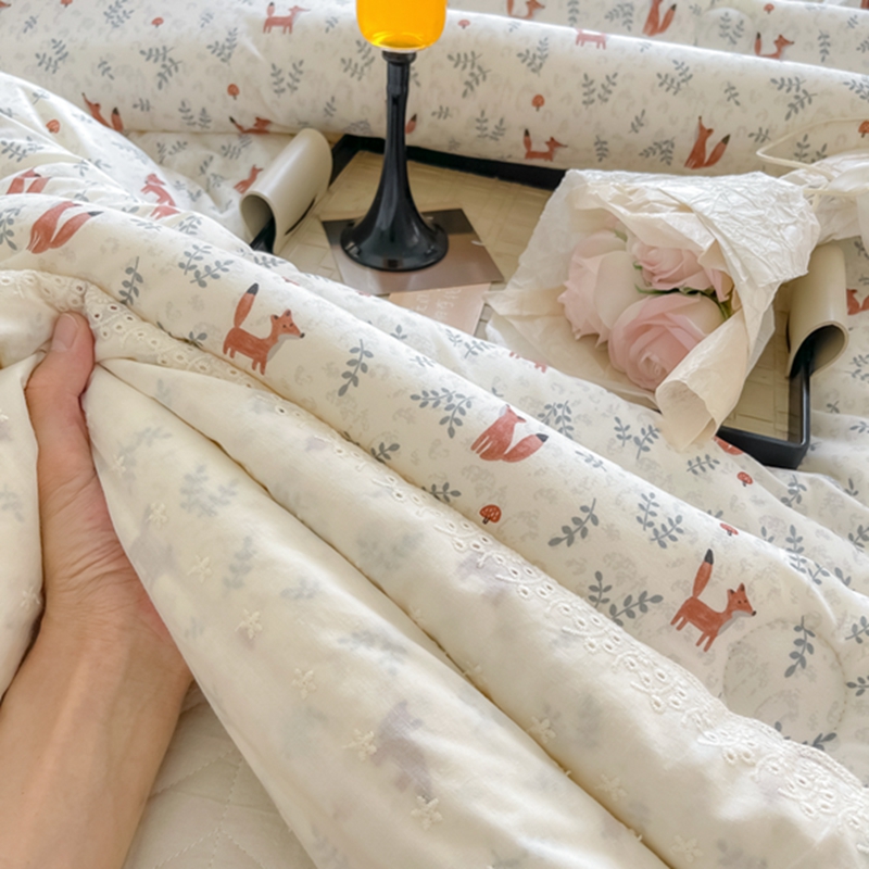 莱豫家纺 2024新款法式复古针织花边夏被春秋被 小狐狸