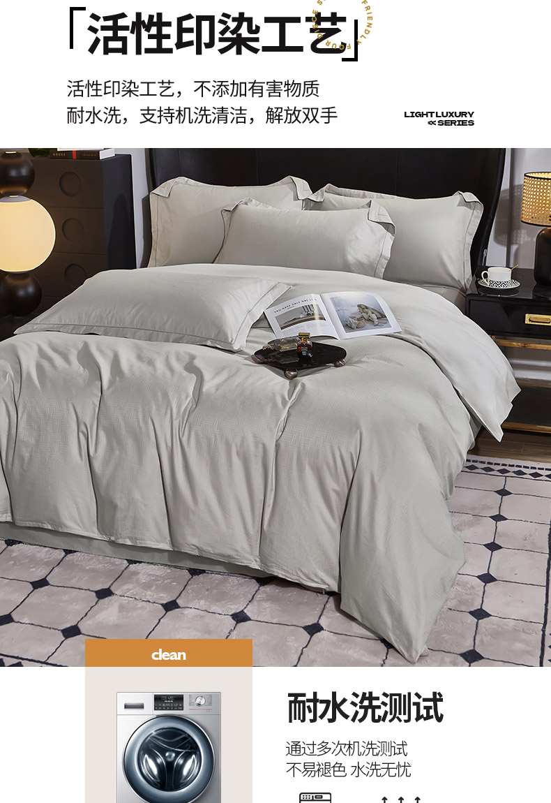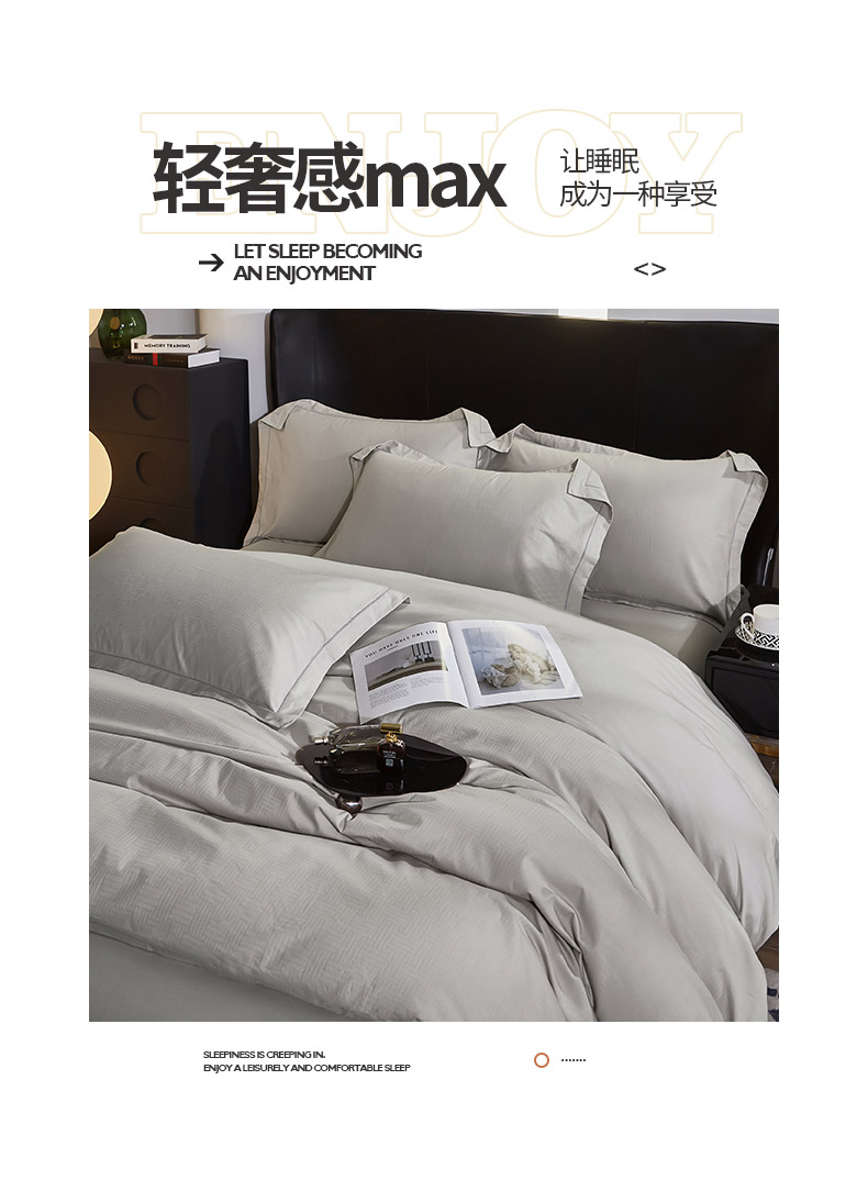 雲归梦 2024新款全棉提花活性高支密轻奢四件套 细条纹-浅灰