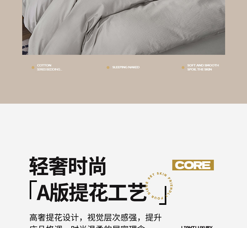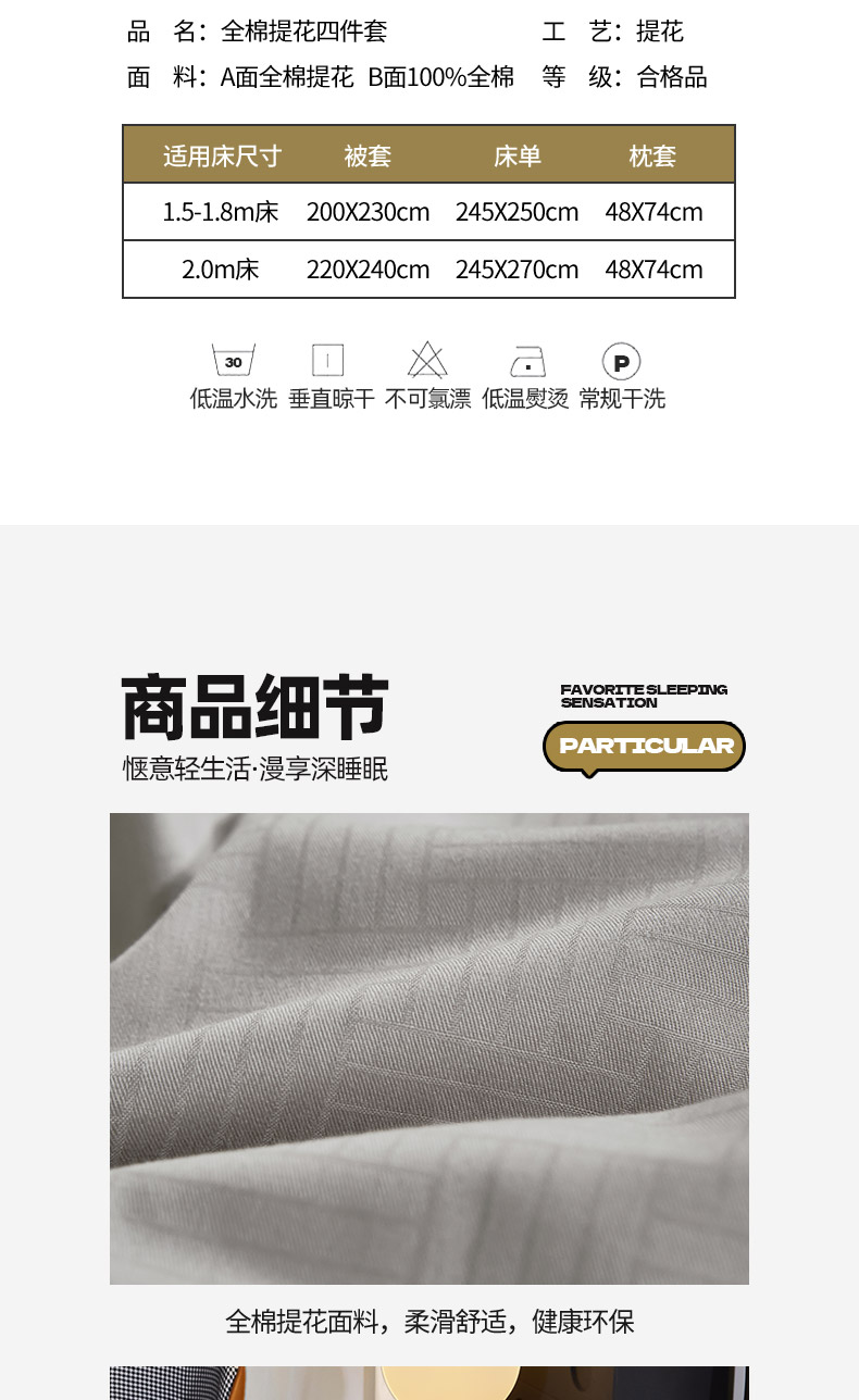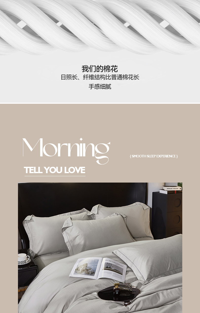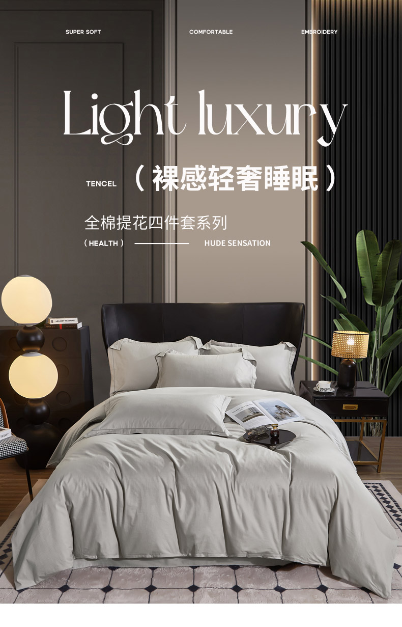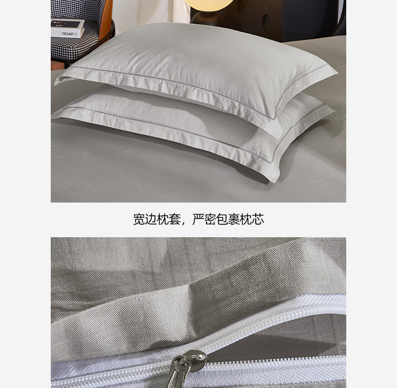 商品名称:雲归梦 2024新款全棉提花活性高支密轻奢四件套 细条纹-浅灰