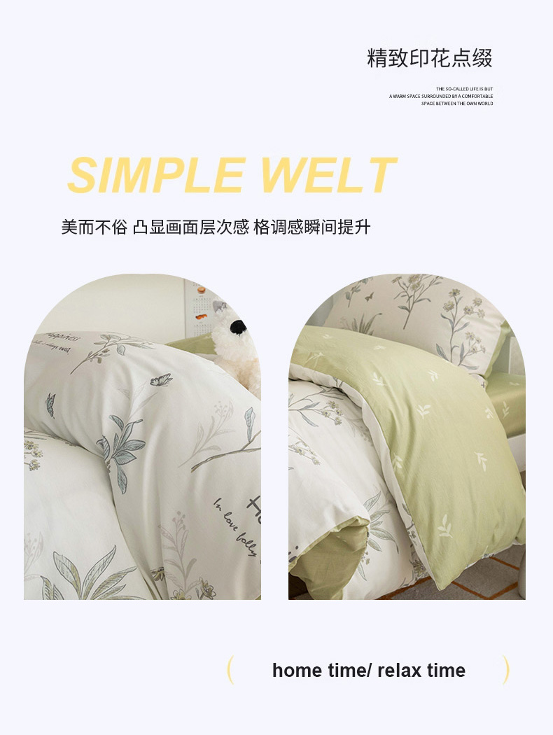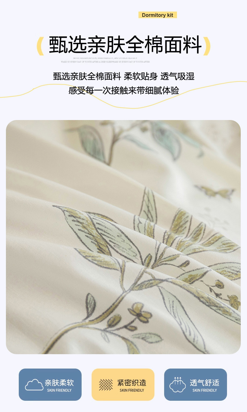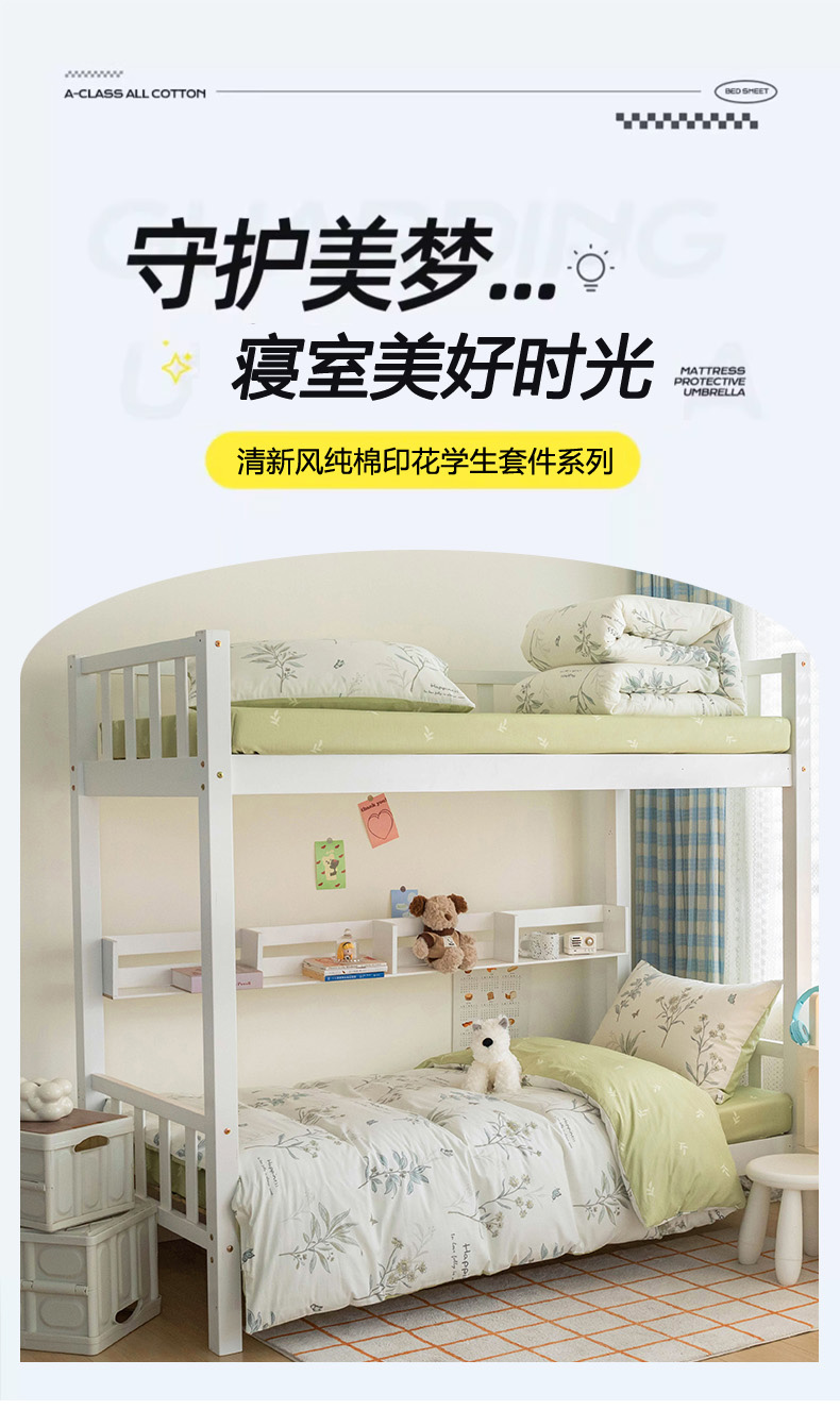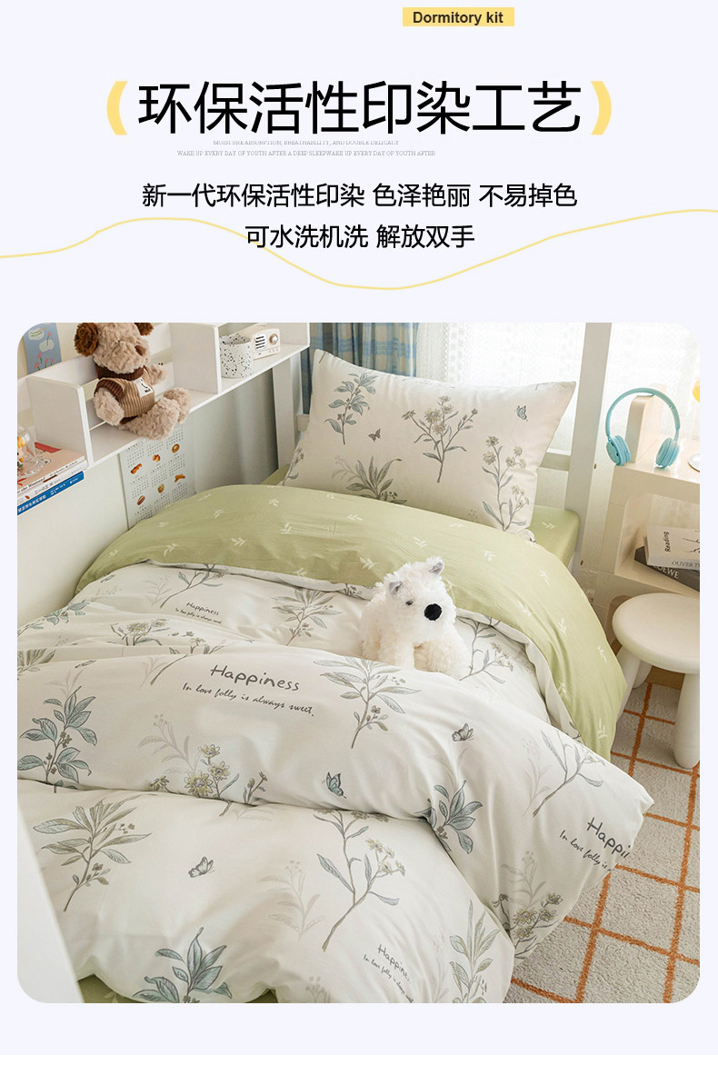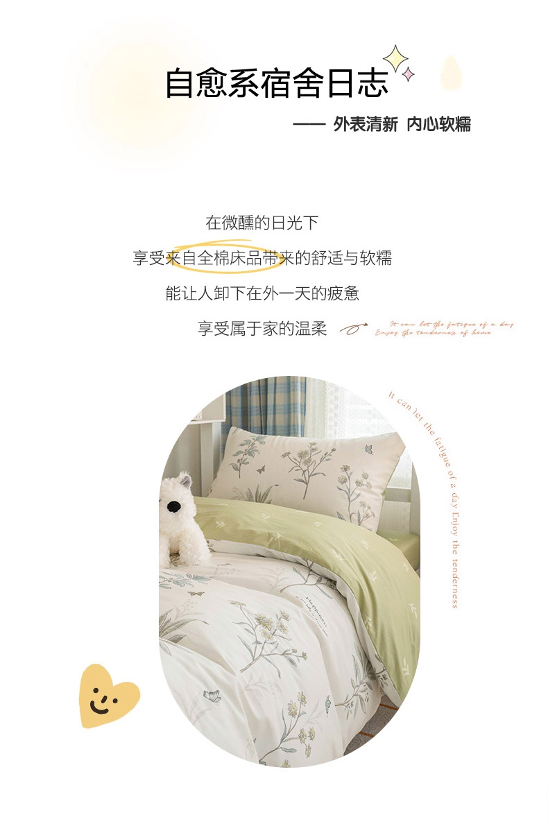 倾慕家纺 2024新款清新风纯棉印花学生套件系列 初夏