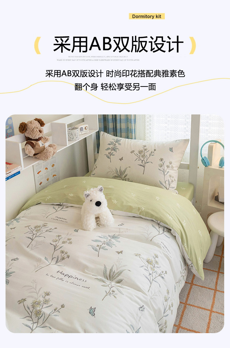 商品名称:倾慕家纺 2024新款清新风纯棉印花学生套件系列 初夏