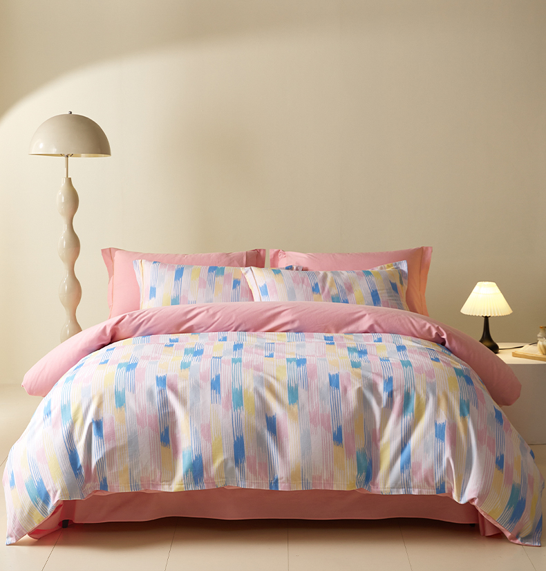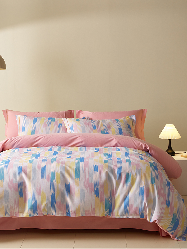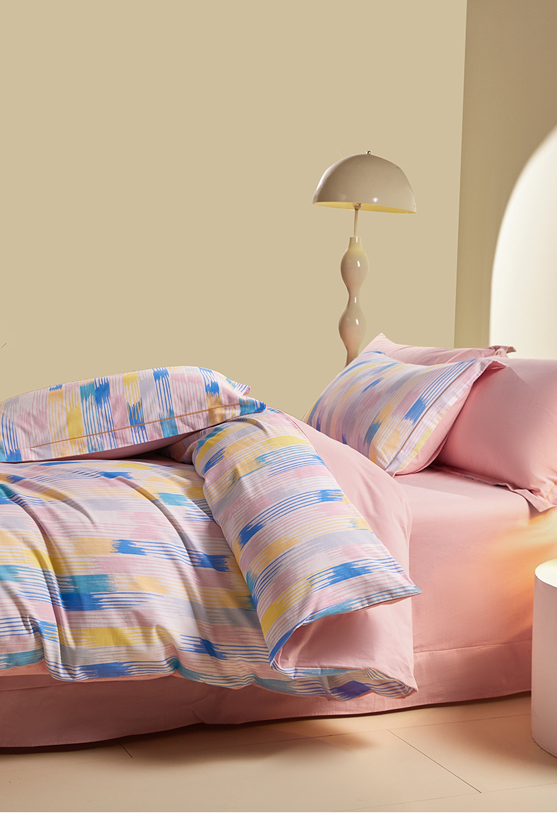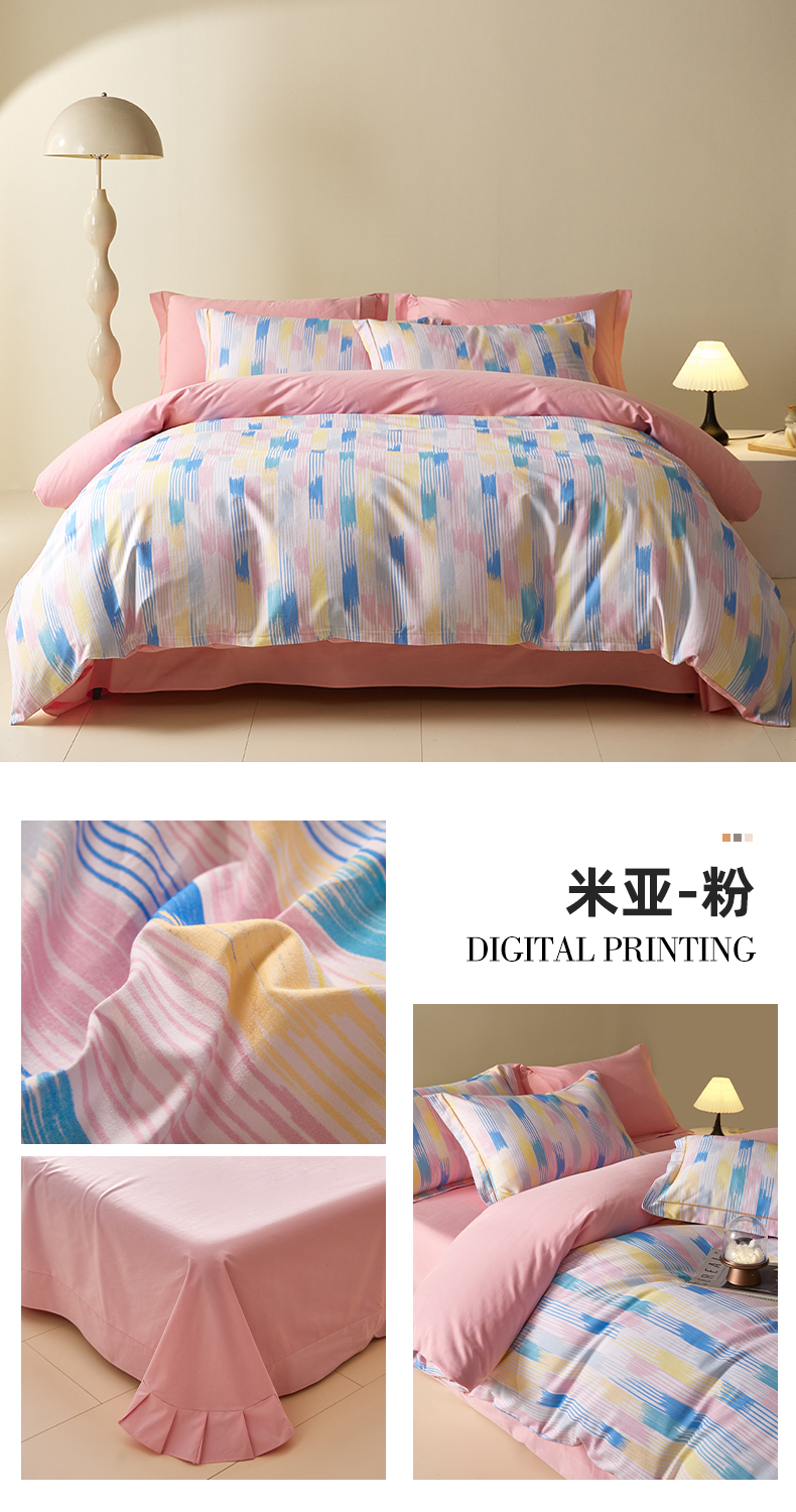 商品名称:格里芬家纺 2025新款抽象彩绘全棉加厚磨毛纯棉印花四件套 米亚-粉