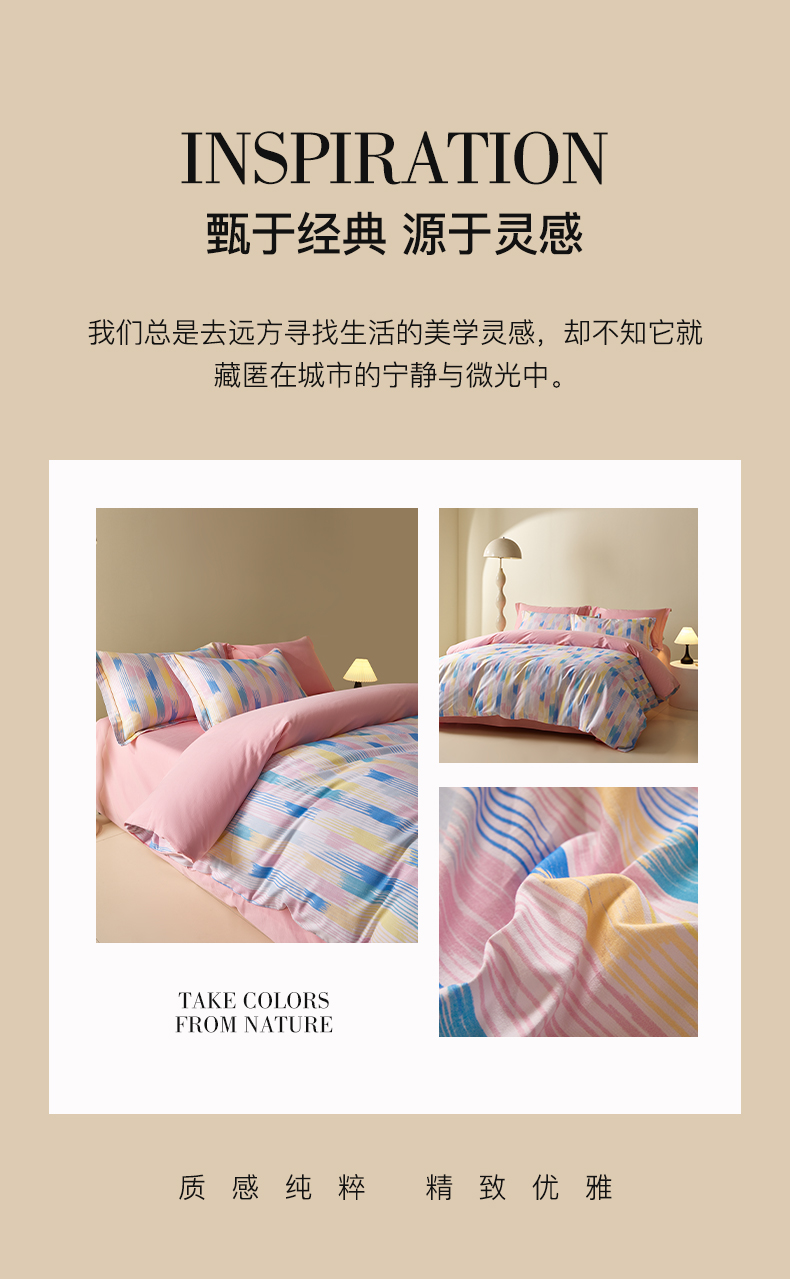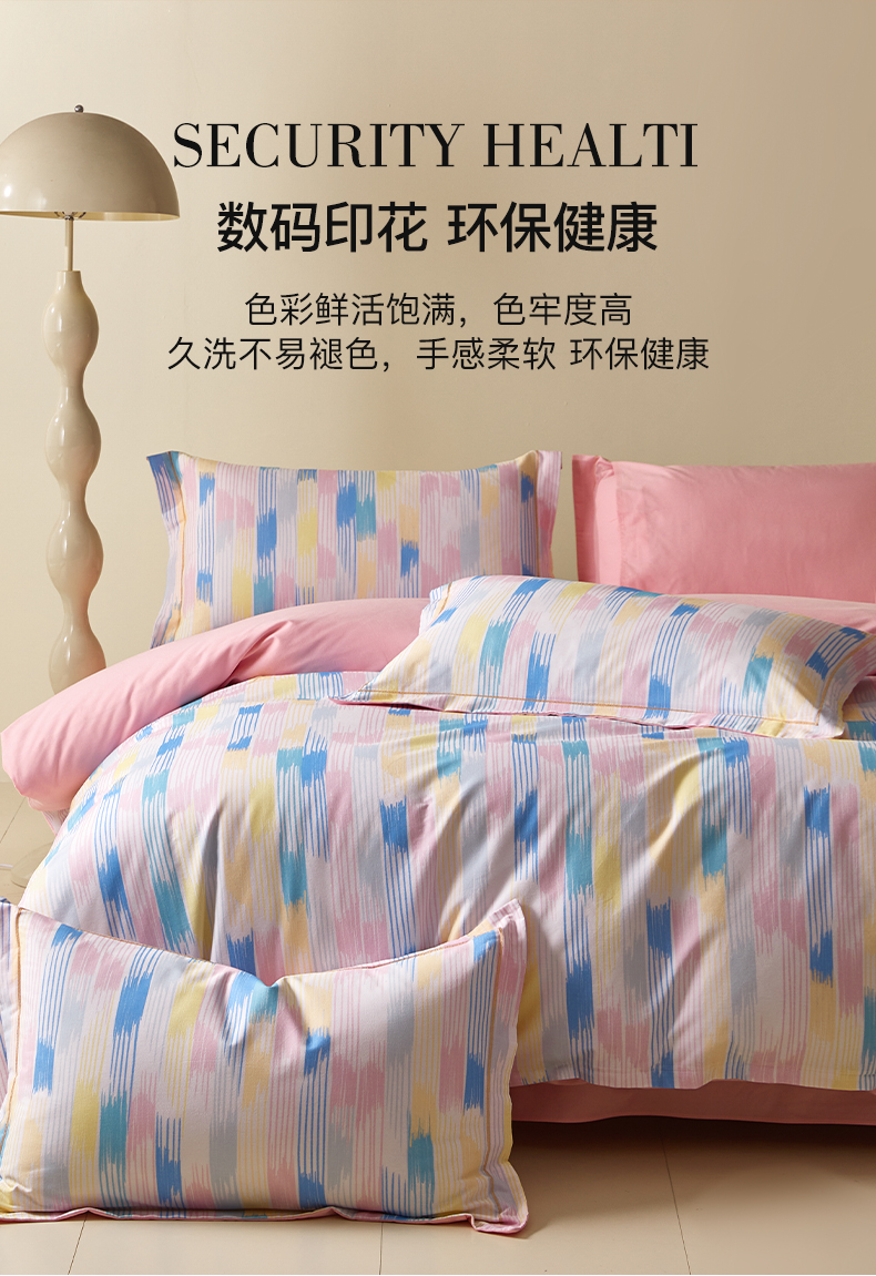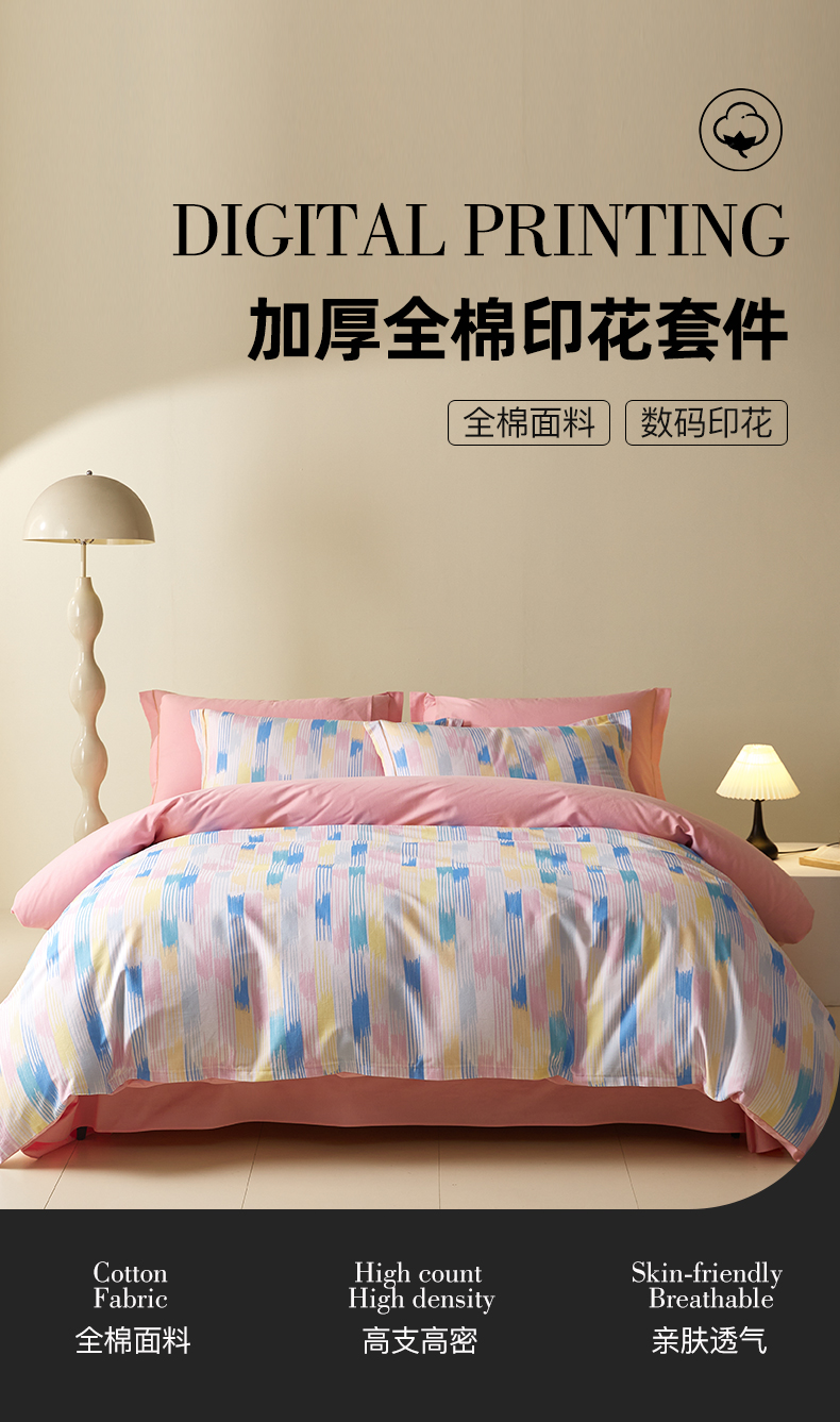 商品名称:格里芬家纺 2025新款抽象彩绘全棉加厚磨毛纯棉印花四件套 米亚-粉