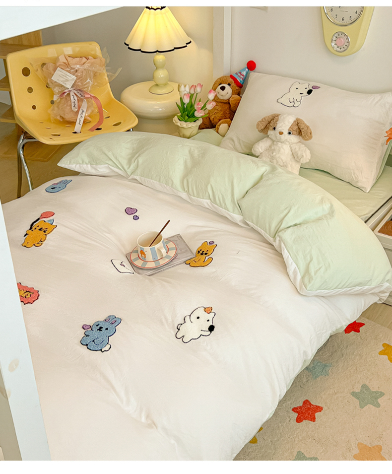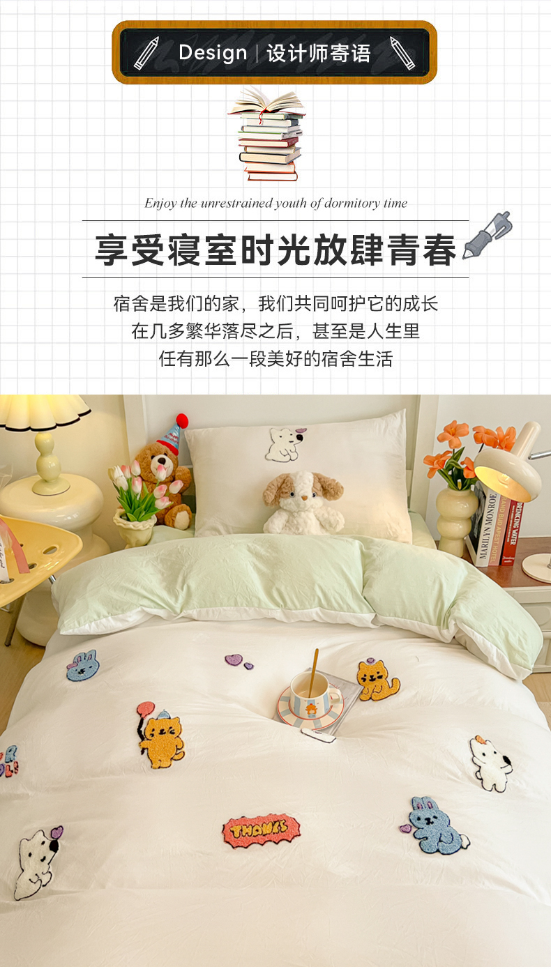 当前位置: 91家纺网 > 商品网购 > 床品套件 > 三件套 > 韩巢家纺 2024新款学生宿舍寝室上下铺超柔水洗棉床单被套三件套-动物乐园 动物乐园白绿