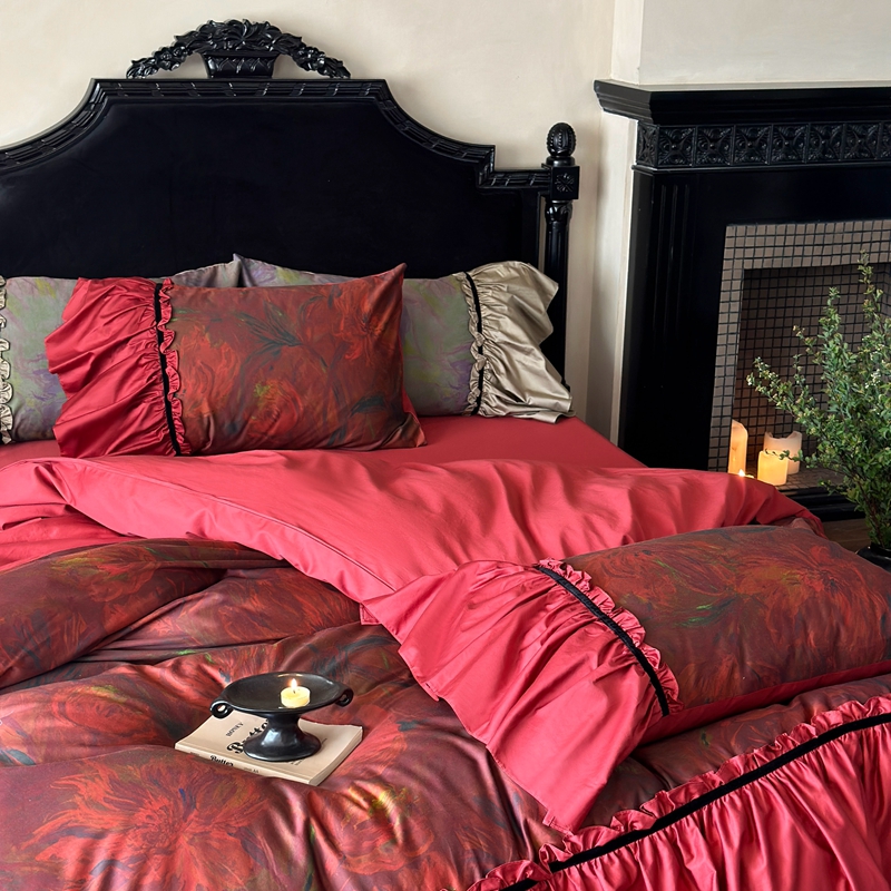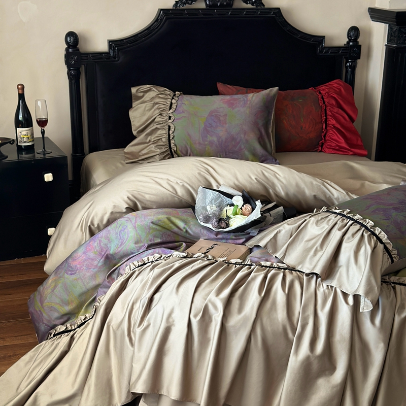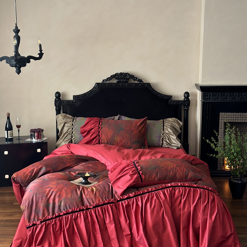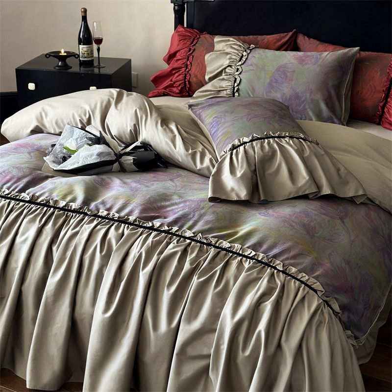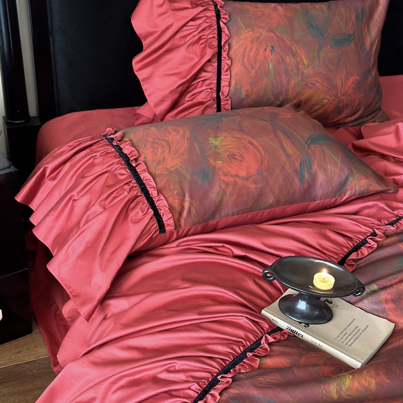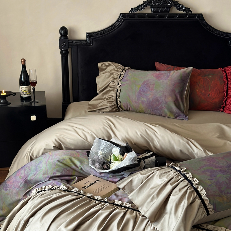 (总)鹿班家居 2026新款100S长绒棉纯棉精密刺绣系列四件套-花影摇曳(标准会员-20元),花影摇曳-粉色,花影摇曳-紫色