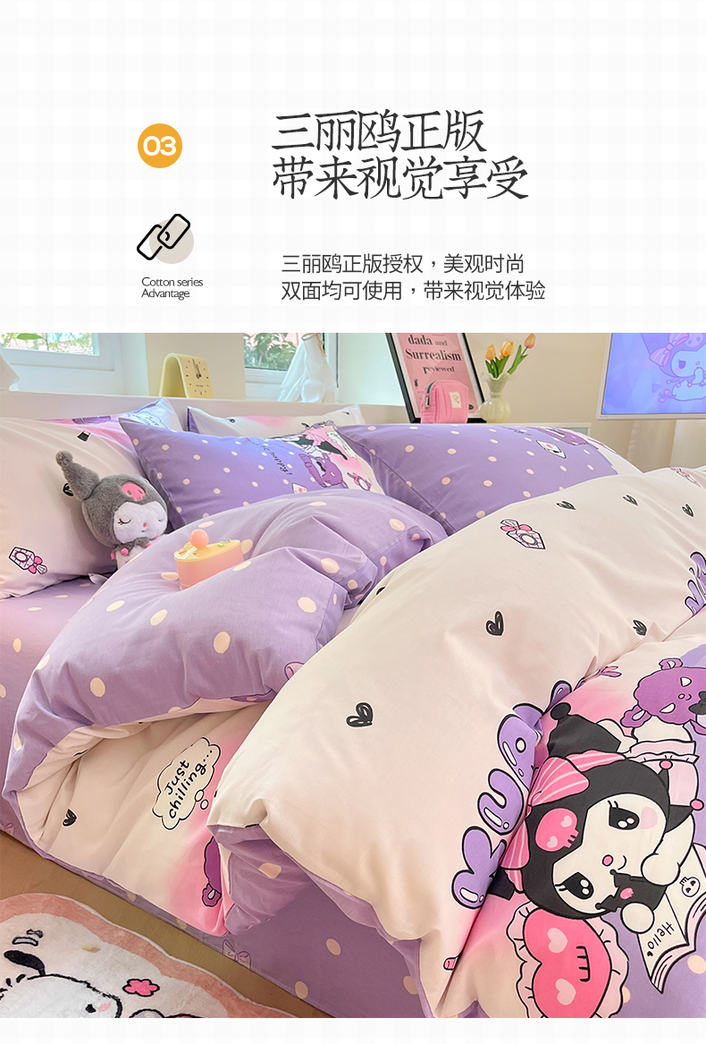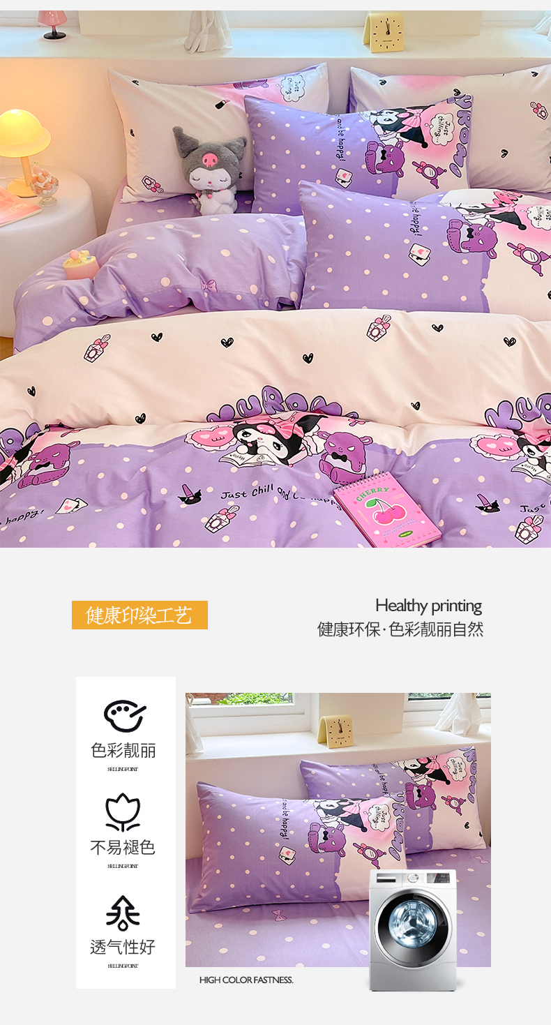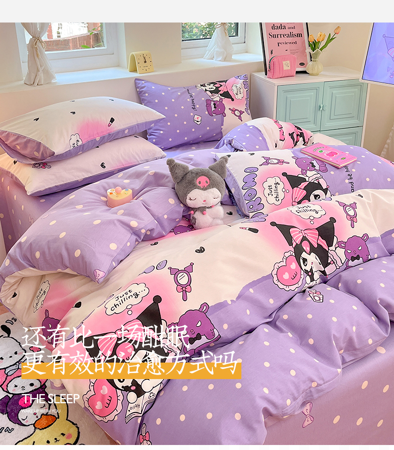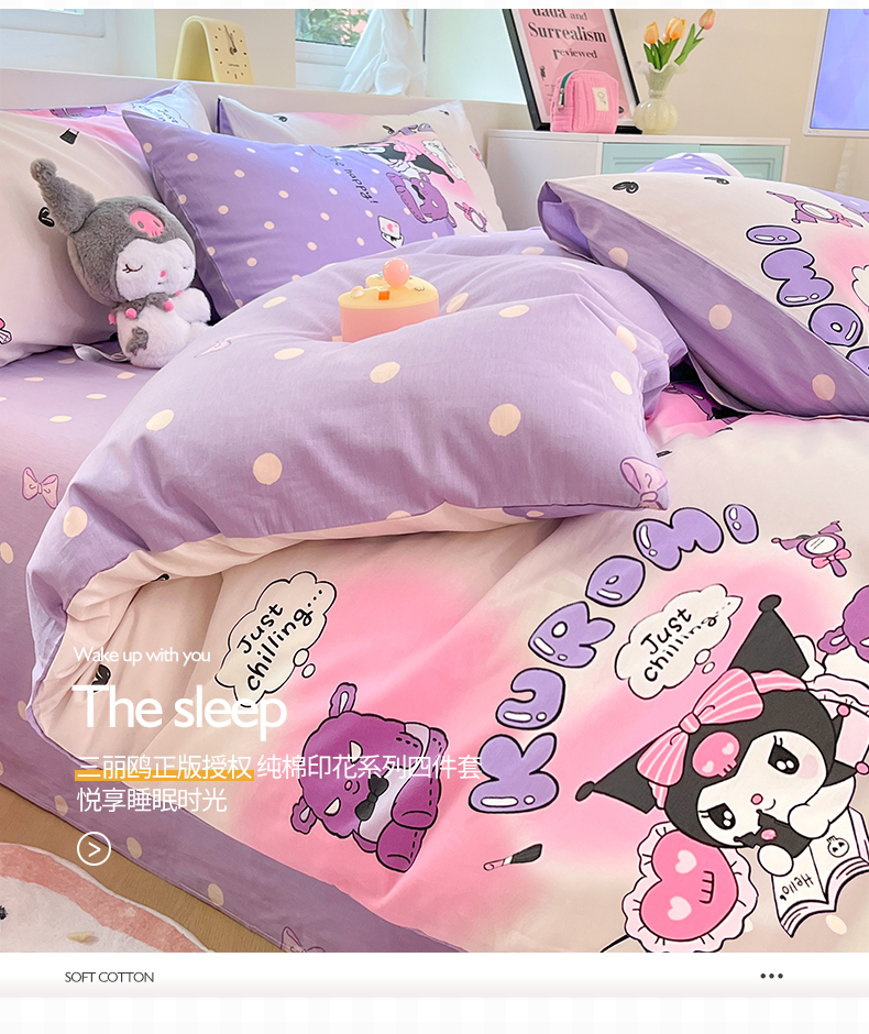 当前位置: 91家纺网 > 商品网购 > 床品套件 > 四件套 > 全棉普通四件套 > 桃子家居 2024新款三丽鸥正版授权卡通纯棉印花系列四件套 棉三丽鸥-美梦库洛米