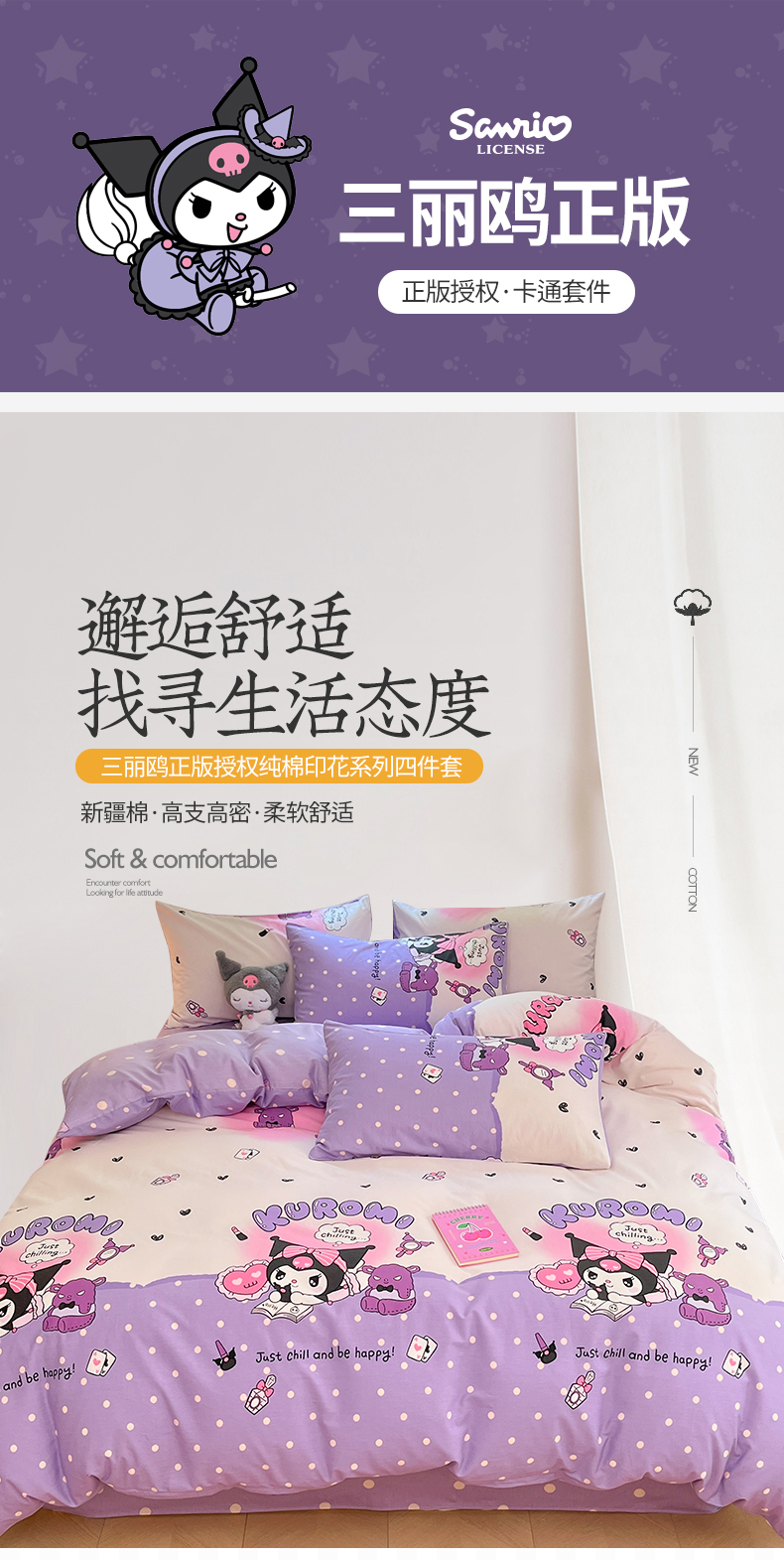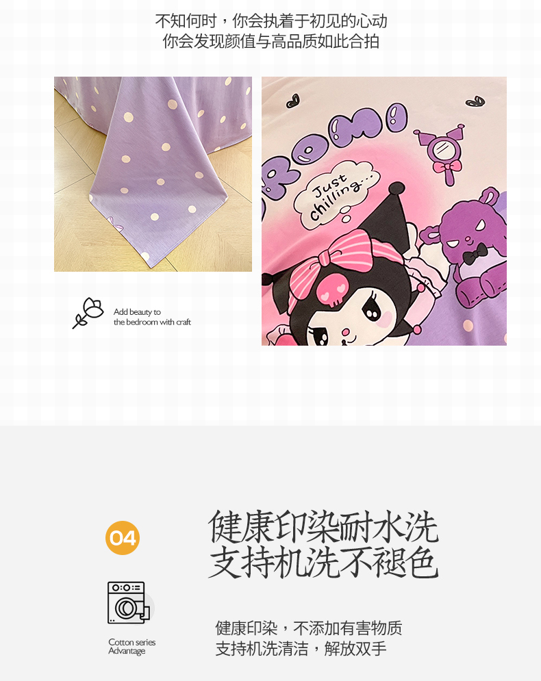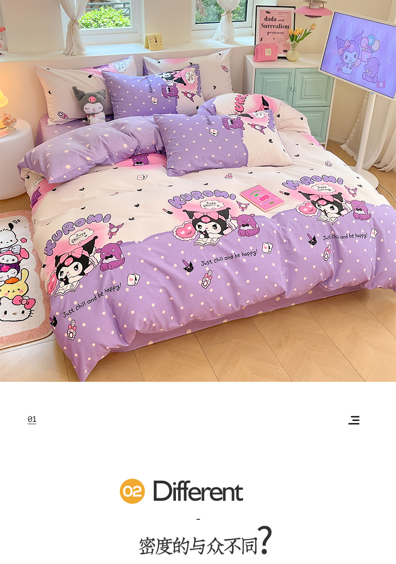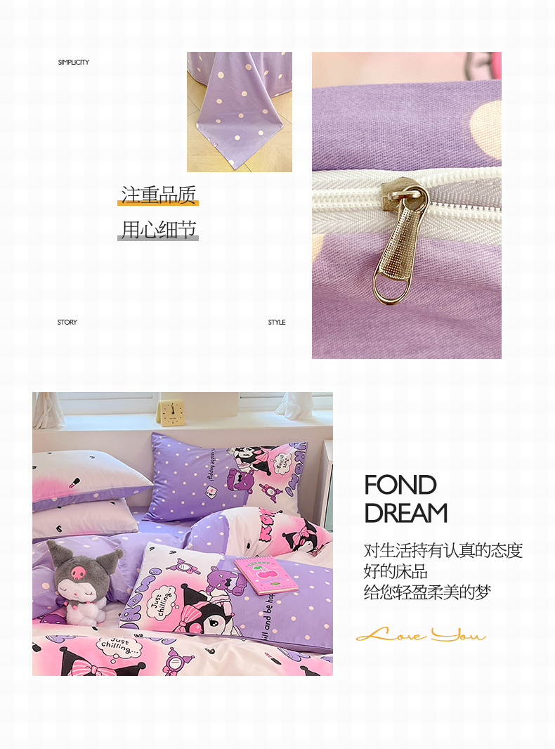当前位置: 91家纺网 > 商品网购 > 床品套件 > 四件套 > 全棉普通四件套 > 桃子家居 2024新款三丽鸥正版授权卡通纯棉印花系列四件套 棉三丽鸥-美梦库洛米