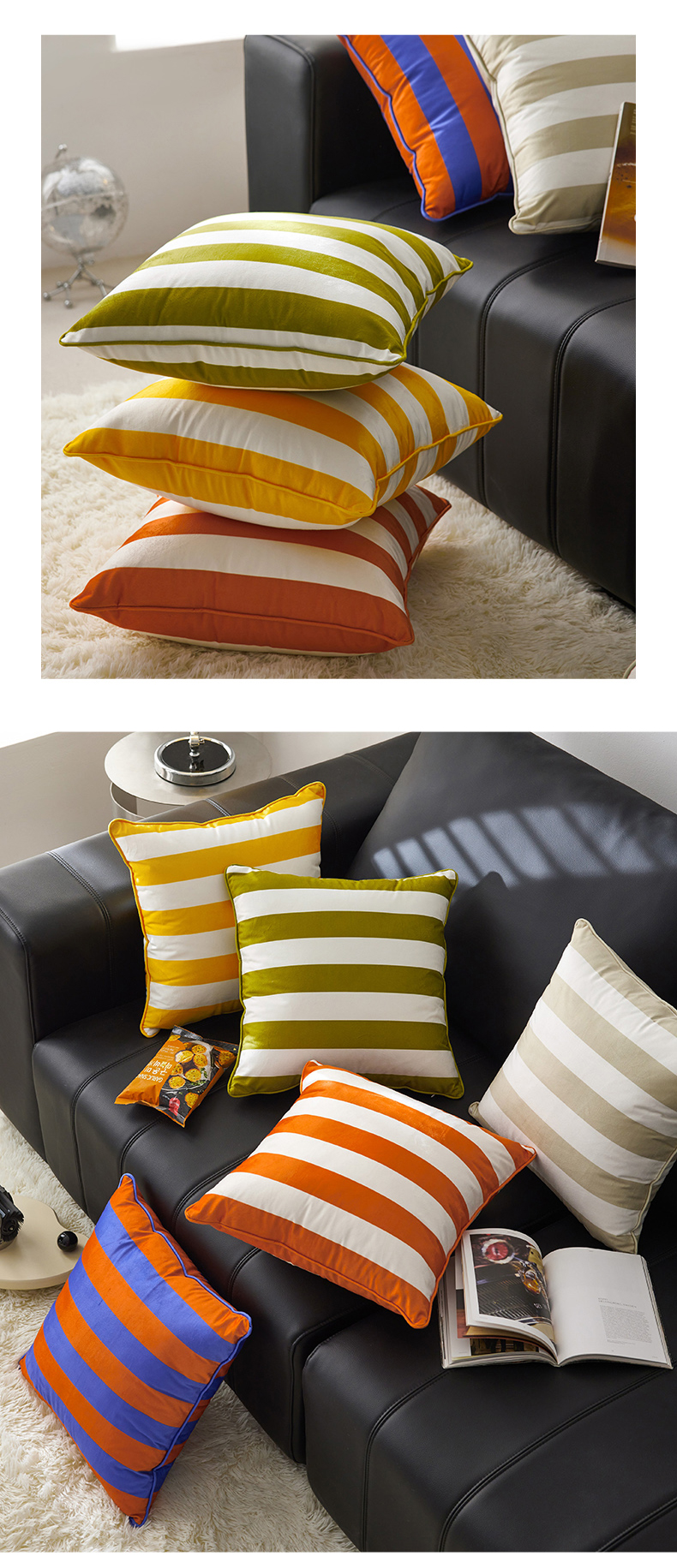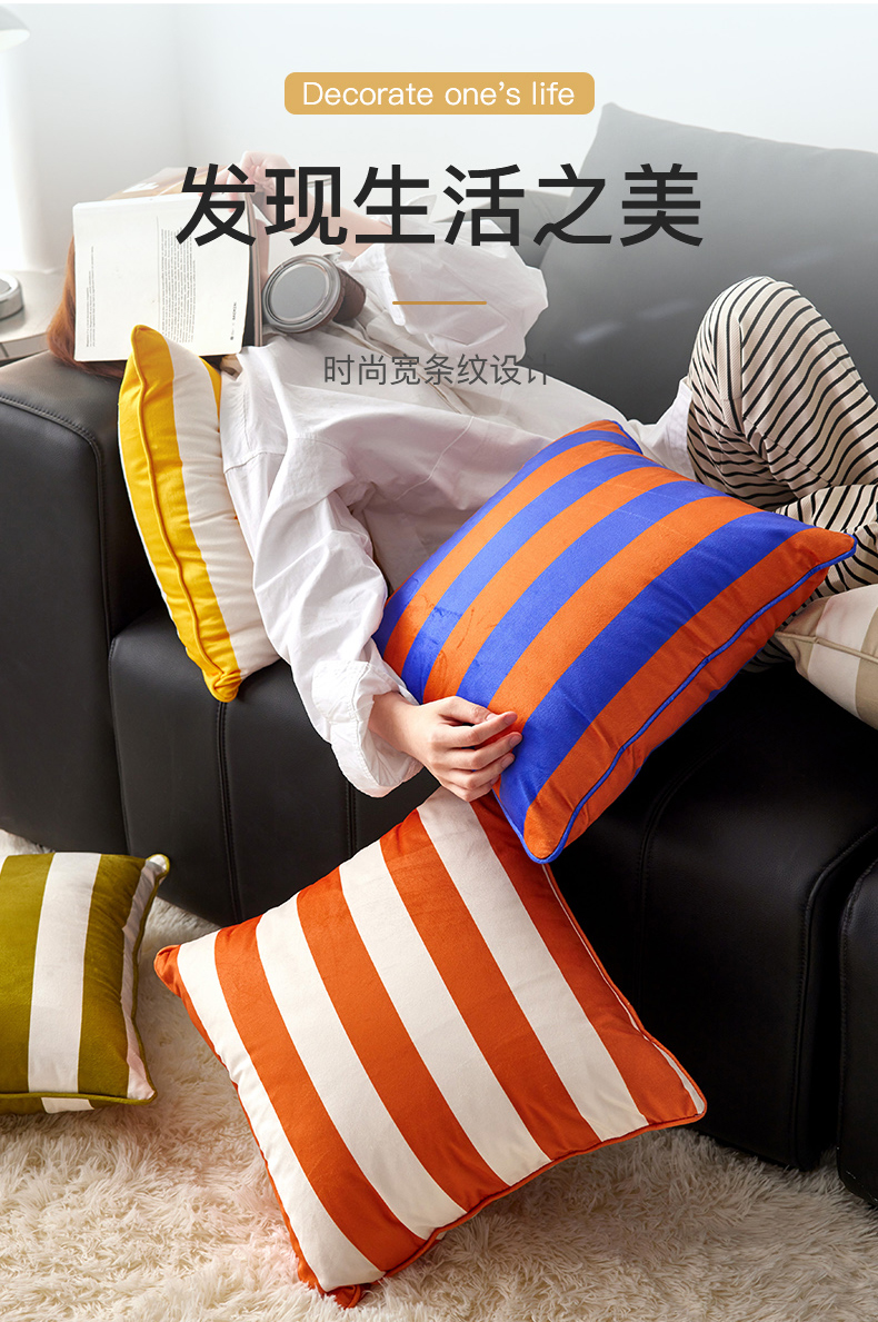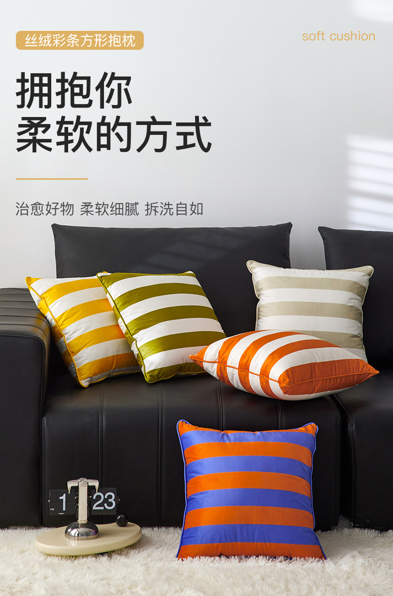 (总)美茉家居 2024新款丝绒彩条方形抱枕