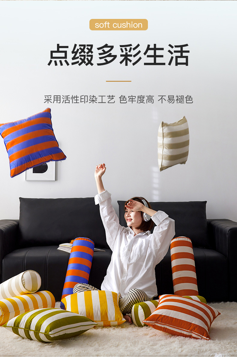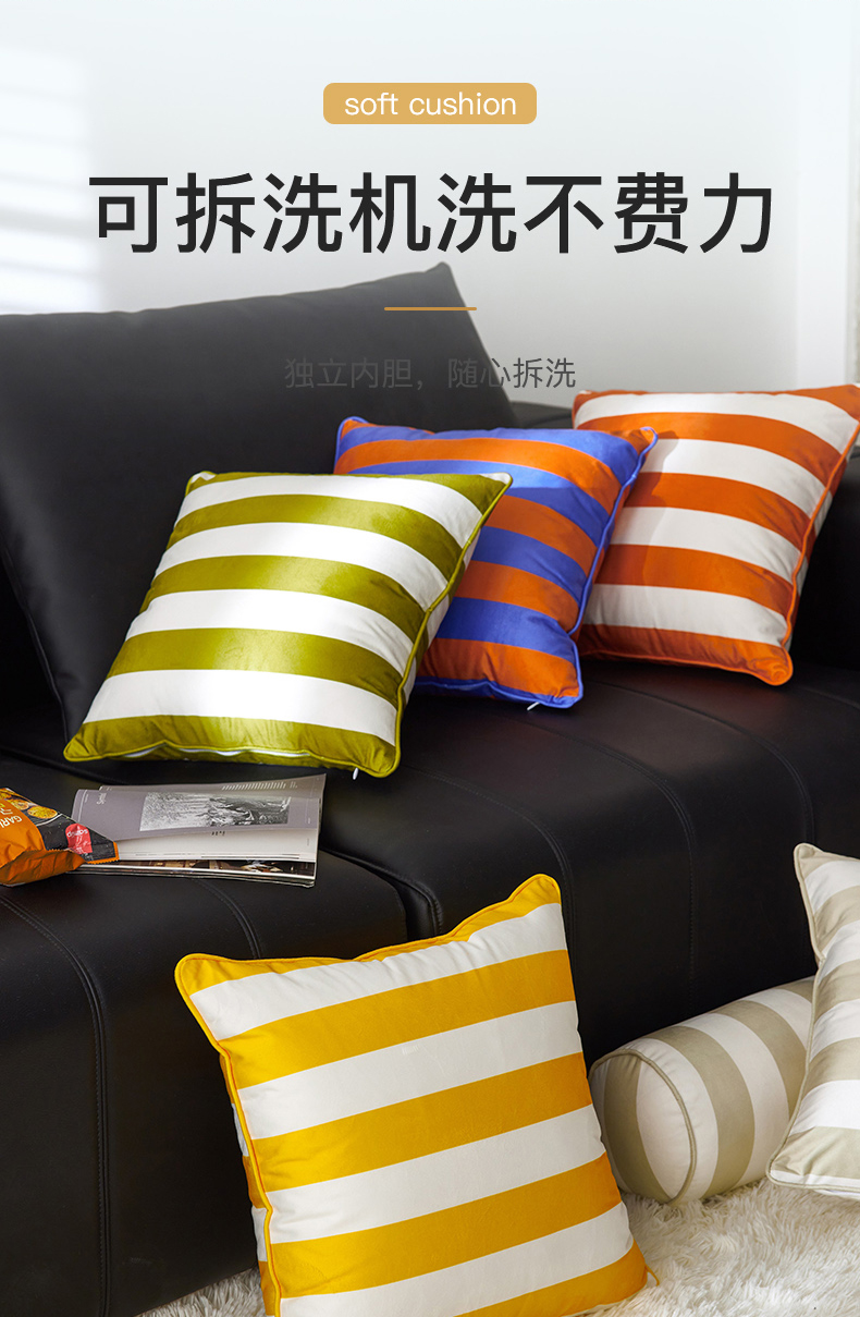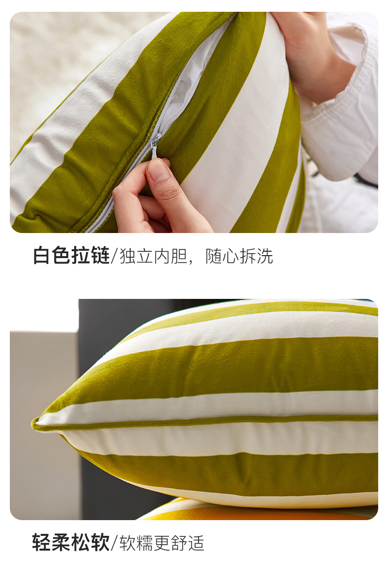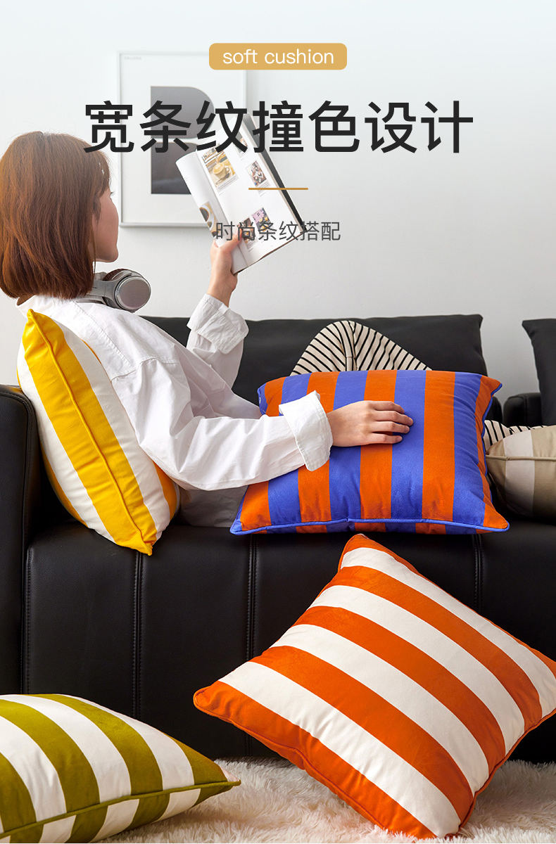 (总)美茉家居 2024新款丝绒彩条方形抱枕