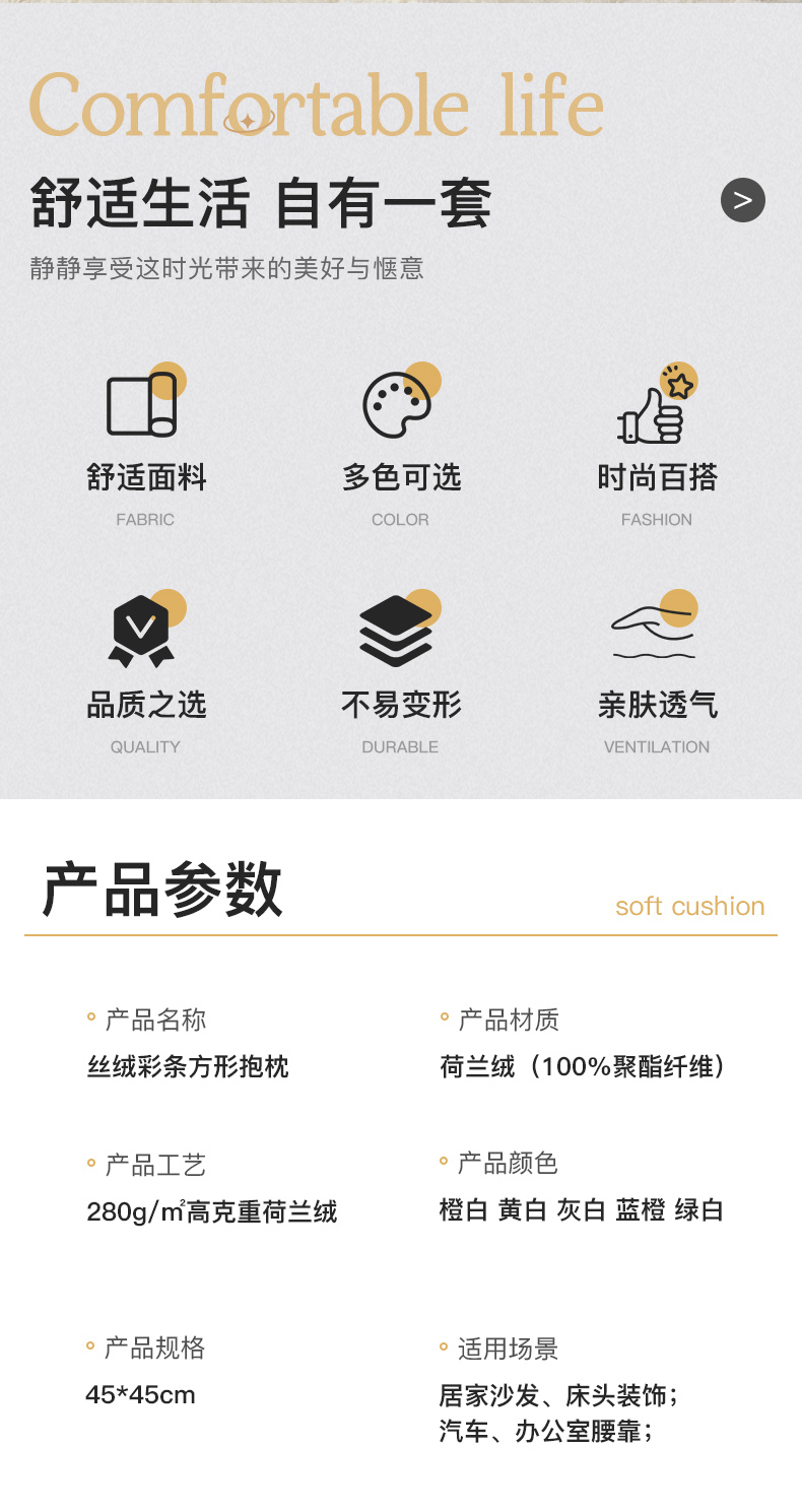 商品名称:(总)美茉家居 2024新款丝绒彩条方形抱枕