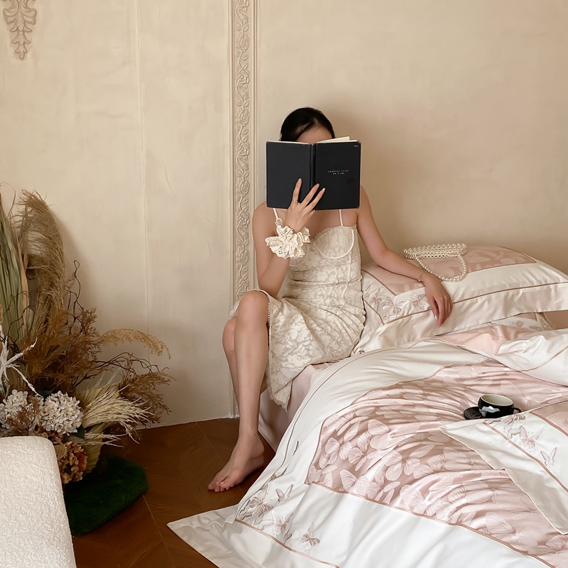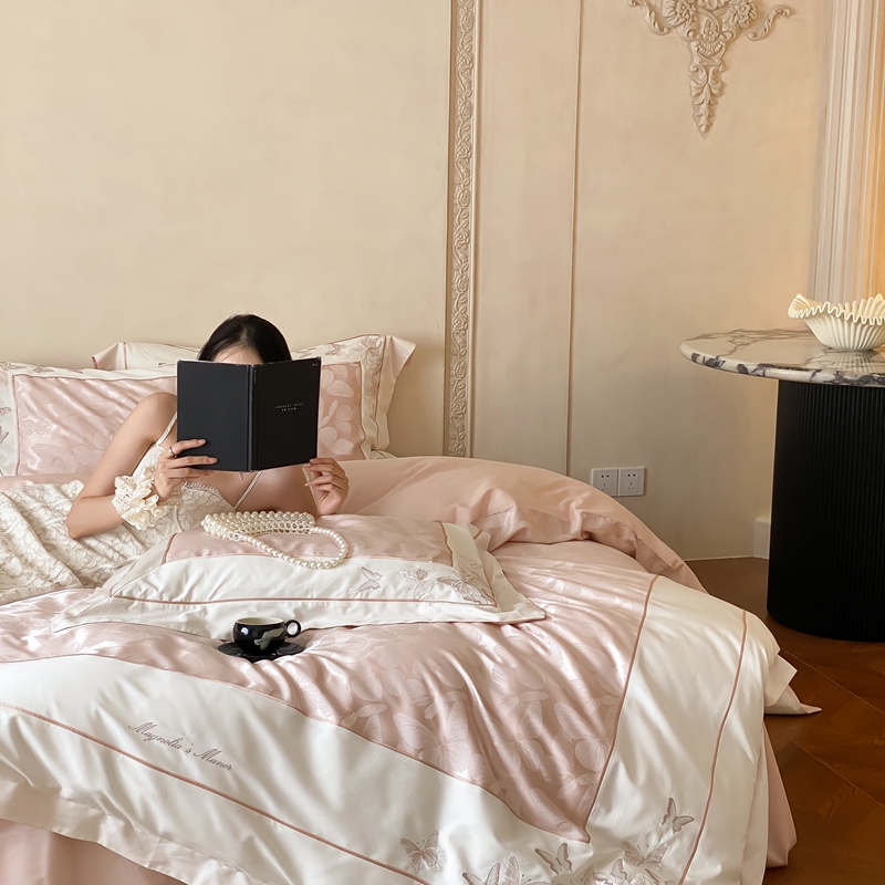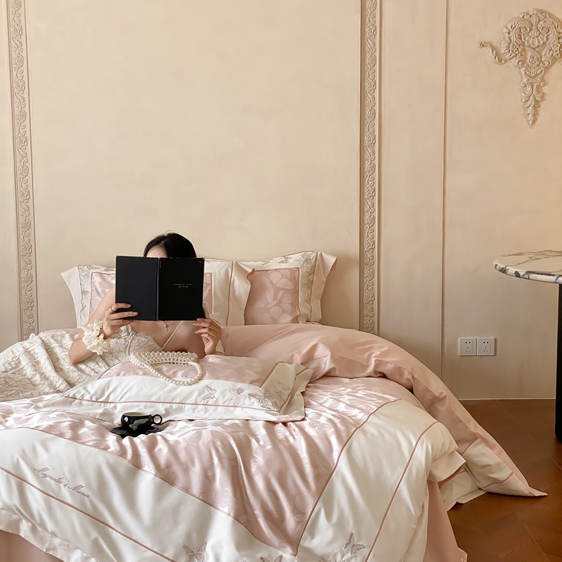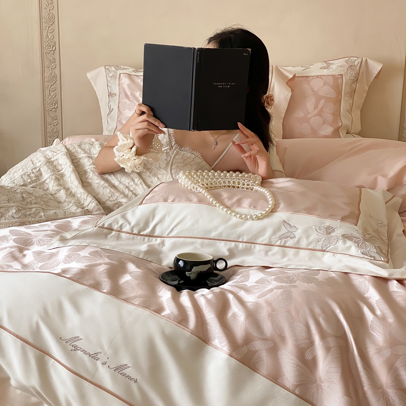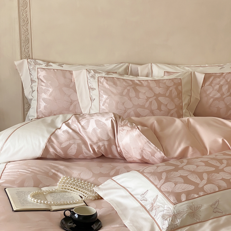 初拾 2024新款100s澳棉高精密提花四件套-蝶舞星光 蝶舞星光-玫瑰粉