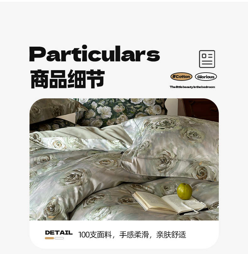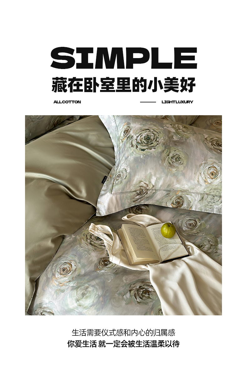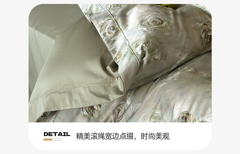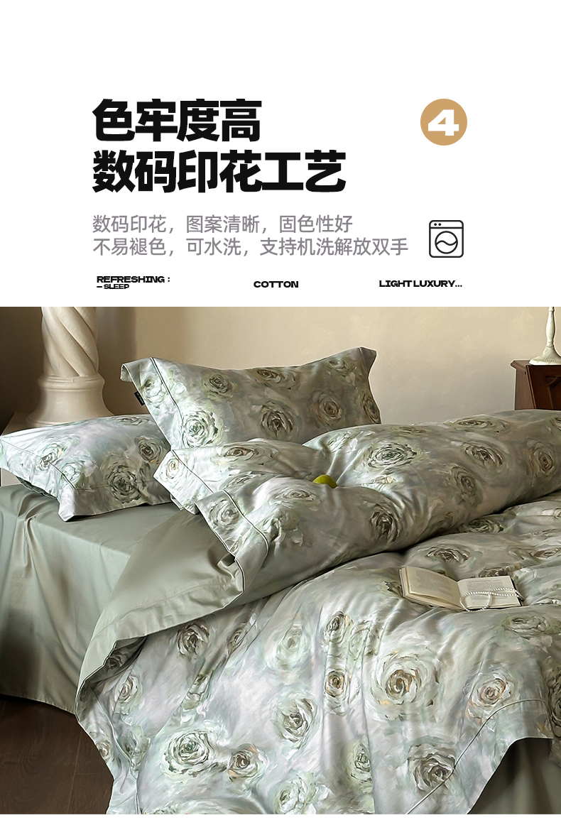 (总)窝米 2025新款数码印花100支长绒棉纯棉工艺花边款四件套-晚意,晚意