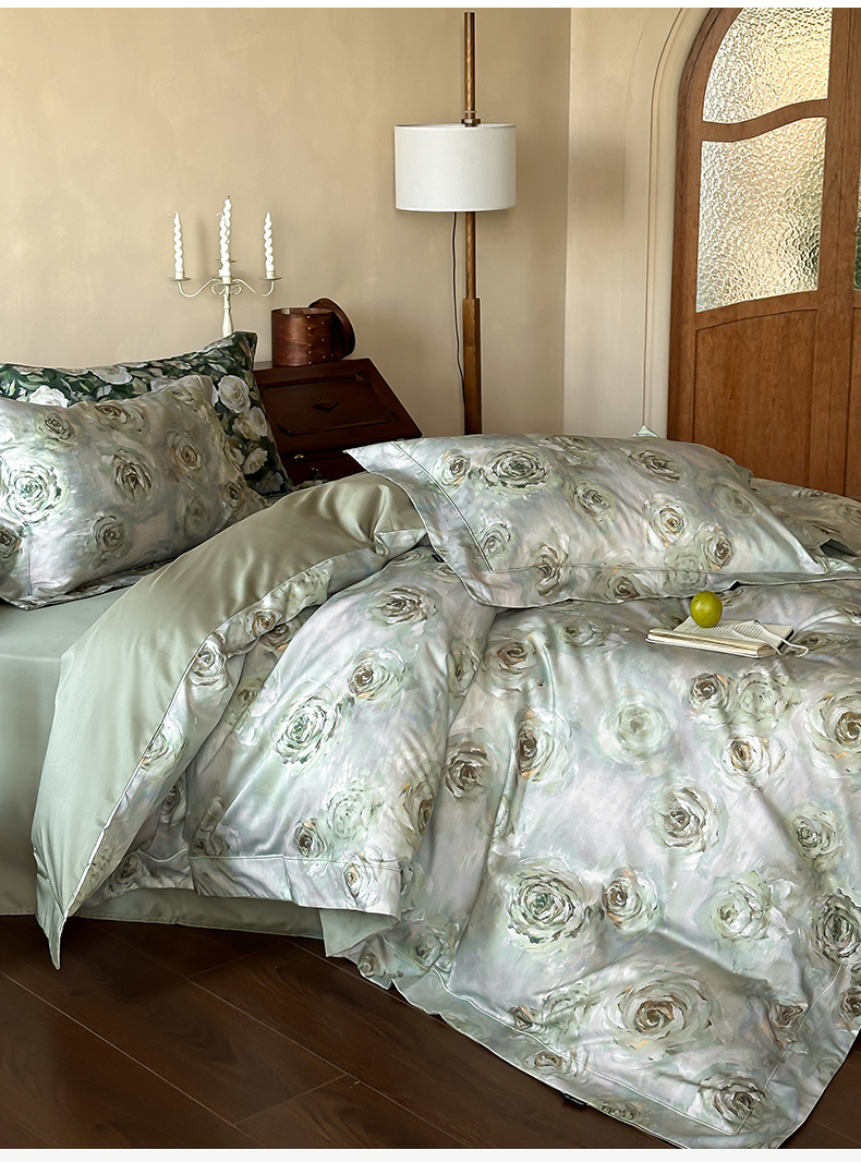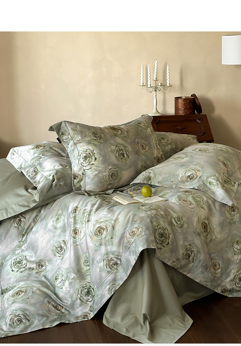 (总)窝米 2025新款数码印花100支长绒棉纯棉工艺花边款四件套-塞纳河畔,塞纳河畔