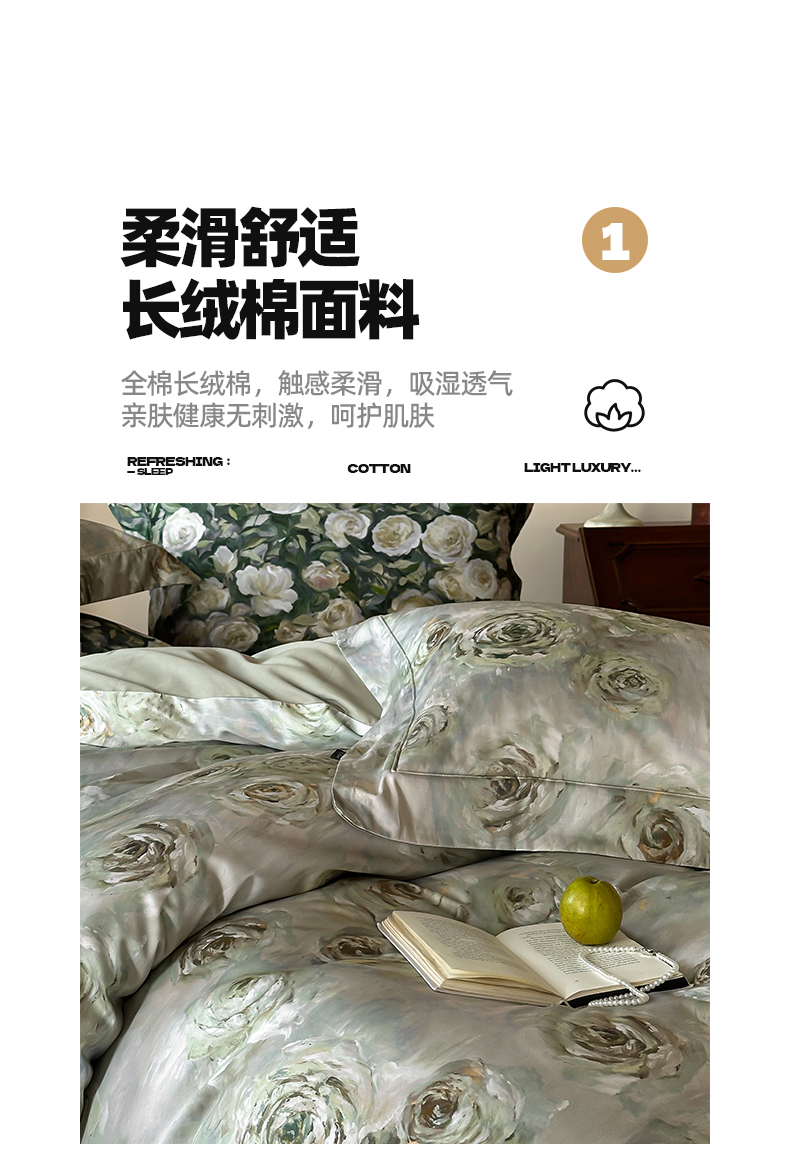 (总)窝米 2025新款全棉纯棉双层纱大版印花花卉四件套-第一组,赫美,绿野香,弥初,瑞优,云缦