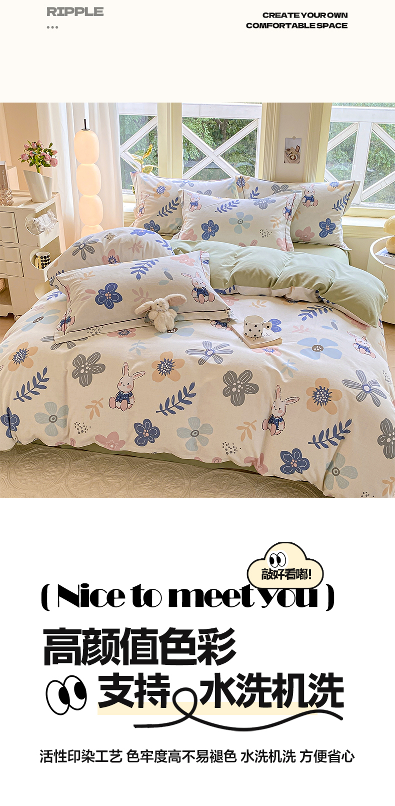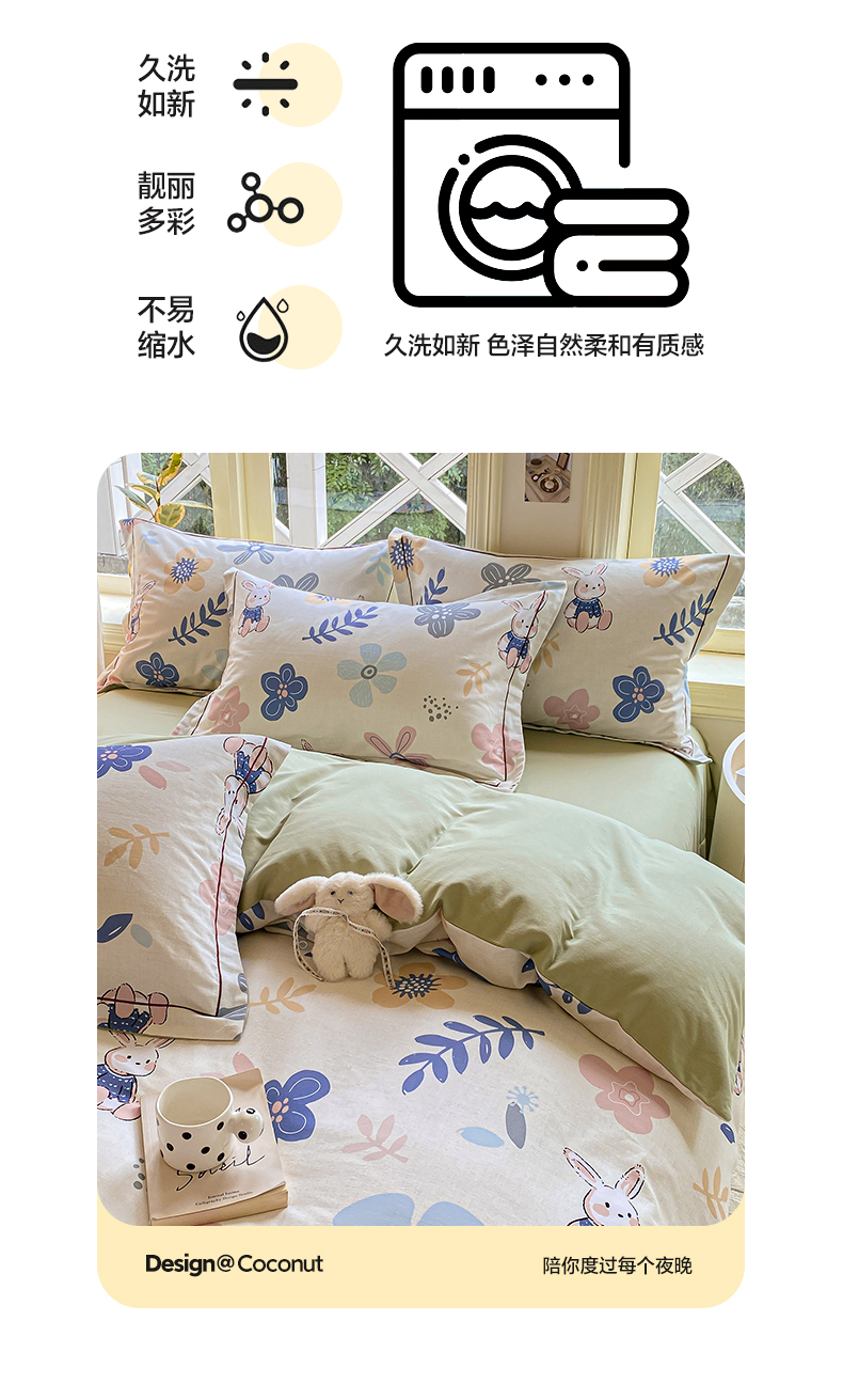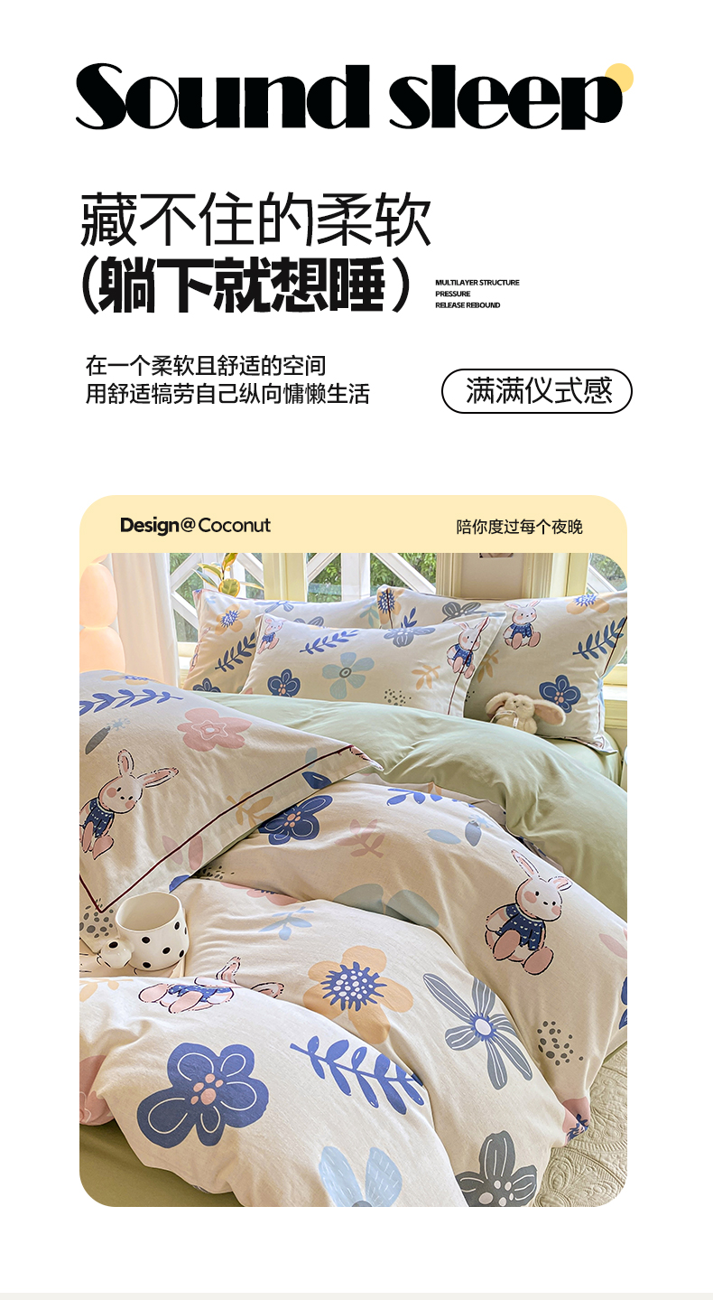 商品名称:宜家坊 2024全棉ins风小清新加厚磨毛【提供质检报告】 花中兔