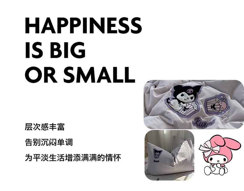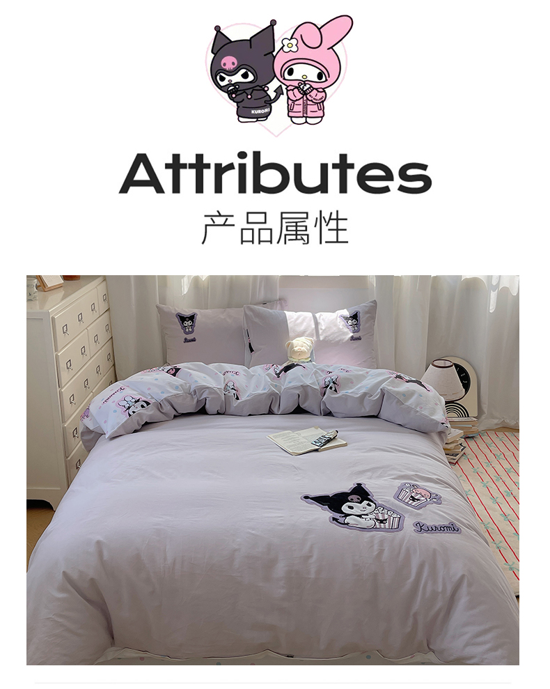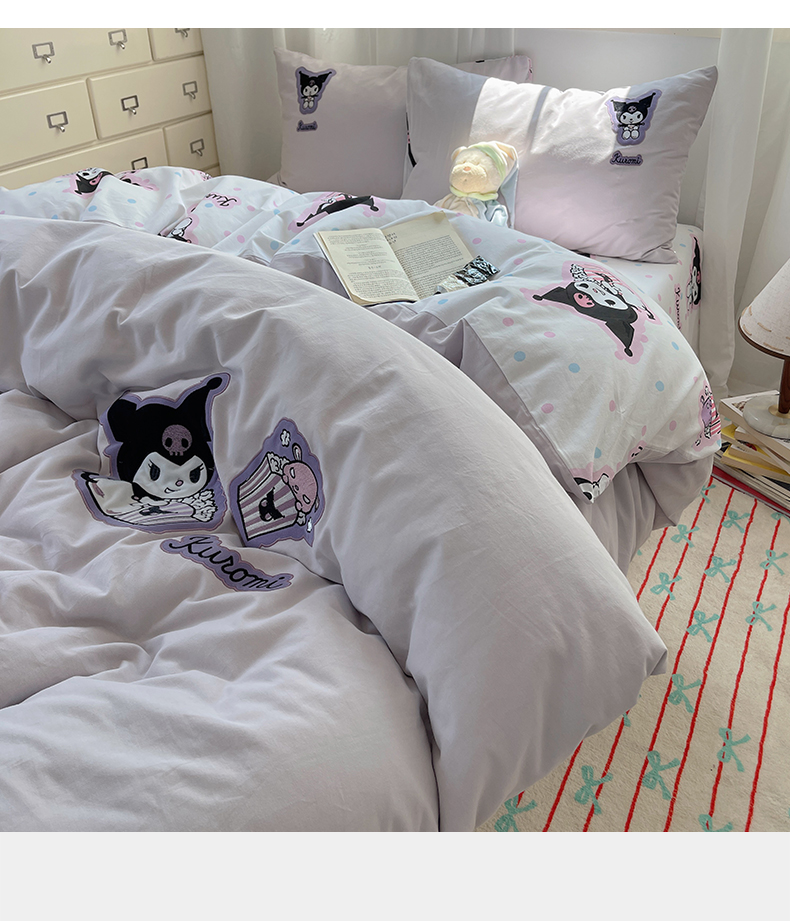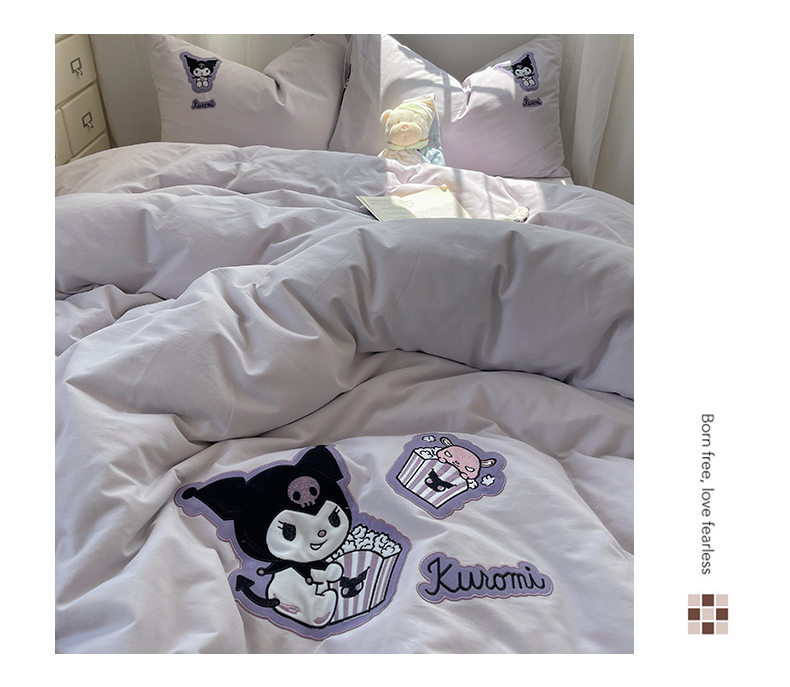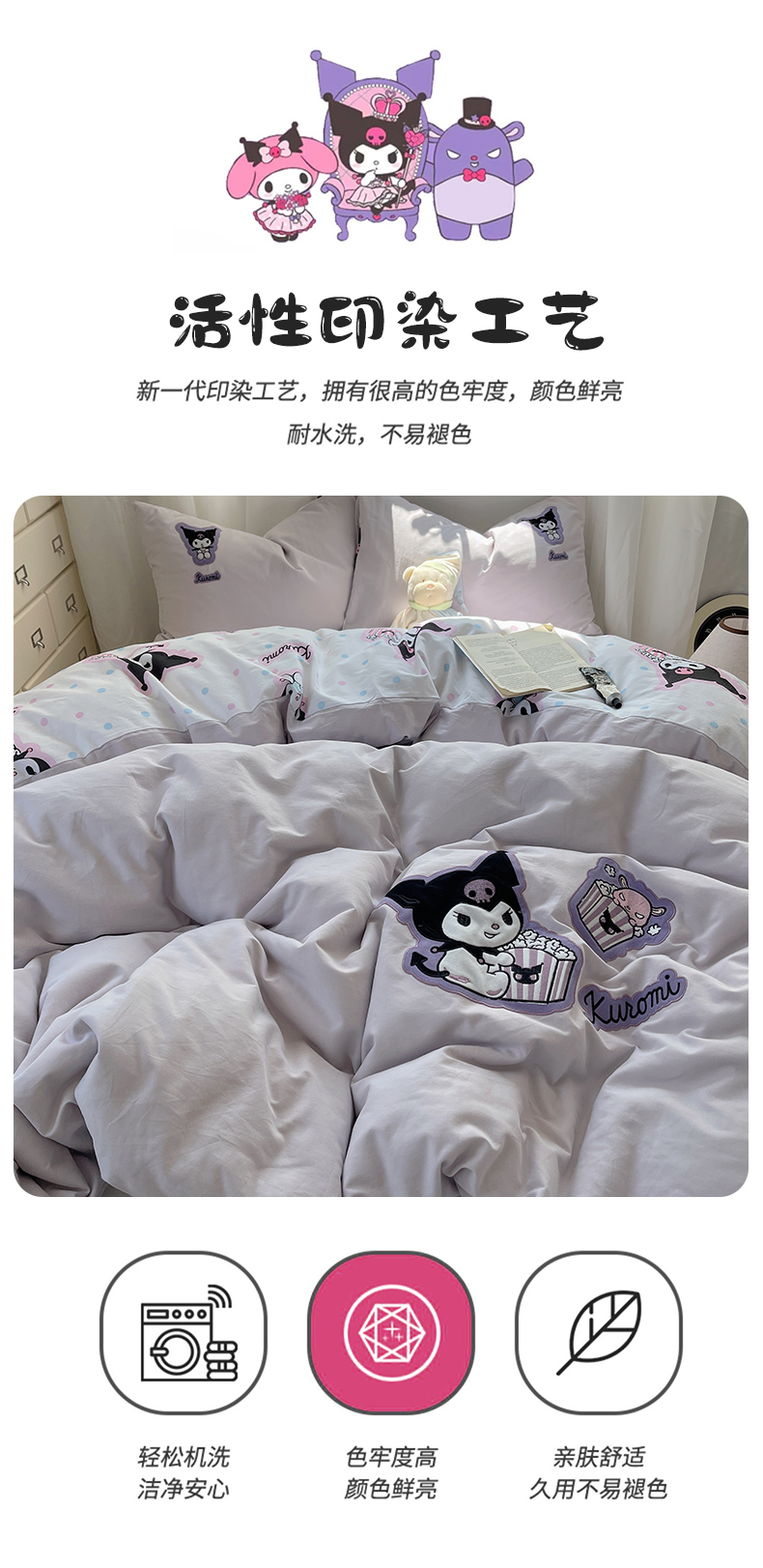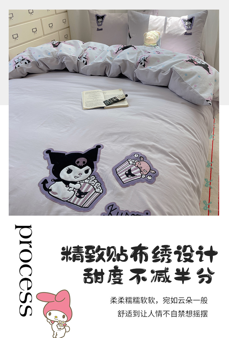 商品名称:卧趣家纺 2024秋冬新品三丽鸥贴布绣全棉磨毛卡通四件套 甜筒库洛米-紫